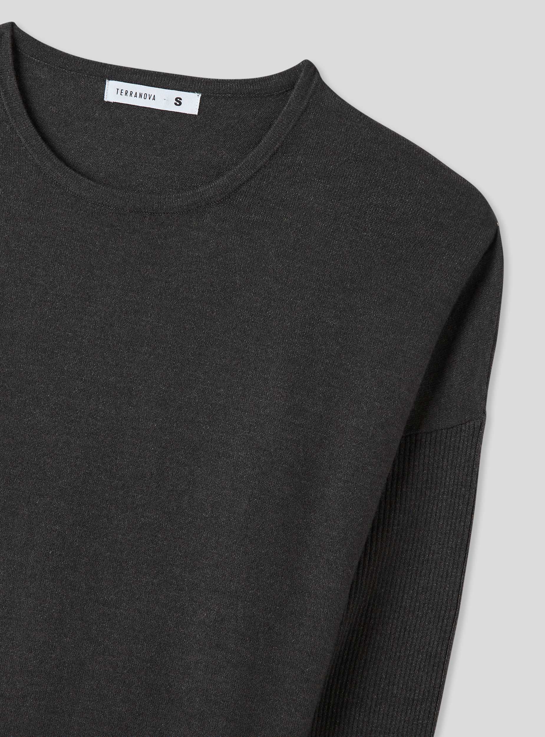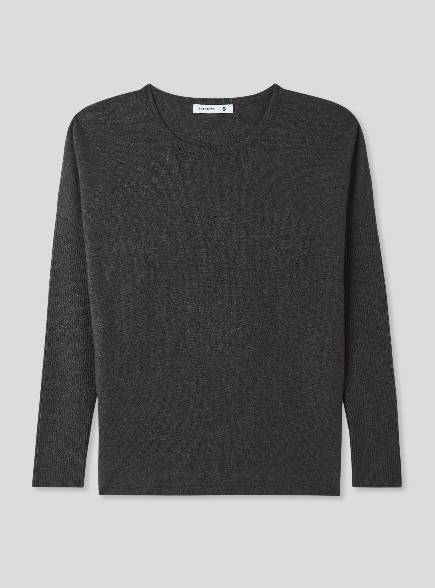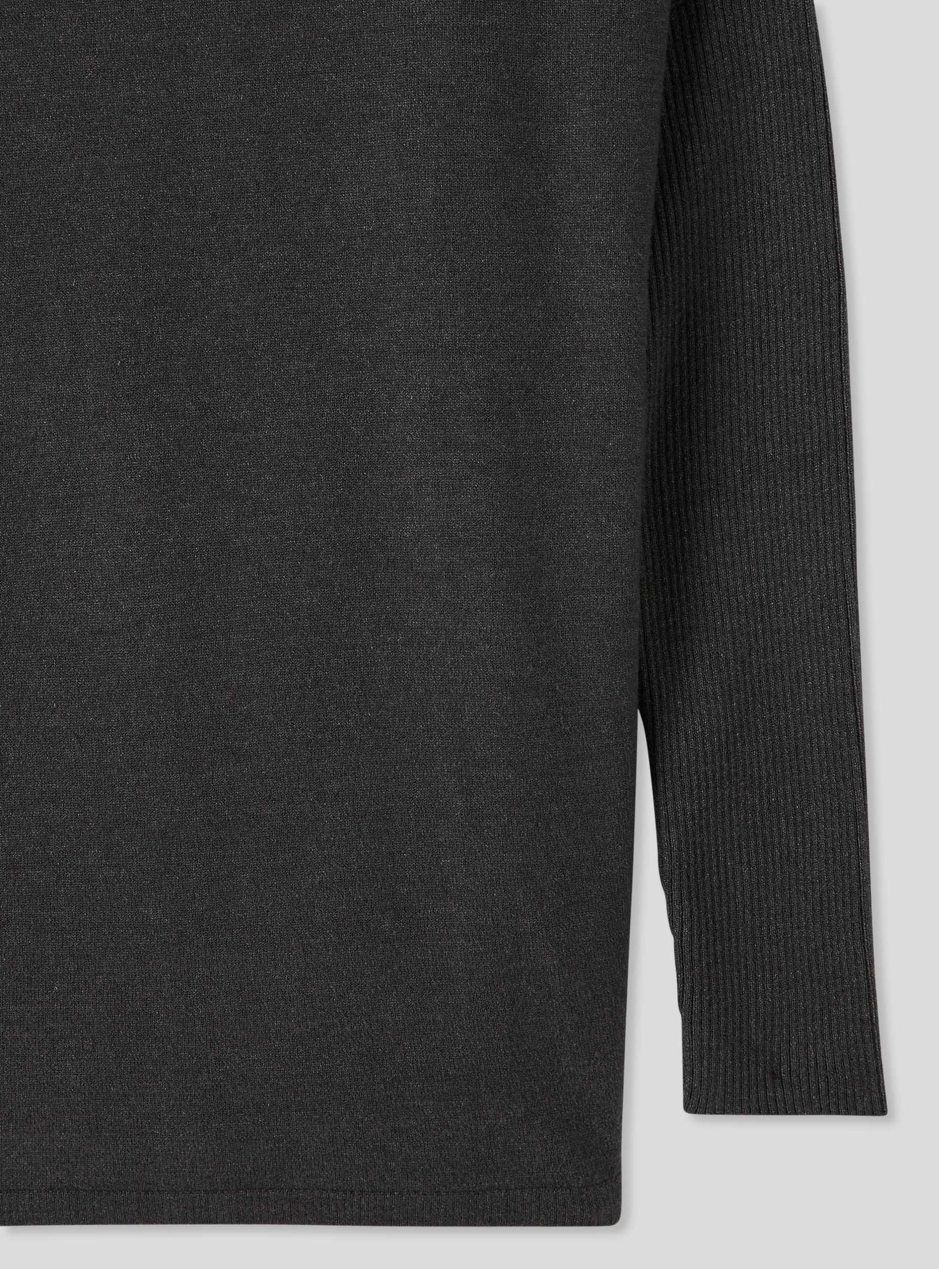 Maglia da donna perfetta per le giornate più fresche. Ha un design minimalista con scollo rotondo ampio, maniche lunghe e vestibilità comoda. Vestibilità ampia, con maniche aderenti a costine. Versatile e chic, è ideale per un look casual quotidiano, ma anche per ufficio o serate informali grazie al suo stile elegante e sobrio.