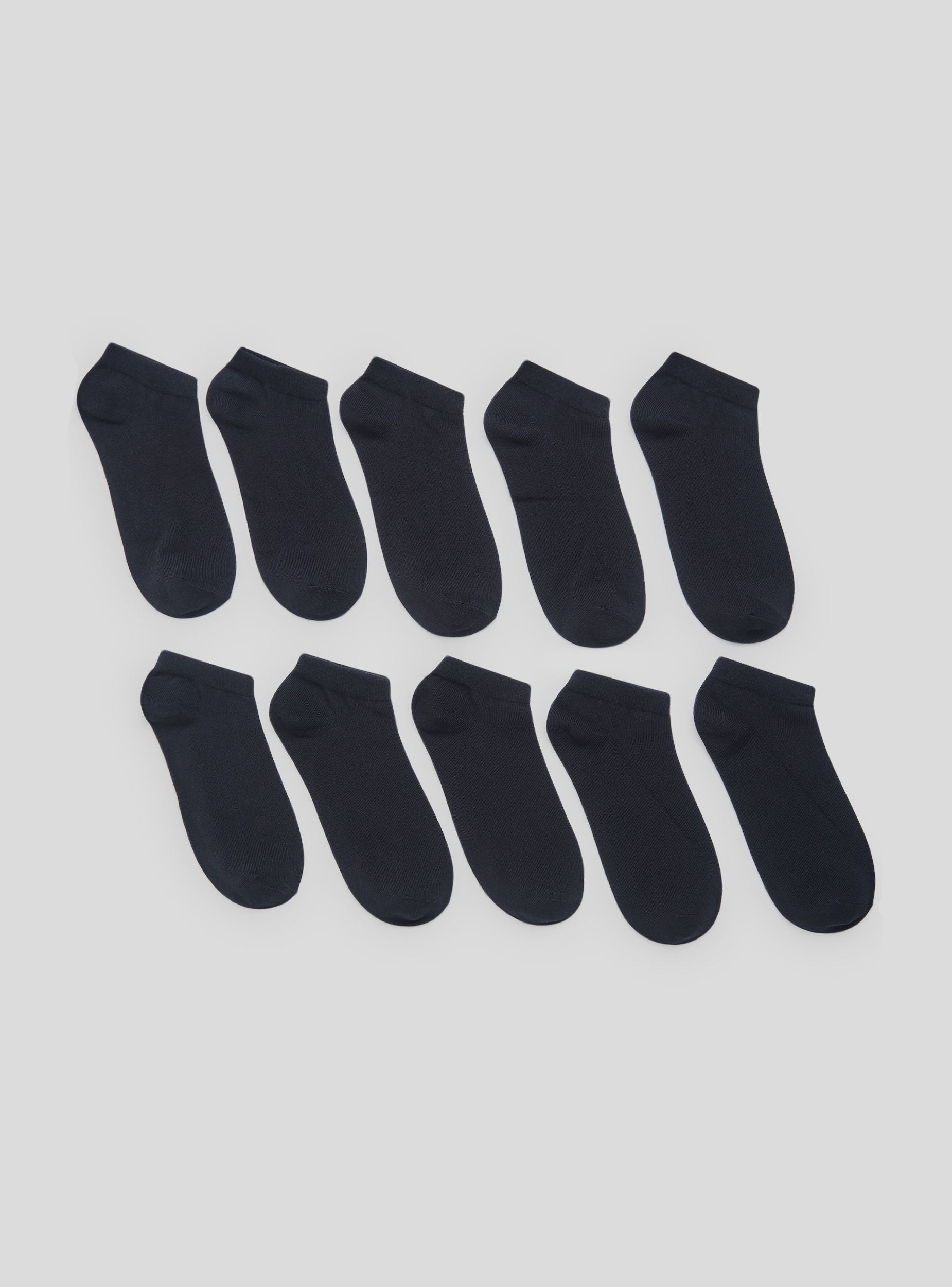 Confezione composta da 10 paia di calzini corti da donna, ideali per un look casual e comodo. Perfetti per essere indossati con scarpe sportive o casual, questi calzini presentano un design semplice e tinta unita, adatti per l'uso quotidiano. La vestibilità comoda e il materiale morbido garantiscono comfort durante tutto il giorno, rendendoli ideali per completare outfit casual e sportivi.
