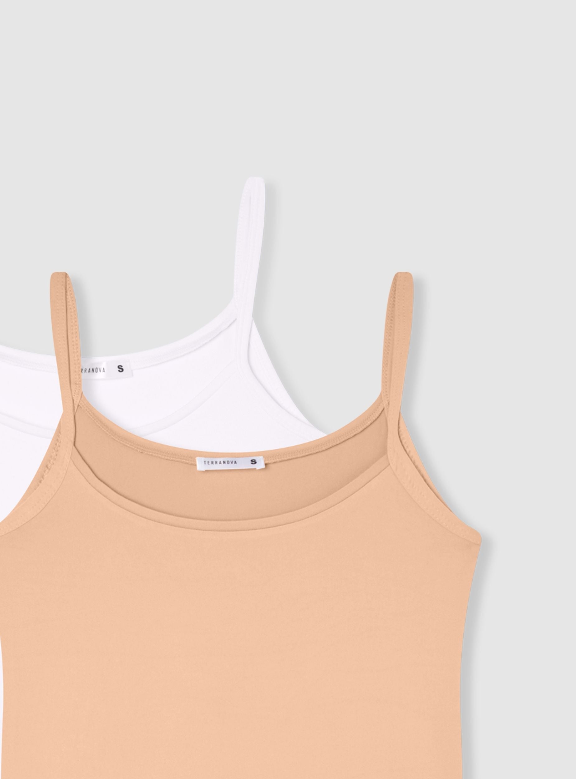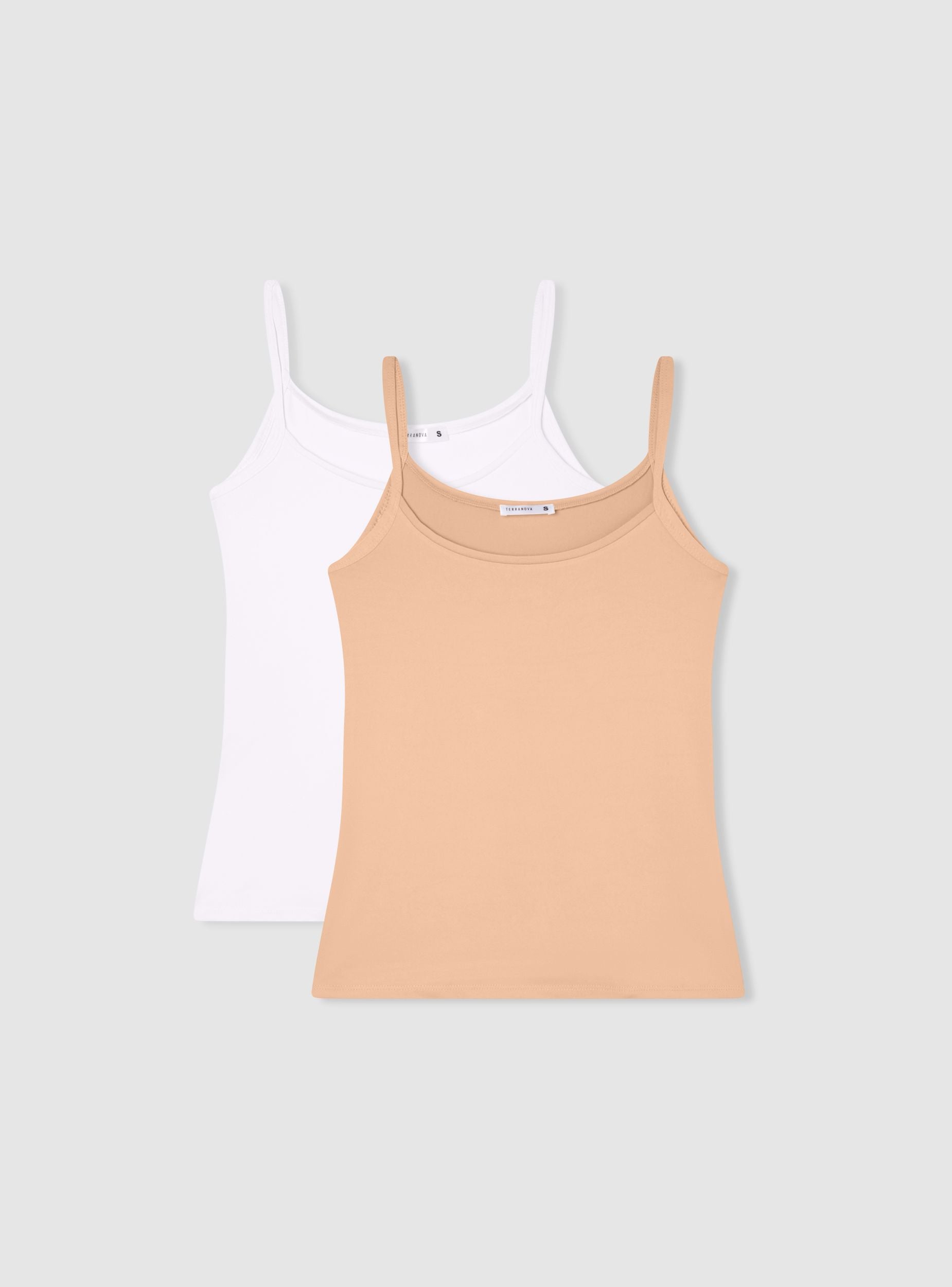 Confezione composta da 2 canottiere da donna, con spalline sottili e scollo rotondo. Perfette per essere indossate sia come strato di base che da sole. Versatile e confortevole, offre calore e comodità durante la stagione fredda.