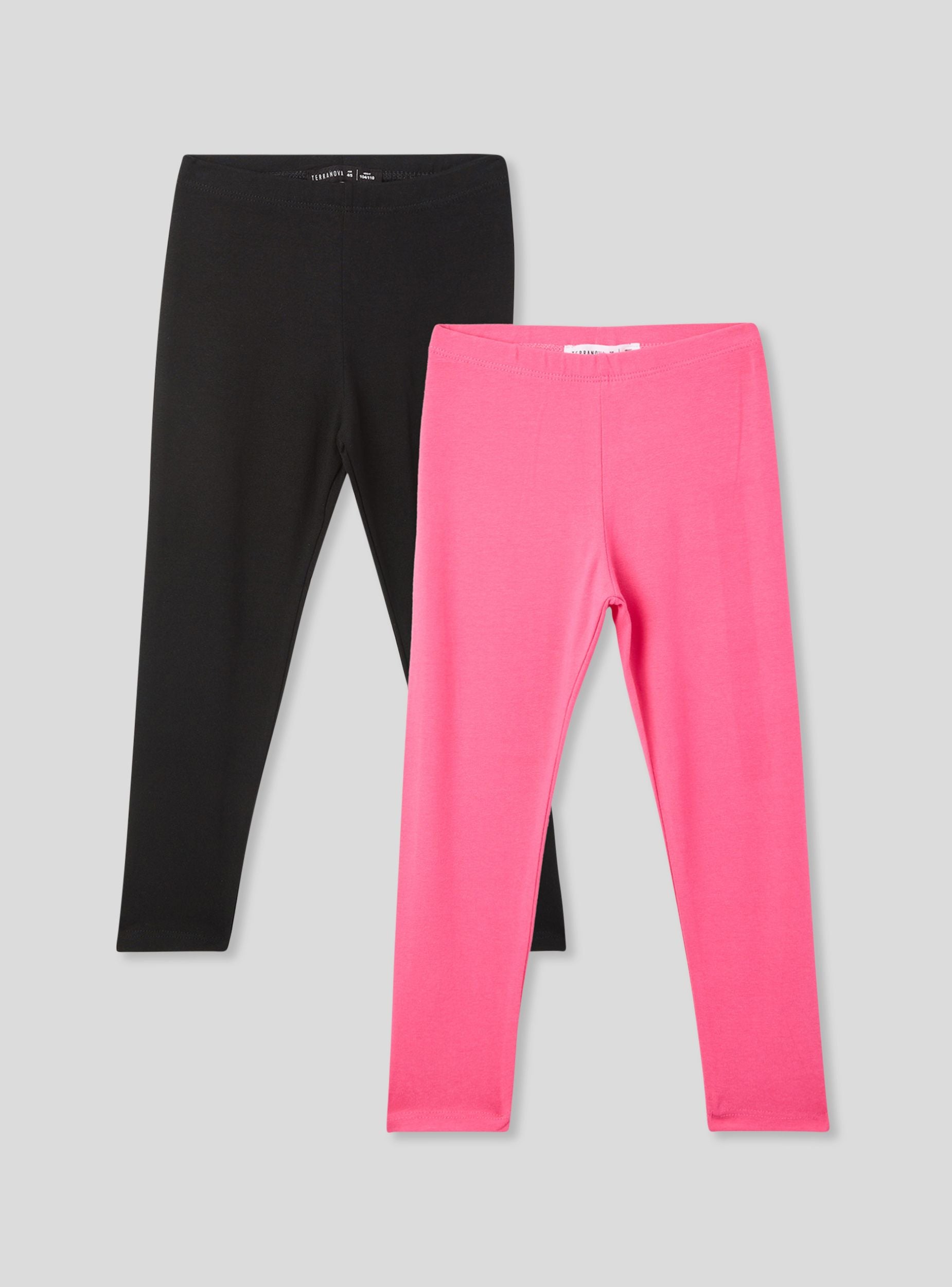 Confezione composta da 2 leggings da bambina a tinta unita, entrambi elasticizzati e dotati di elastico morbido in vita per una vestibilità confortevole. Questi leggings offrono massima libertà di movimento, rendendoli perfetti per il gioco e le attività quotidiane. Ideali per essere abbinati a t-shirt o felpe, sono la scelta ideale per un look casual e pratico, adatto a ogni occasione.