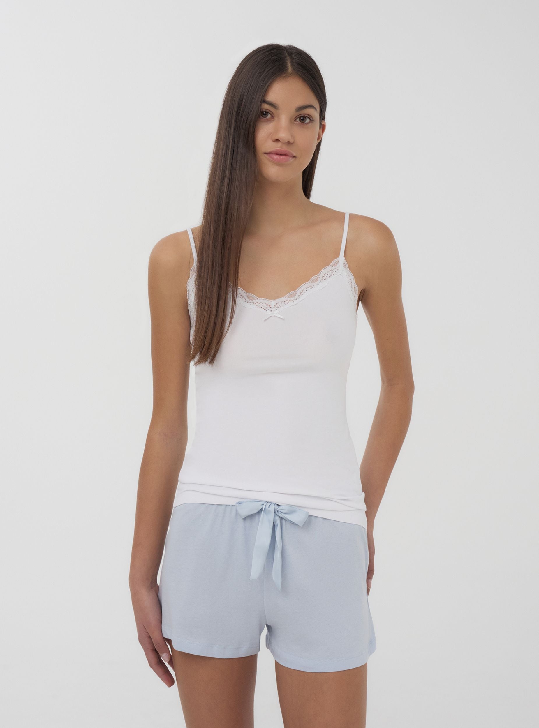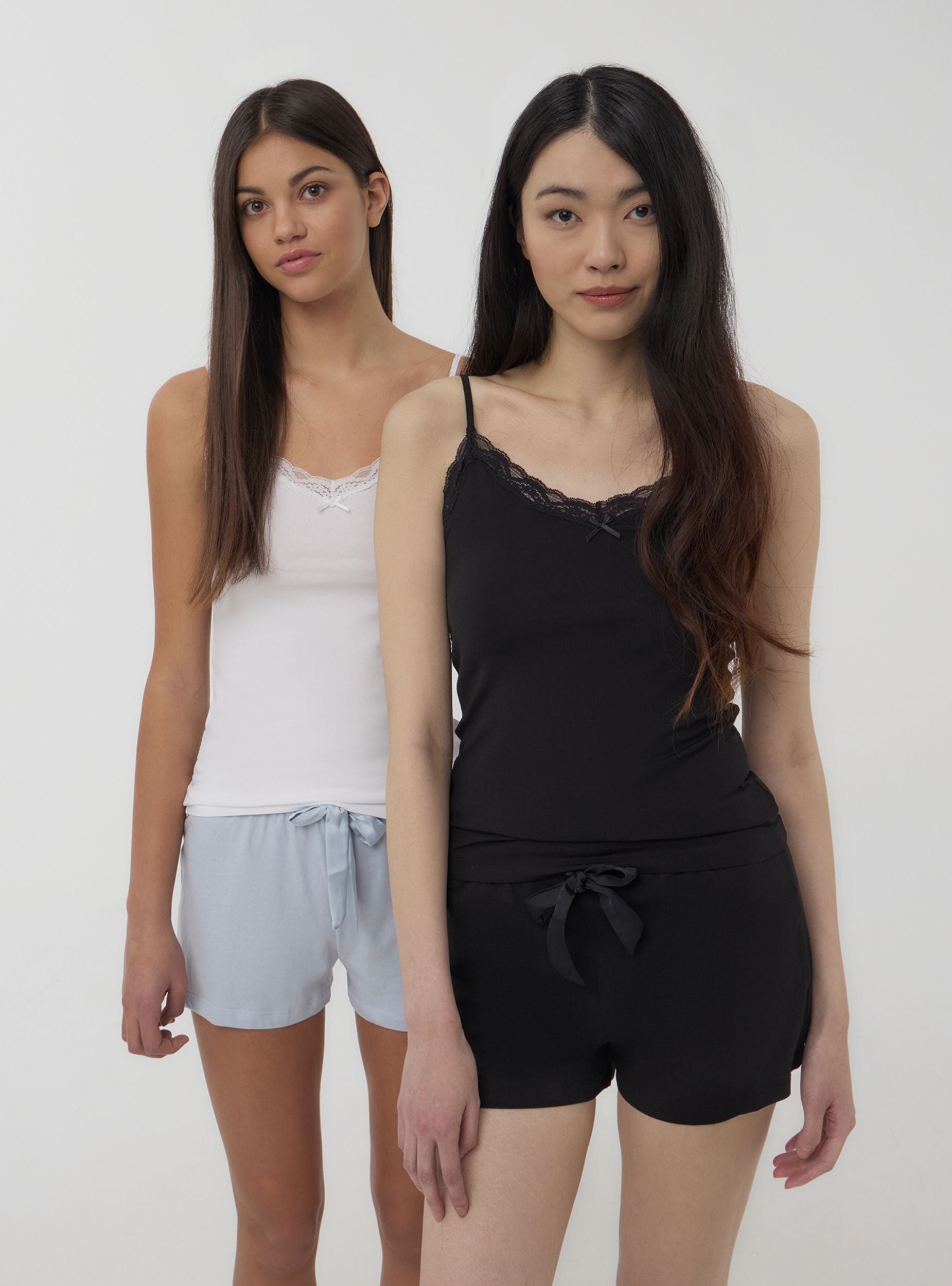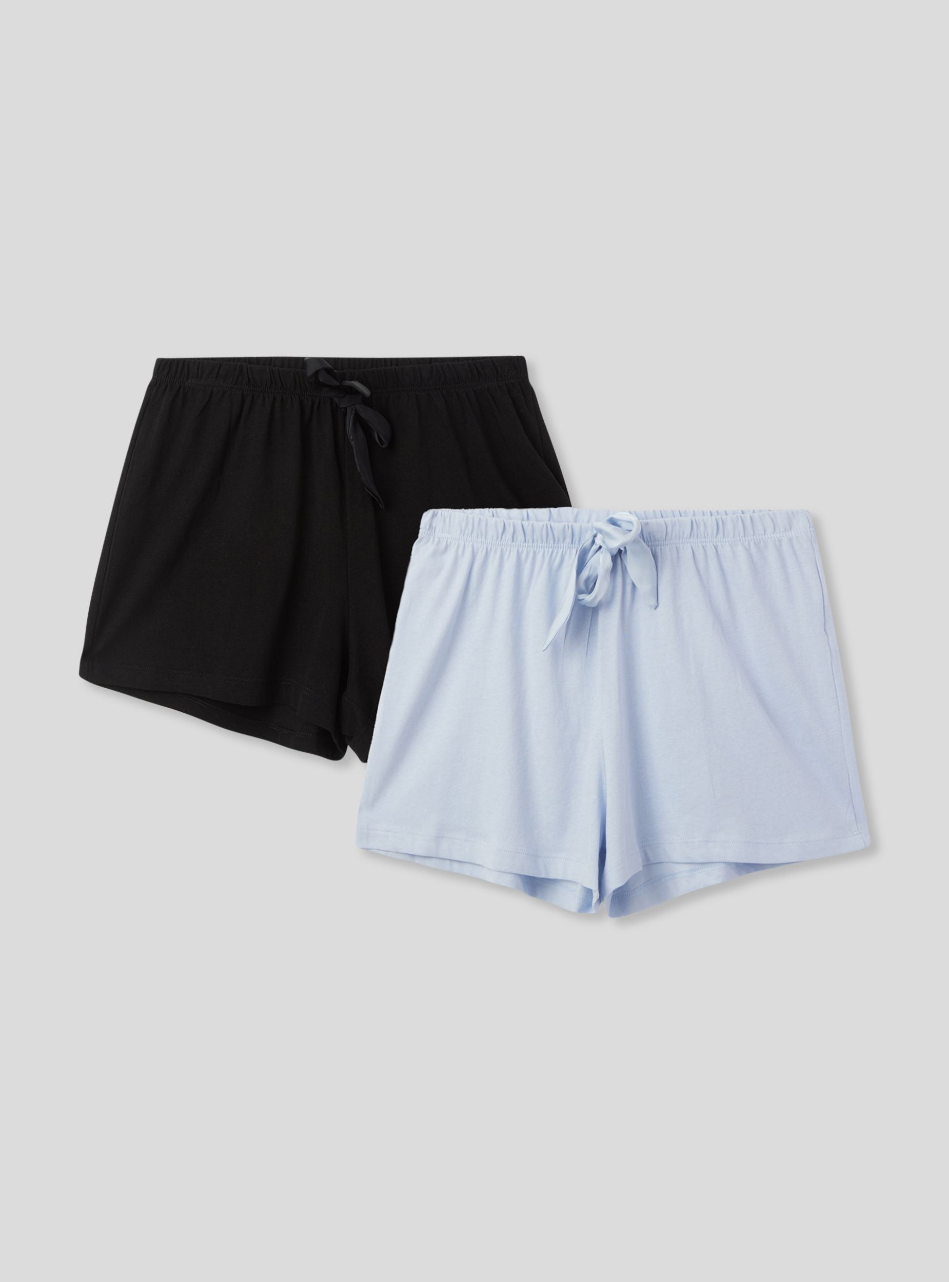 Confezione composta da 2 pantaloncini del pigiama da donna, perfetti per garantire comfort e relax durante le serate estive. Design corto con pratica coulisse in vita per una vestibilità regolabile. La tinta unita dona versatilità, adattandosi a diversi abbinamenti per un look comodo e curato anche a casa.Dettagli