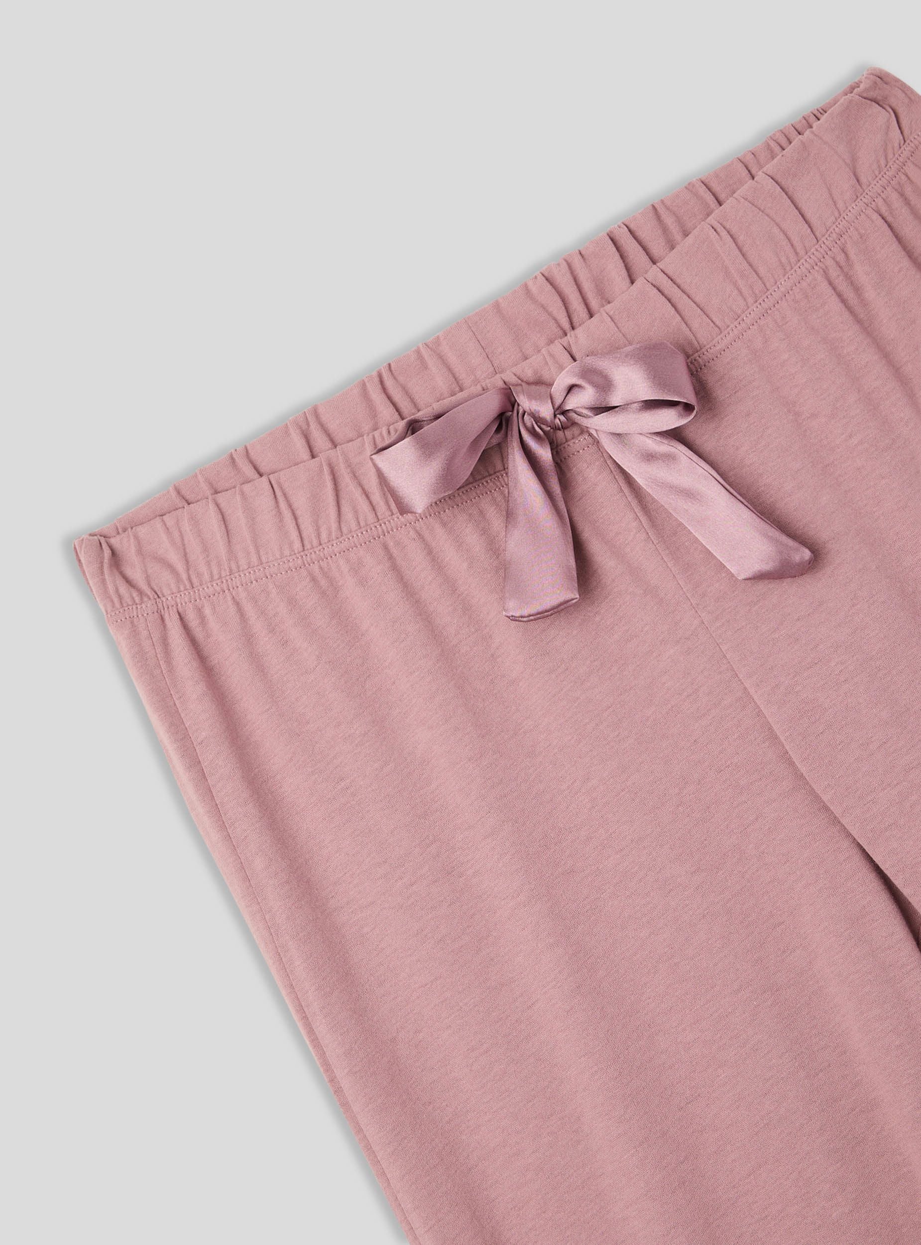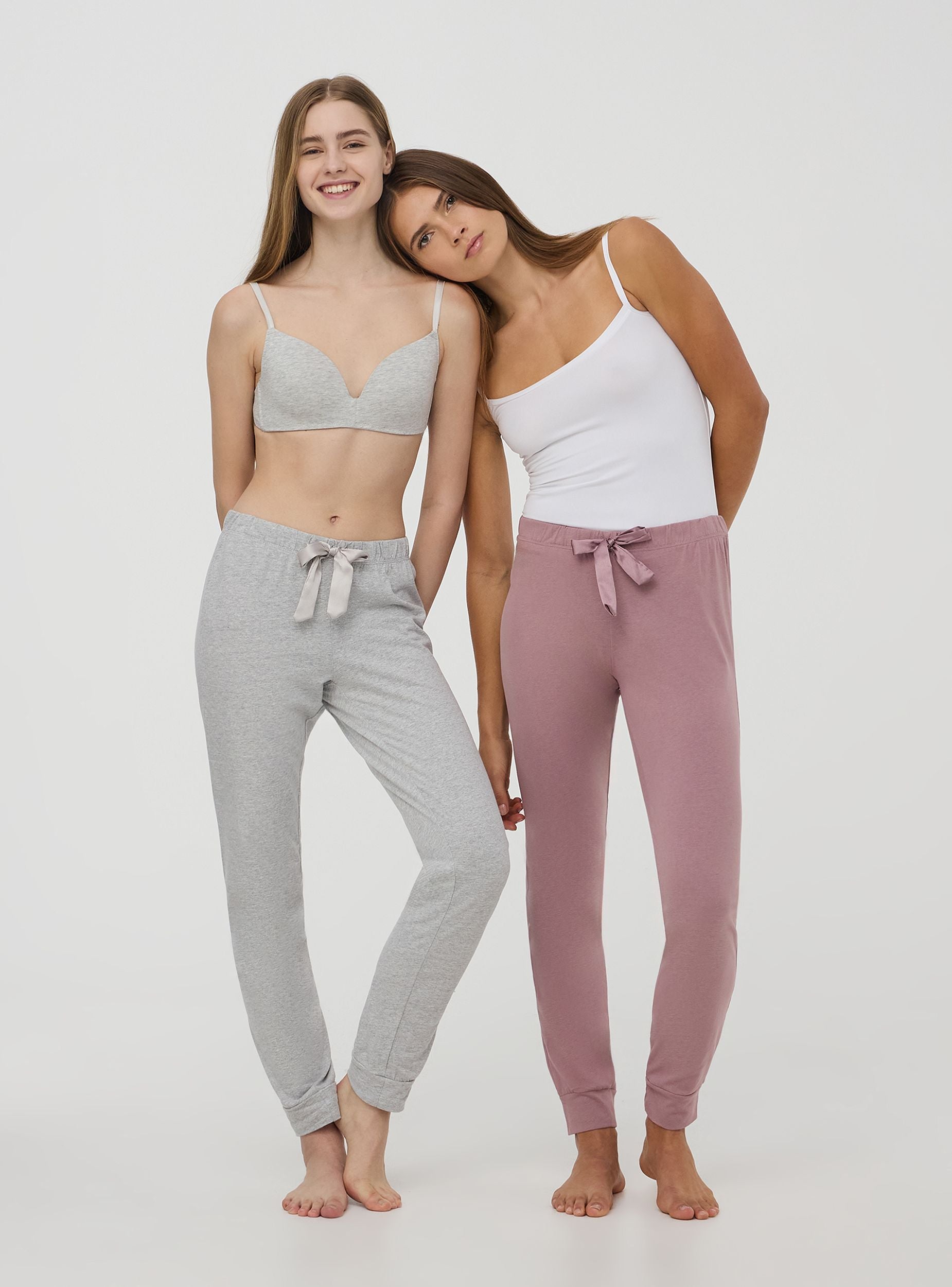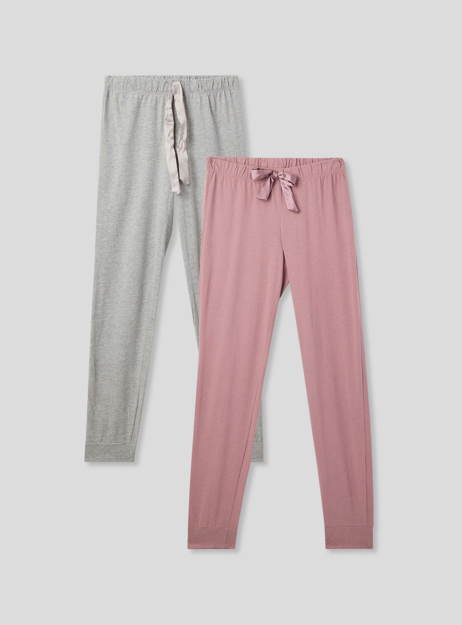 Confezione composta da 2 pantaloni lunghi del pigiama da donna in tessuto a tinta unita. Modello con coulisse in vita con nastrini da chiudere a fiocco e polsini con elastico sul fondo. Ideali per un comfort ottimale durante il riposo. Vestibilità regular.
