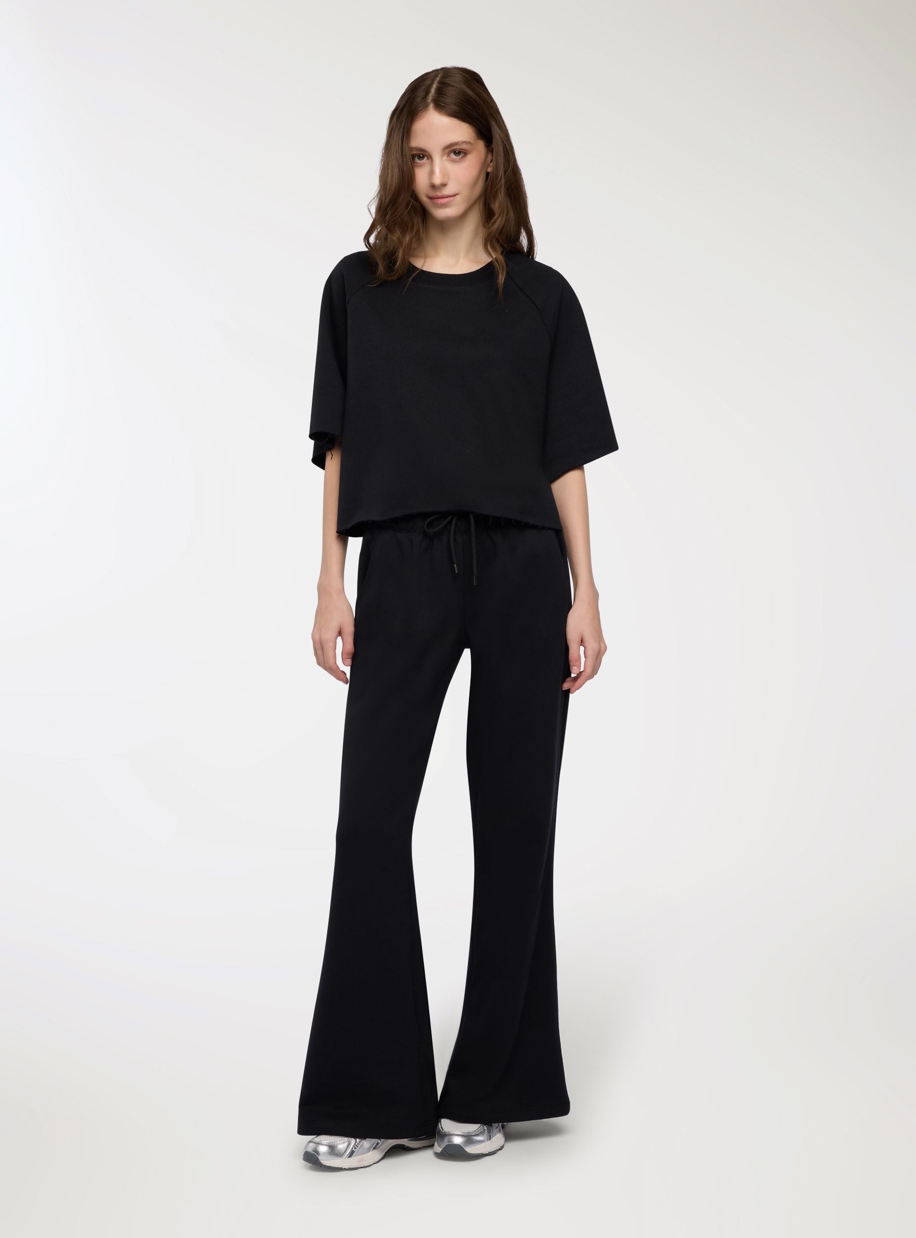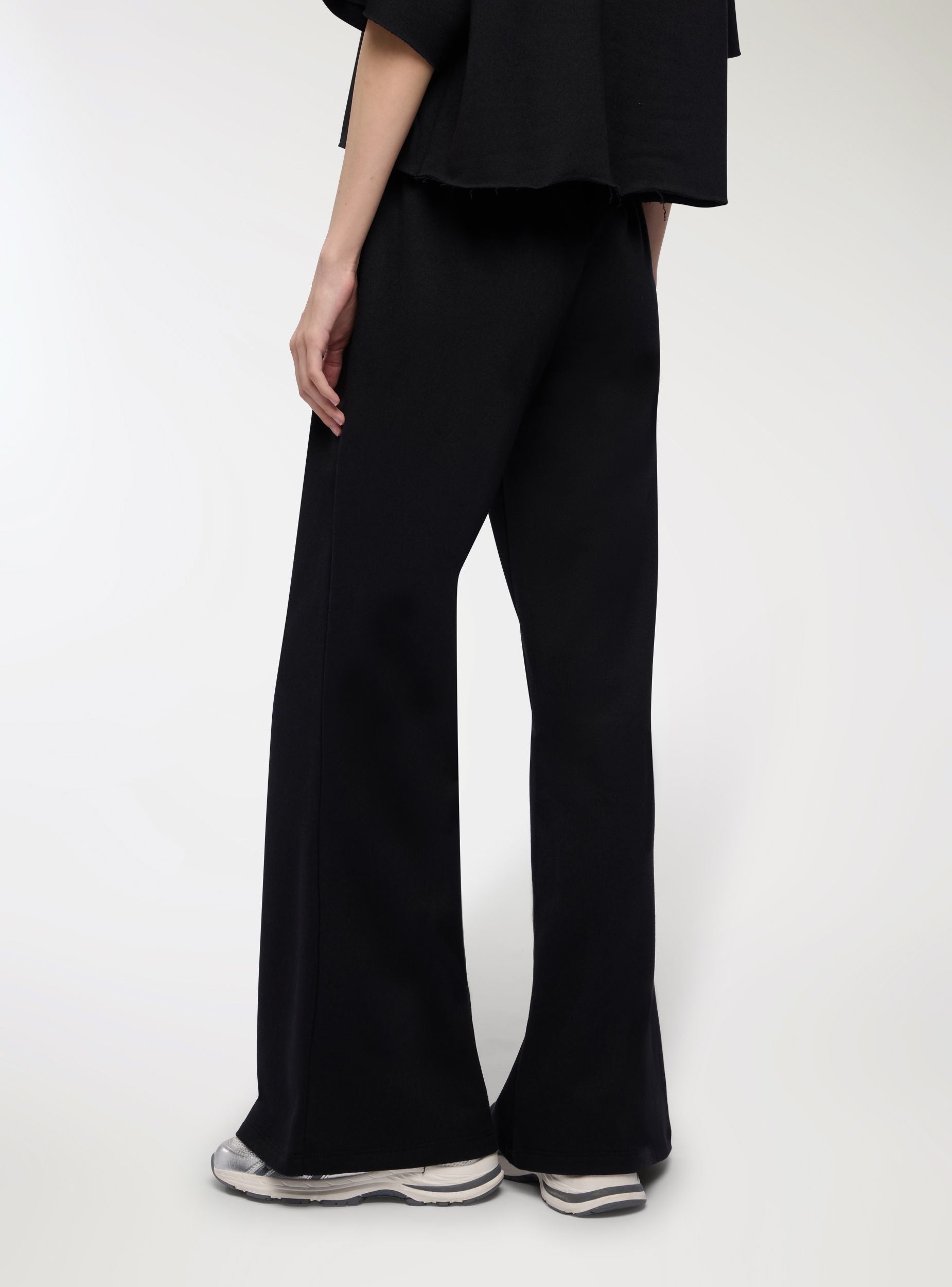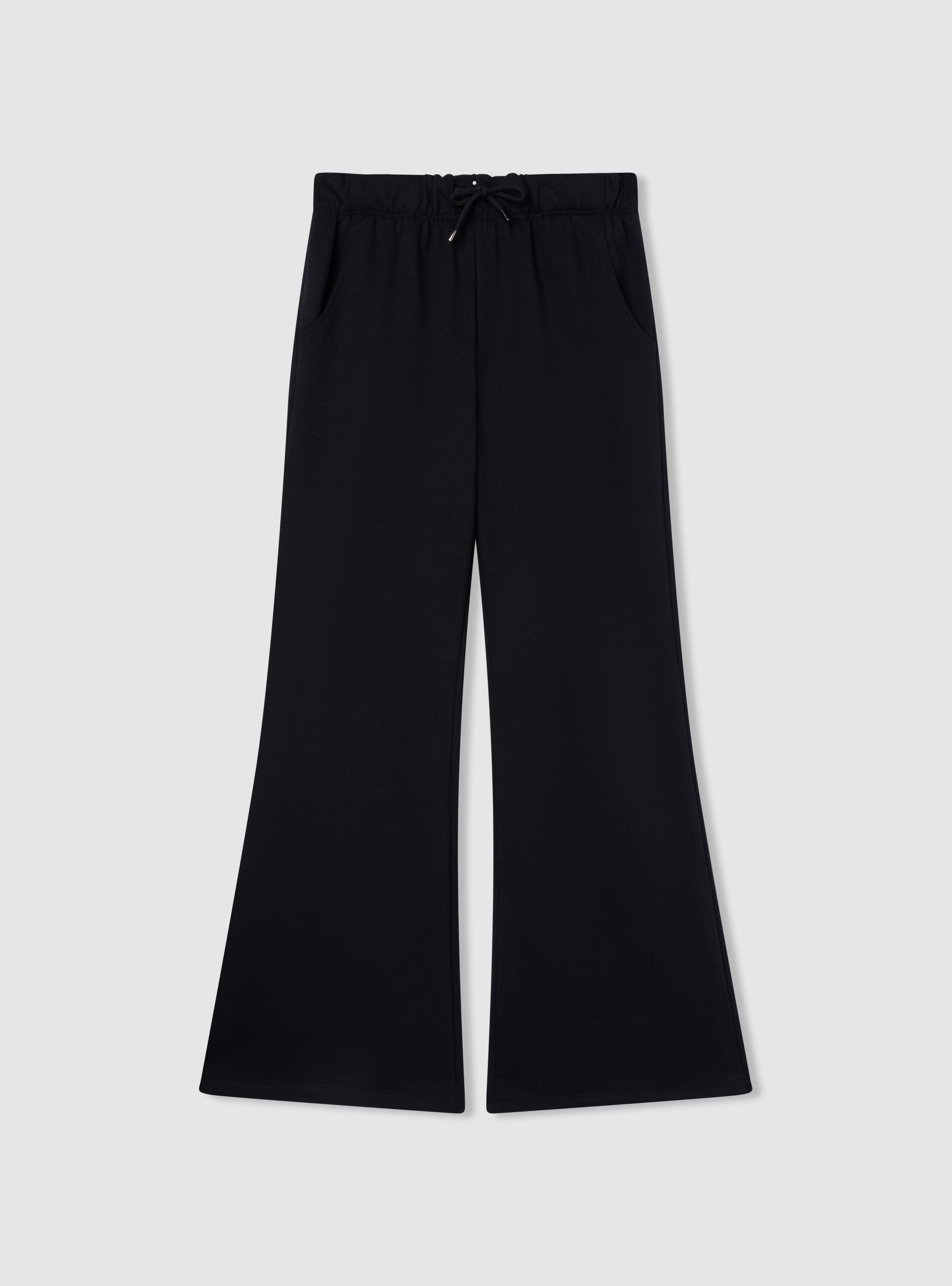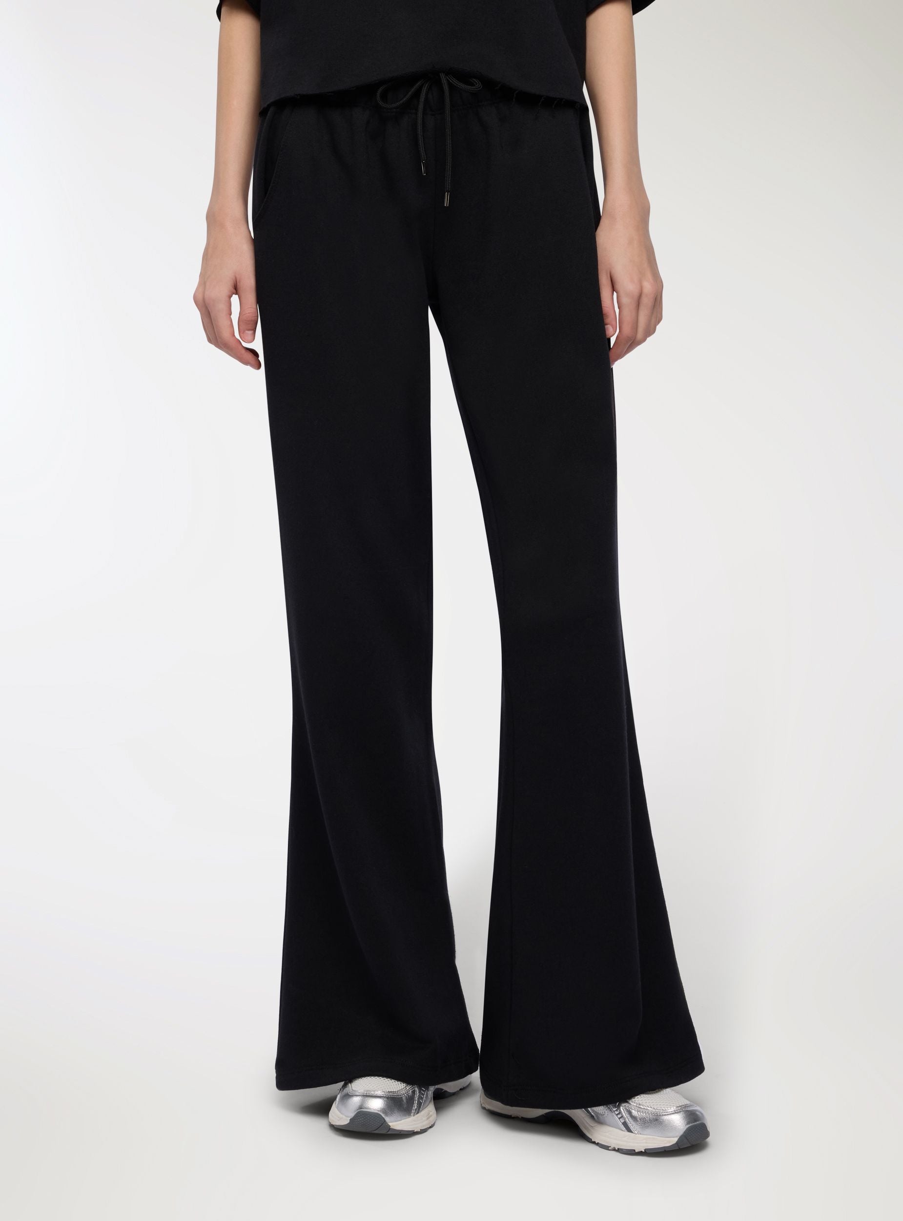 Pantaloni tuta da donna dal design a zampa, ideali per il tempo libero e look casual. Vita con coulisse regolabile e tasche laterali a filetto per praticità. Lunghezza alla caviglia e vestibilità regular che valorizza la linea senza costringere. Perfetti con felpe o magliette e sneakers per outfit comodi, oppure con cardigan e top per un tocco rilassato ma curato. Tessuto leggero a tinta unita.