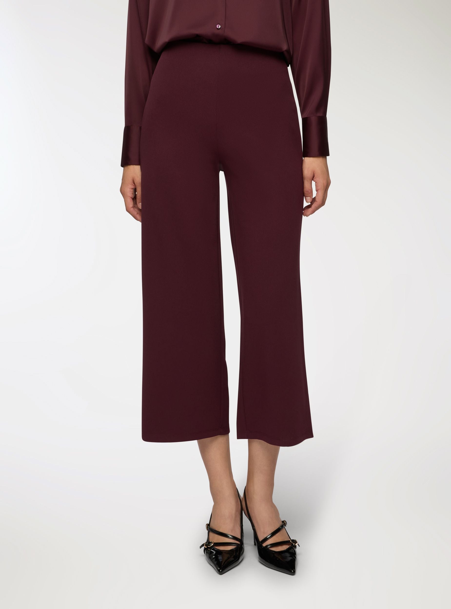Pantaloni culotte da donna con design a gamba larga, ideali per un look elegante e moderno. Perfetti per occasioni formali o per un outfit da ufficio, si abbinano facilmente a camicie e bluse. La vestibilità ampia garantisce comfort e stile, mentre il design minimalista li rende versatili per diverse combinazioni. Un capo essenziale per un guardaroba contemporaneo.