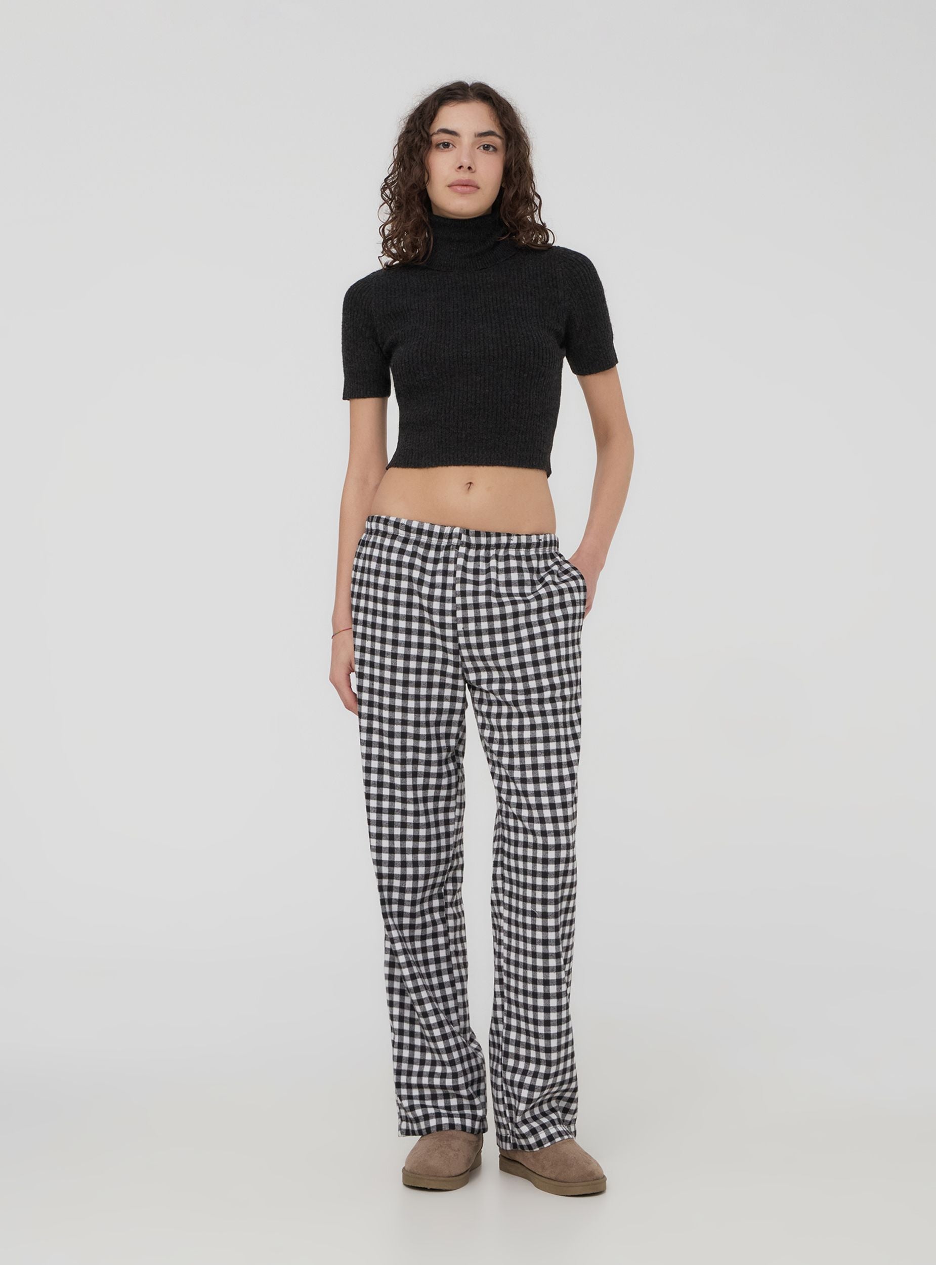 Pantaloni da donna in flanella, ideali per aggiungere un tocco di stile casual e confortevole al tuo guardaroba. Il design a quadri dona un aspetto vivace e intramontabile, perfetto per creare abbinamenti versatili con maglie e camicie. La vestibilità rilassata e la vita elasticizzata assicurano il massimo comfort, rendendoli ideali per le giornate di relax o per un look informale ma curato. Questi pantaloni sono un’opzione alla moda che unisce calore e morbidezza, garantendo un outfit pratico e originale per la stagione.