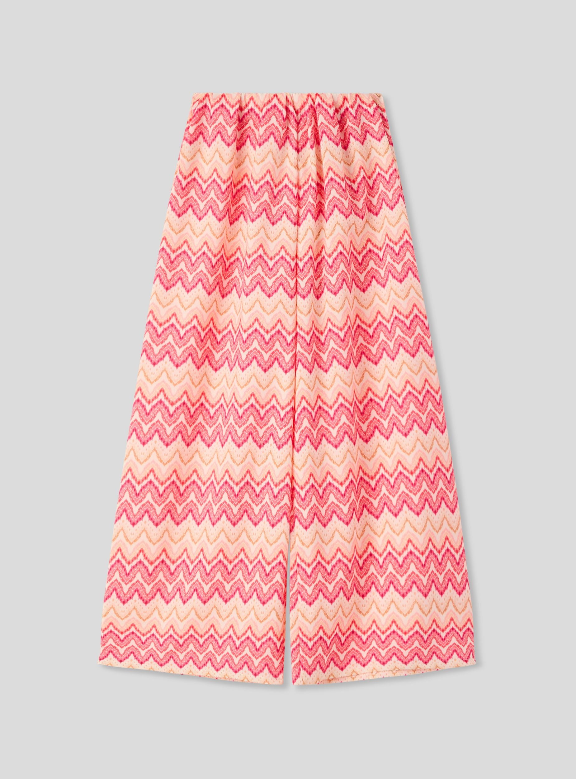 Pantaloni da bambina con design wide leg, ideali per un look casual e comodo. Presentano una fantasia vivace che aggiunge un tocco di allegria al guardaroba. Perfetti per essere abbinati a magliette o camicie leggere, sono adatti per giornate di gioco o passeggiate. La vestibilità ampia garantisce libertà di movimento e comfort.