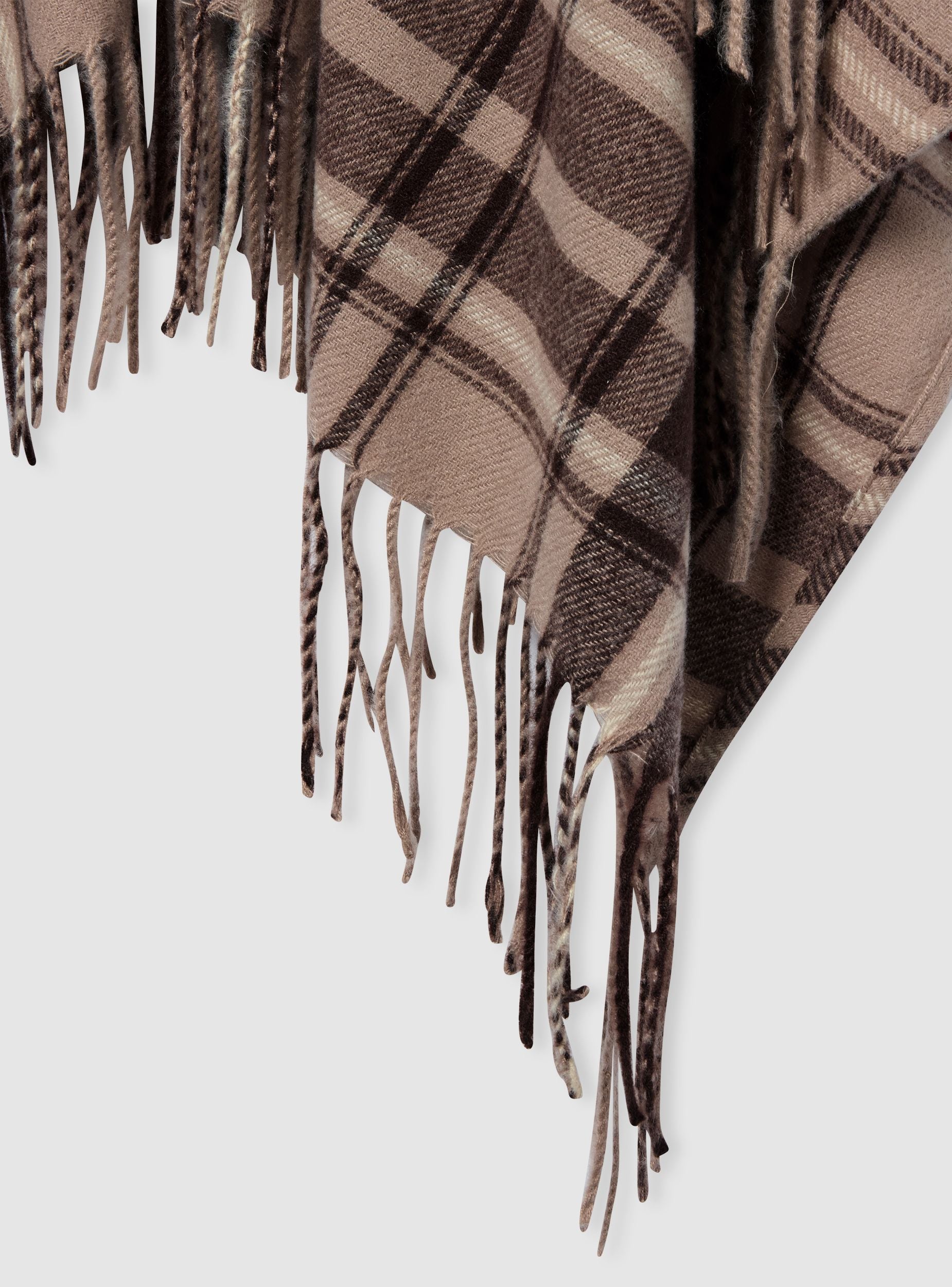 Poncho da donna con fantasia a quadri, ideale per completare outfit casual e aggiungere un tocco di stile. Perfetto per le giornate fresche, si abbina facilmente a cappotti e giacche. La presenza di frange dona movimento e carattere al design, rendendolo un accessorio versatile per diverse occasioni.