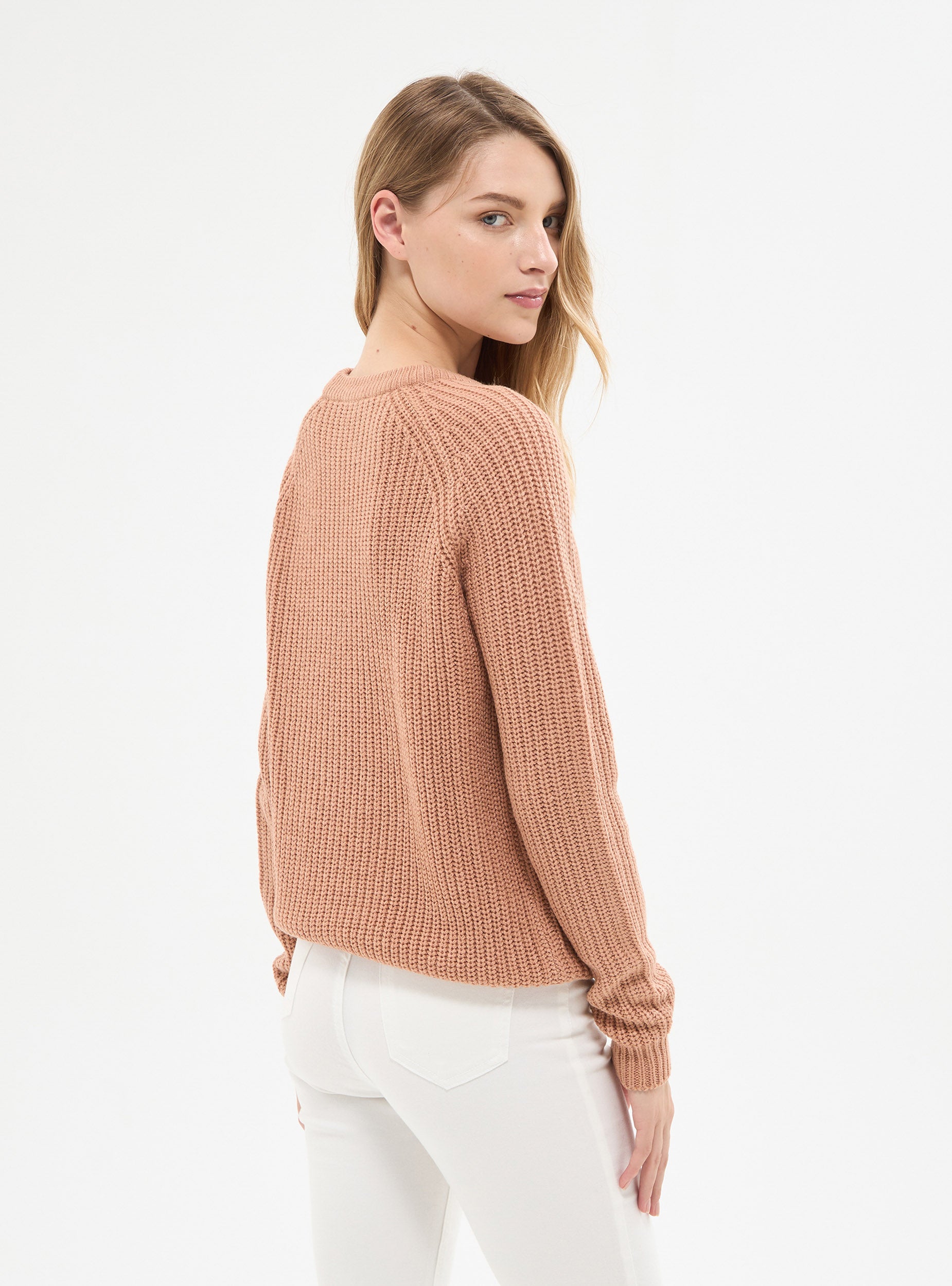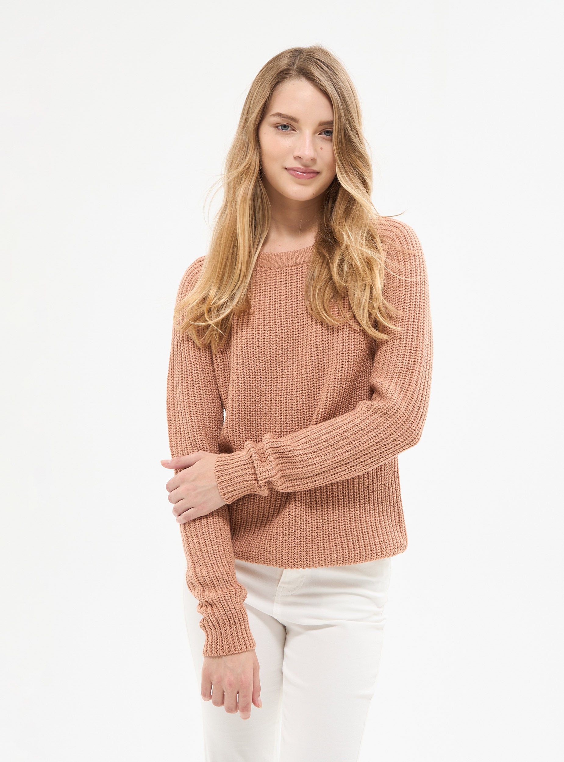 Maglia da donna, modello girocollo con maniche lunghe. Lavorazione a costa inglese. Tinta unita. Finiture a costine. Vestibilità è regular.Dettagli