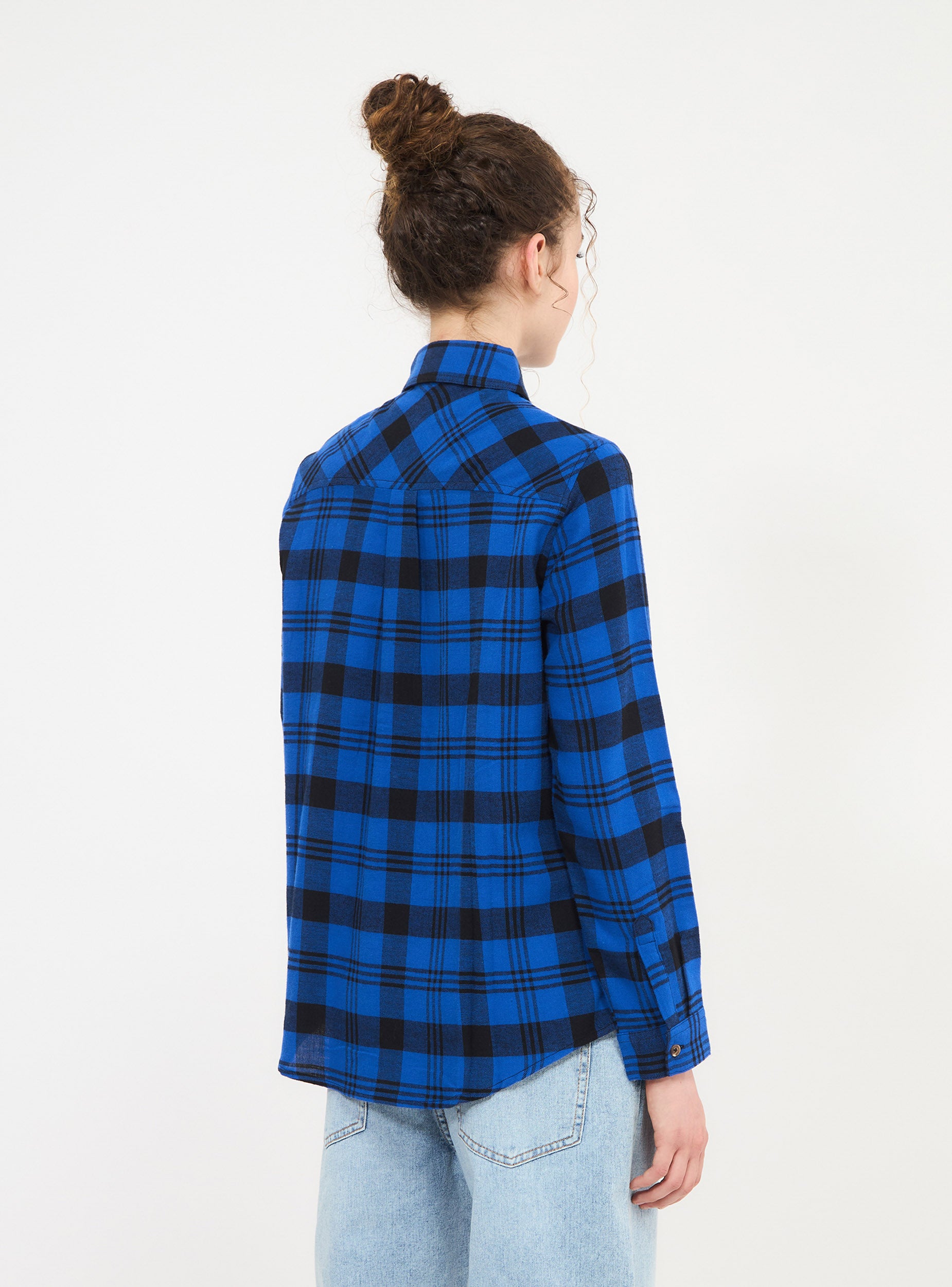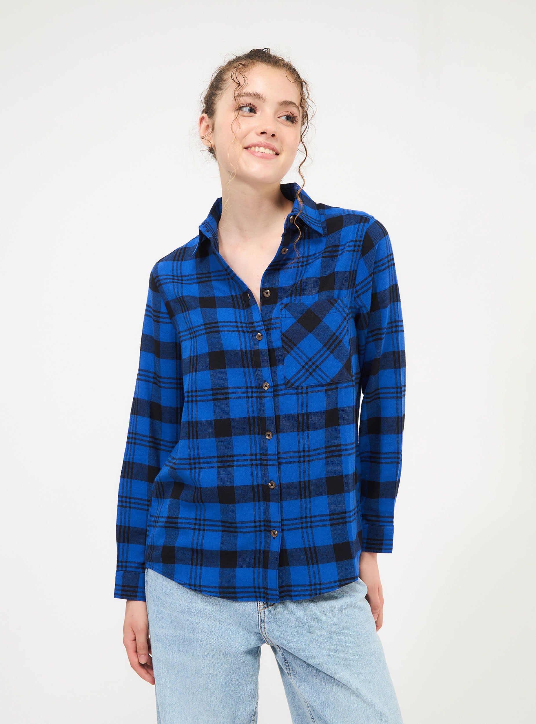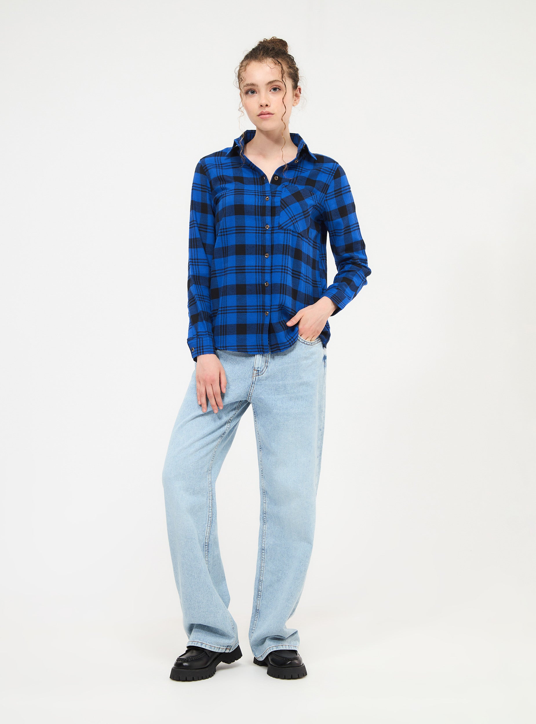 Camicia da donna a maniche lunghe. Fantasia a quadri, tessuto flanella.