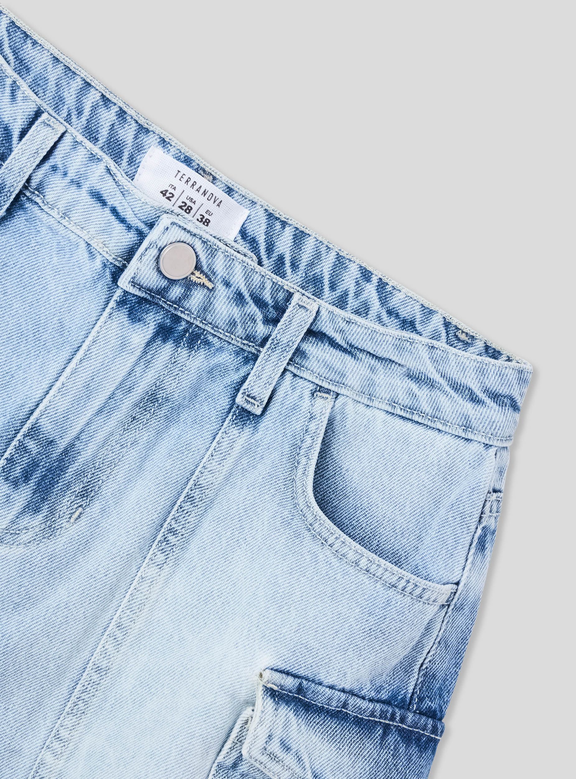 Pantaloncini in denim da donna ideali per un look casual e versatile. Presentano una vestibilità regolare e un design a tinta unita. Dotati di tasconi cargo pratici e funzionali, sono perfetti per completare outfit estivi o informali. La chiusura con bottone e zip garantisce una vestibilità sicura e comoda. Ideali da abbinare a t-shirt o top per un look fresco e alla moda.
