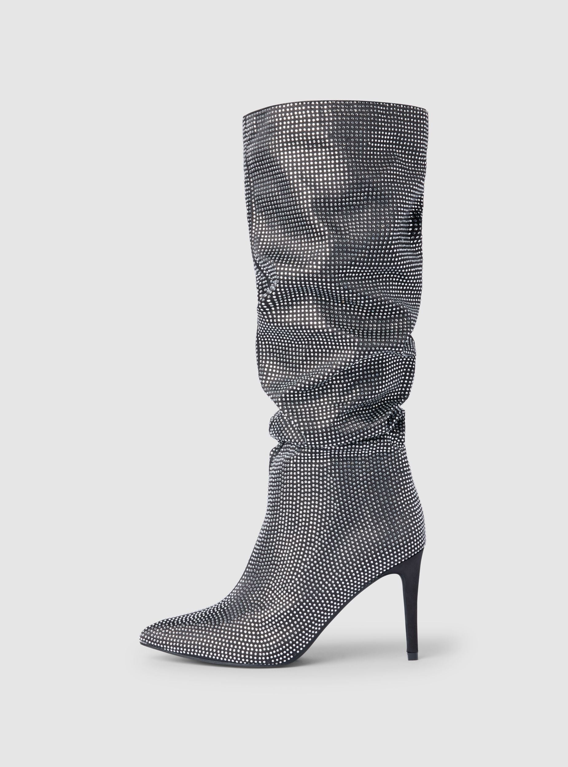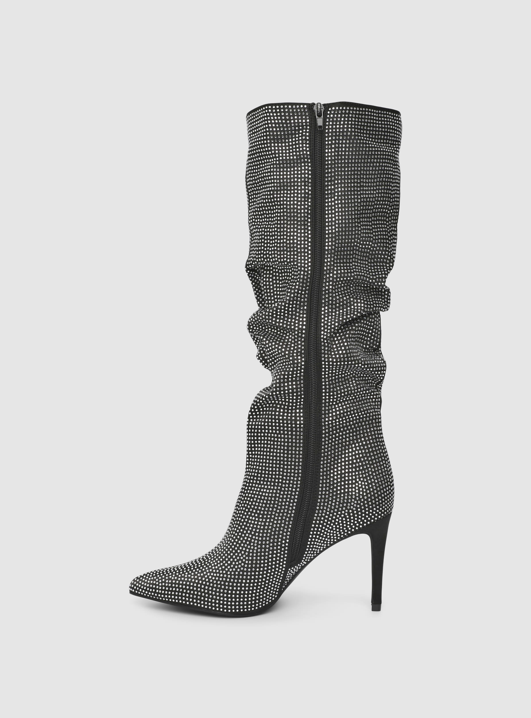 Stivali da donna ideali per serate eleganti e occasioni speciali. Presentano un design con strass, una chiusura con zip per una calzata pratica e un tacco alto che slancia la figura. Perfetti da abbinare a vestiti o pantaloni aderenti per un look sofisticato e glamour. Altezza tacco 11 cm.
