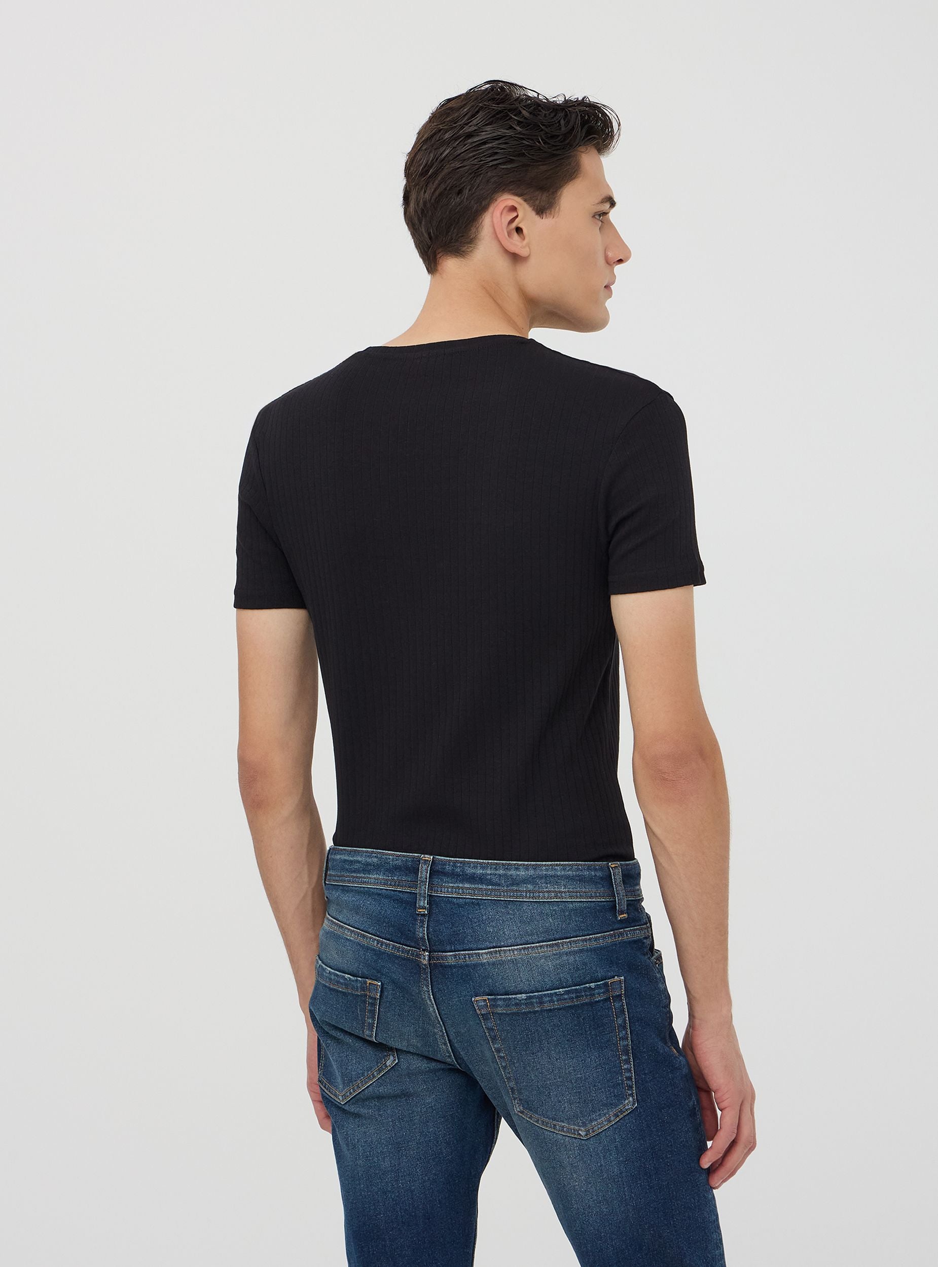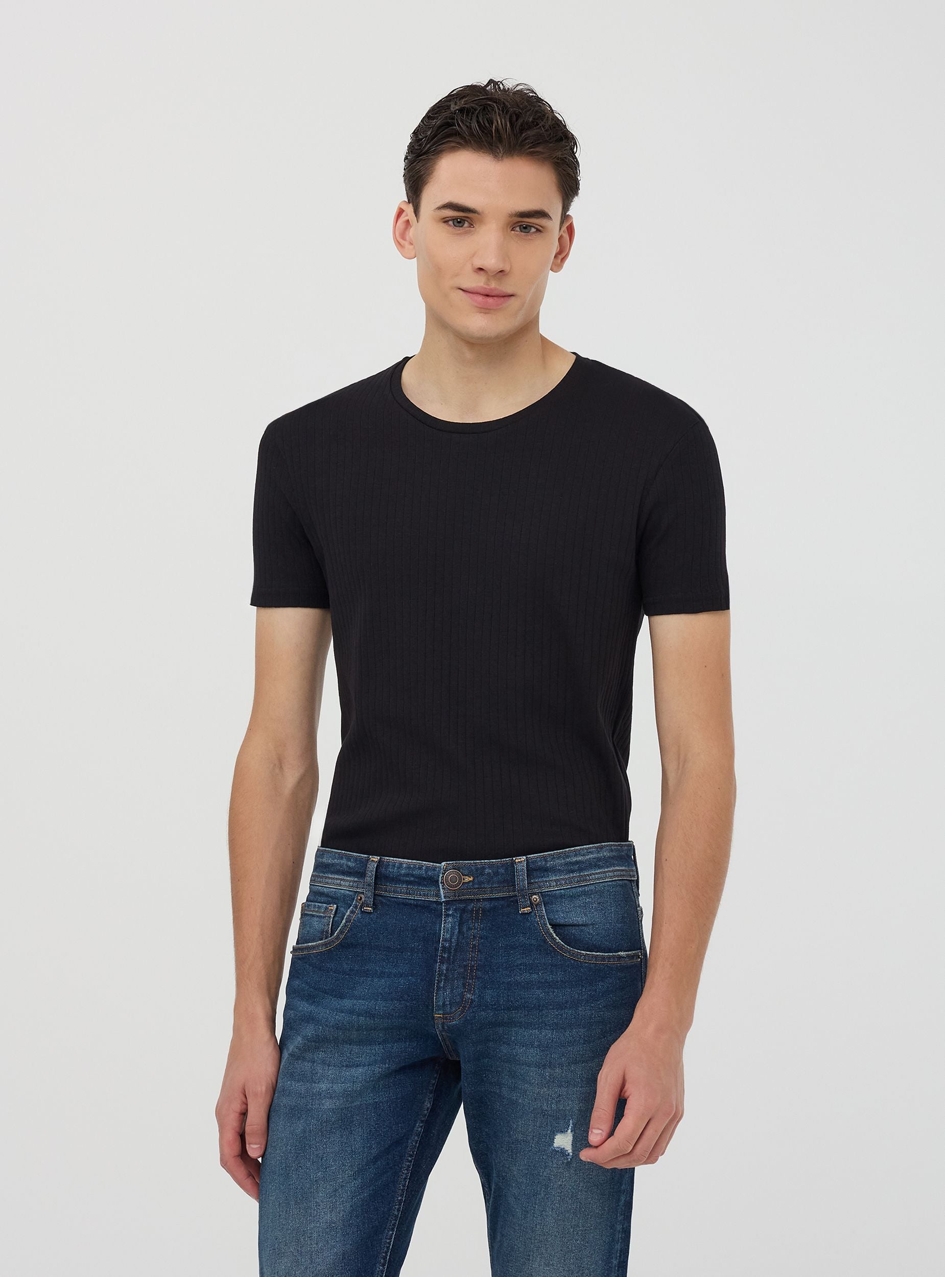 Maglietta da uomo con maniche corte e girocollo, ideale per un look essenziale e versatile. Il design in costina aggiunge una texture distintiva e piacevole al tatto, mentre la tinta unita la rende facilmente abbinabile con diversi stili. Perfetta per garantire comfort e leggerezza durante tutto il giorno, questa t-shirt è un capo indispensabile per completare il guardaroba quotidiano con semplicità e praticità.