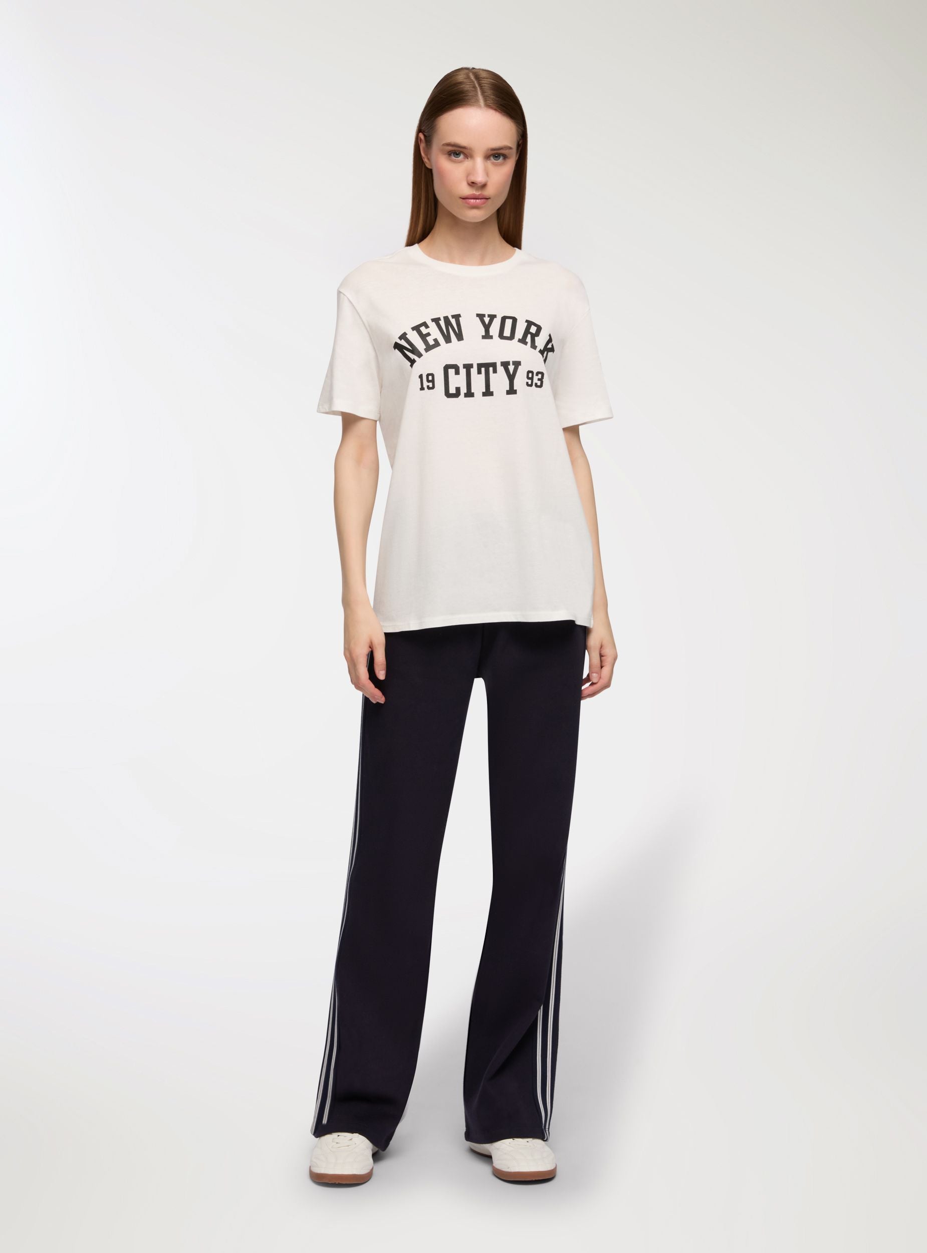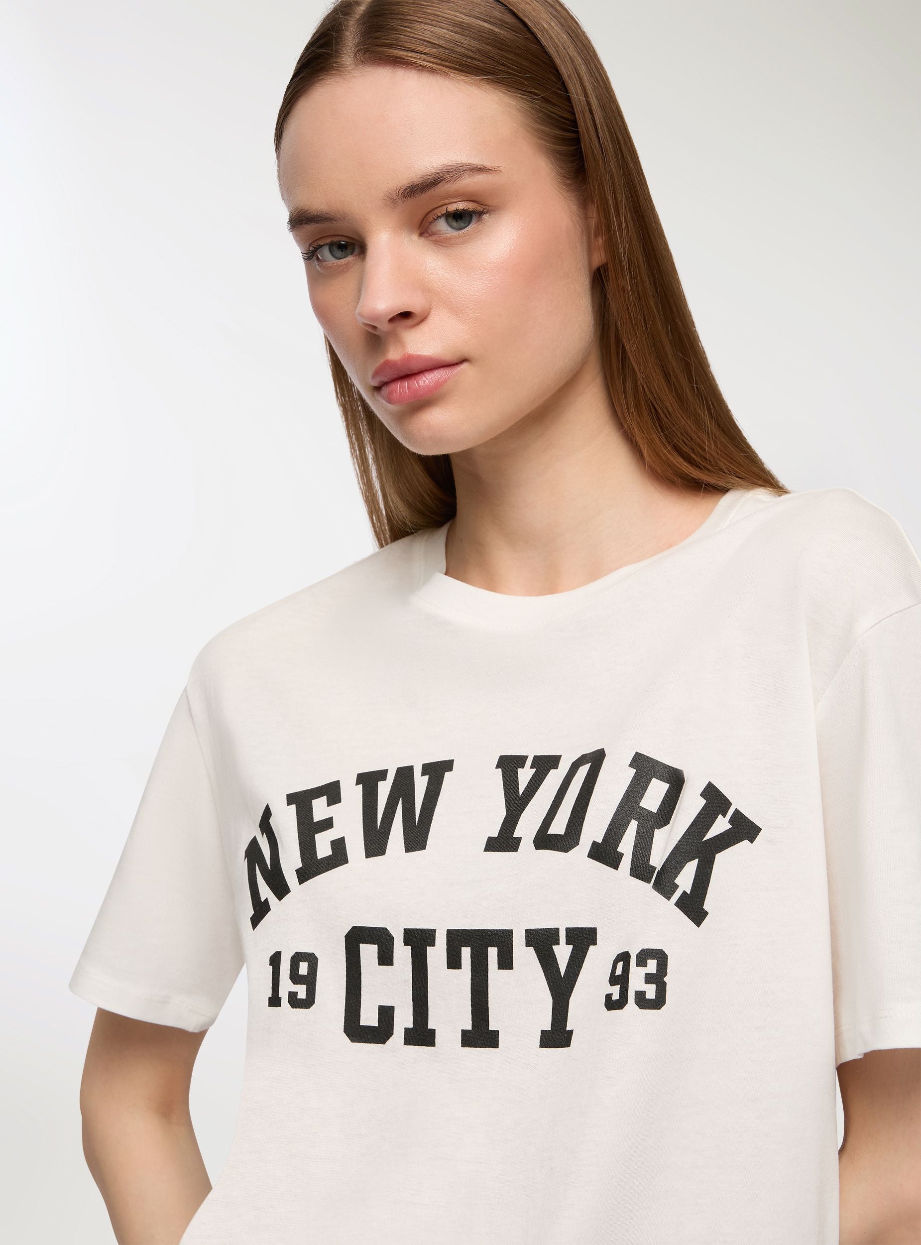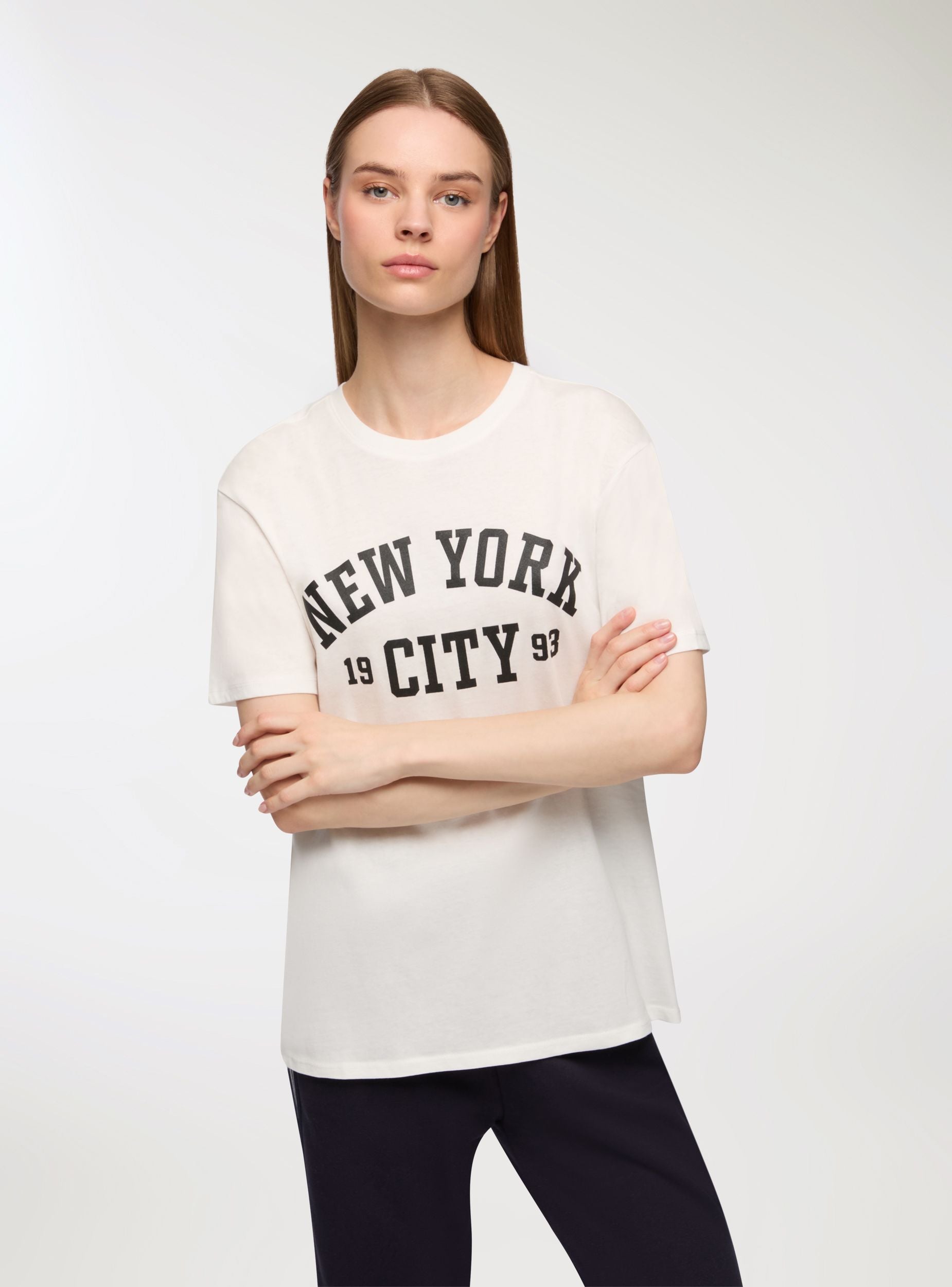 Maglietta da donna con vestibilità ampia, ideale per un look casual e rilassato. Perfetta per il tempo libero, si abbina facilmente a jeans o pantaloncini per un outfit comodo e alla moda. Il design con stampa college aggiunge un tocco di stile urbano, rendendola adatta a diverse occasioni informali.Dettagli