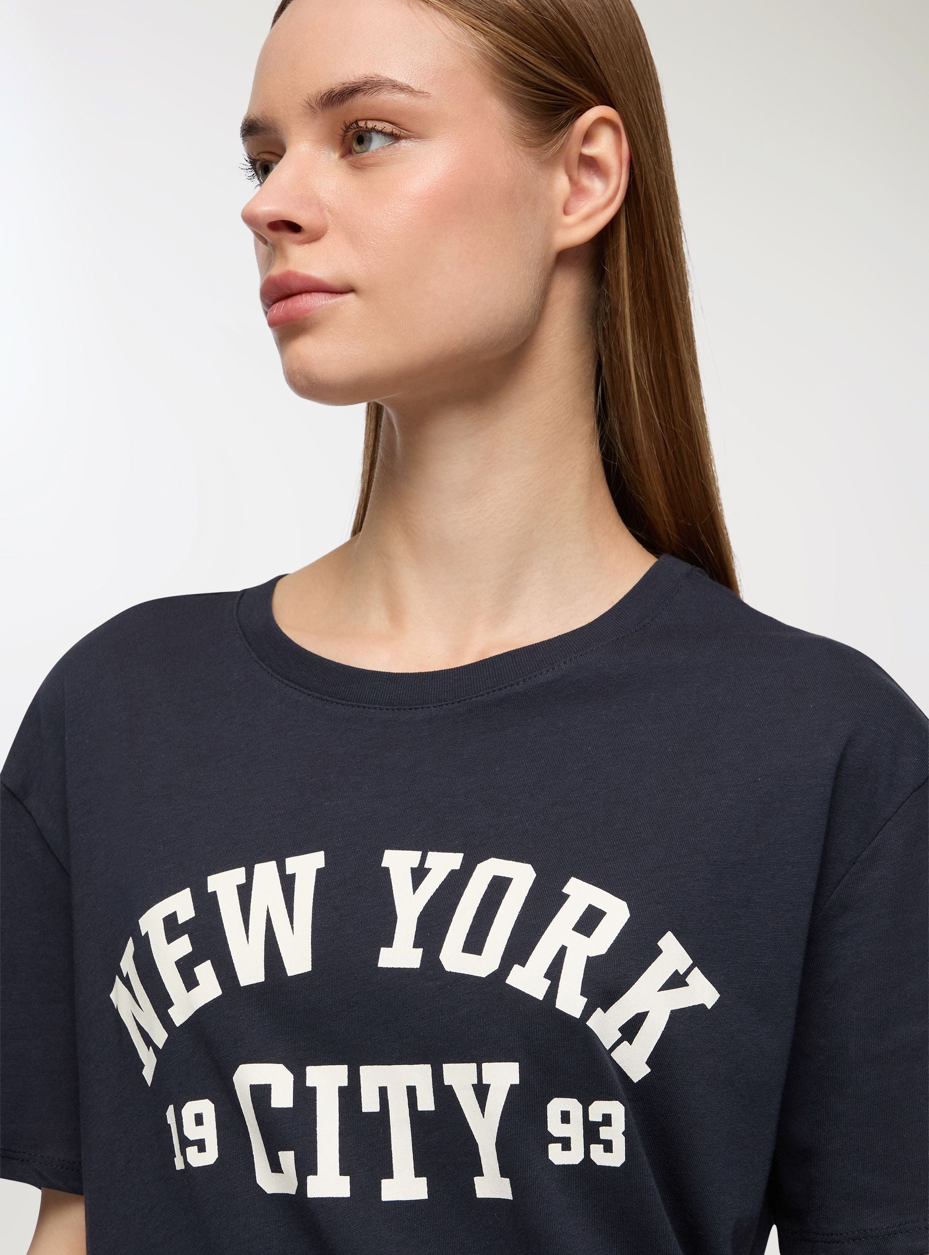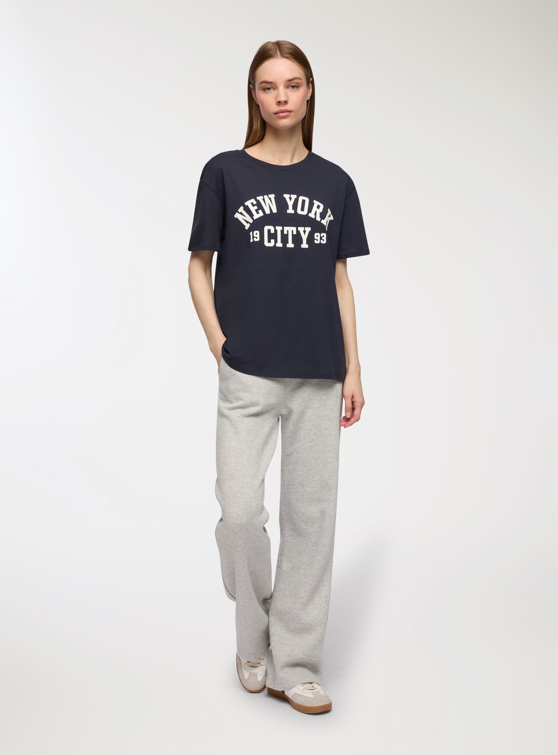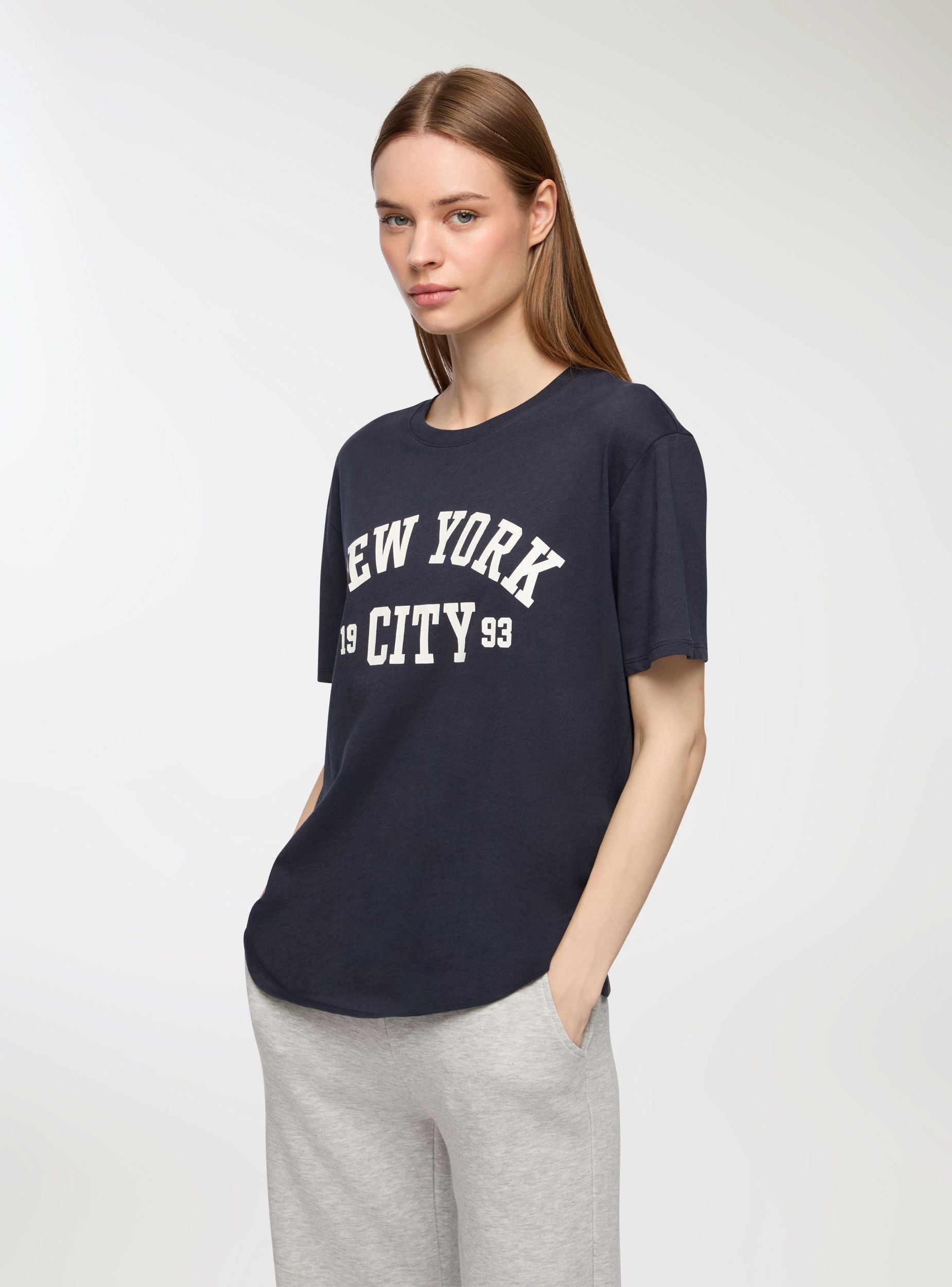 Maglietta da donna con vestibilità ampia, ideale per un look casual e rilassato. Perfetta per il tempo libero, si abbina facilmente a jeans o pantaloncini per un outfit comodo e alla moda. Il design con stampa college aggiunge un tocco di stile urbano, rendendola adatta a diverse occasioni informali.