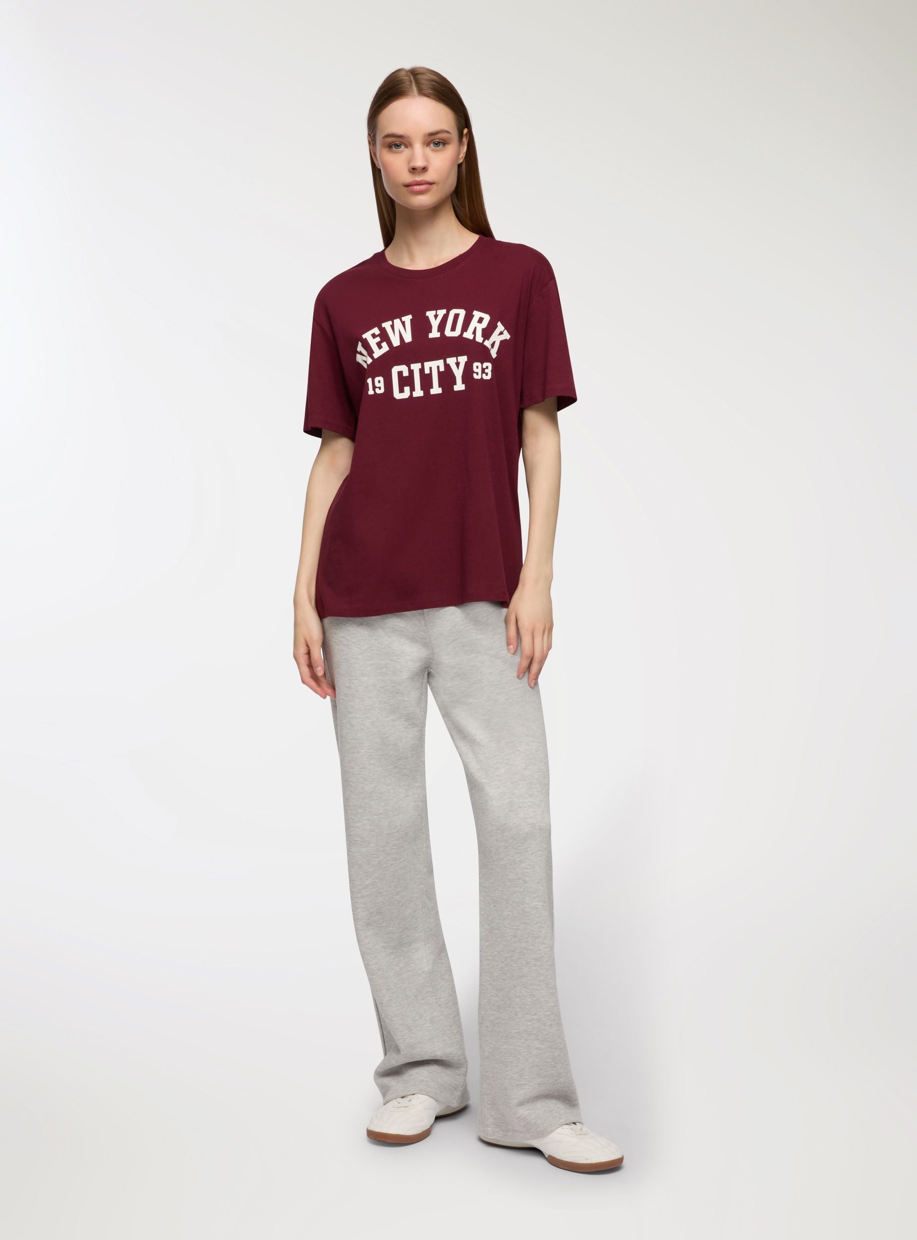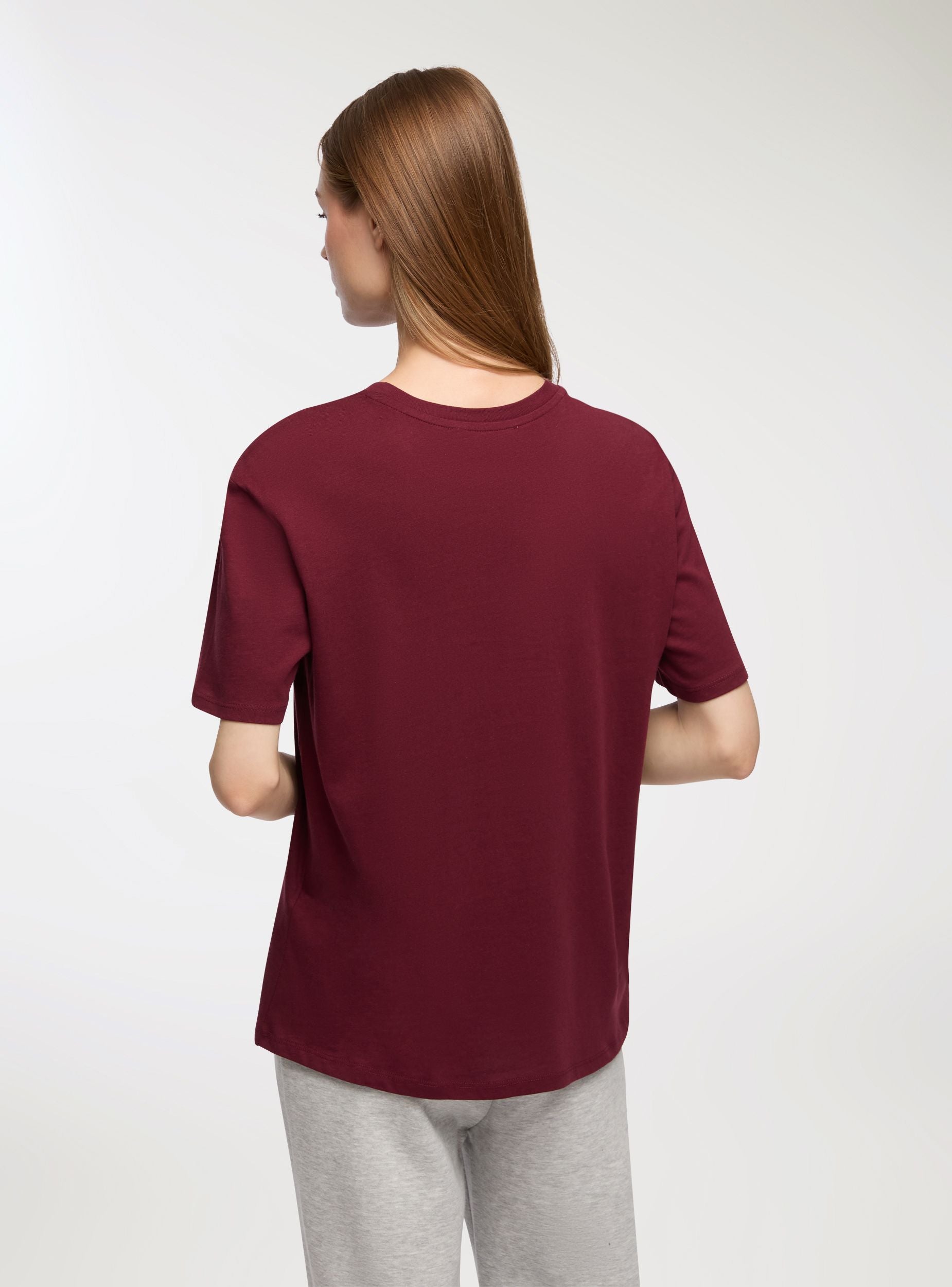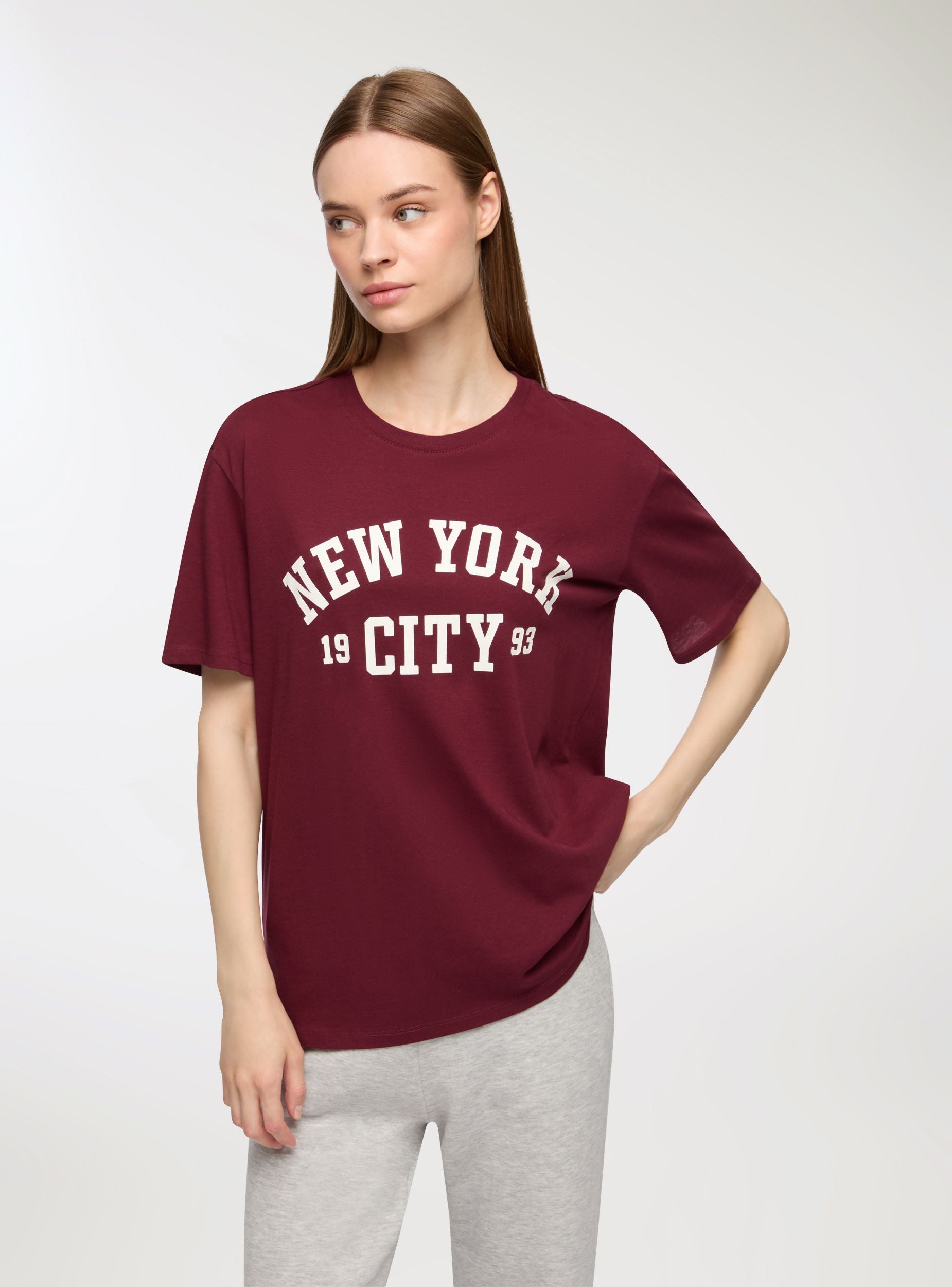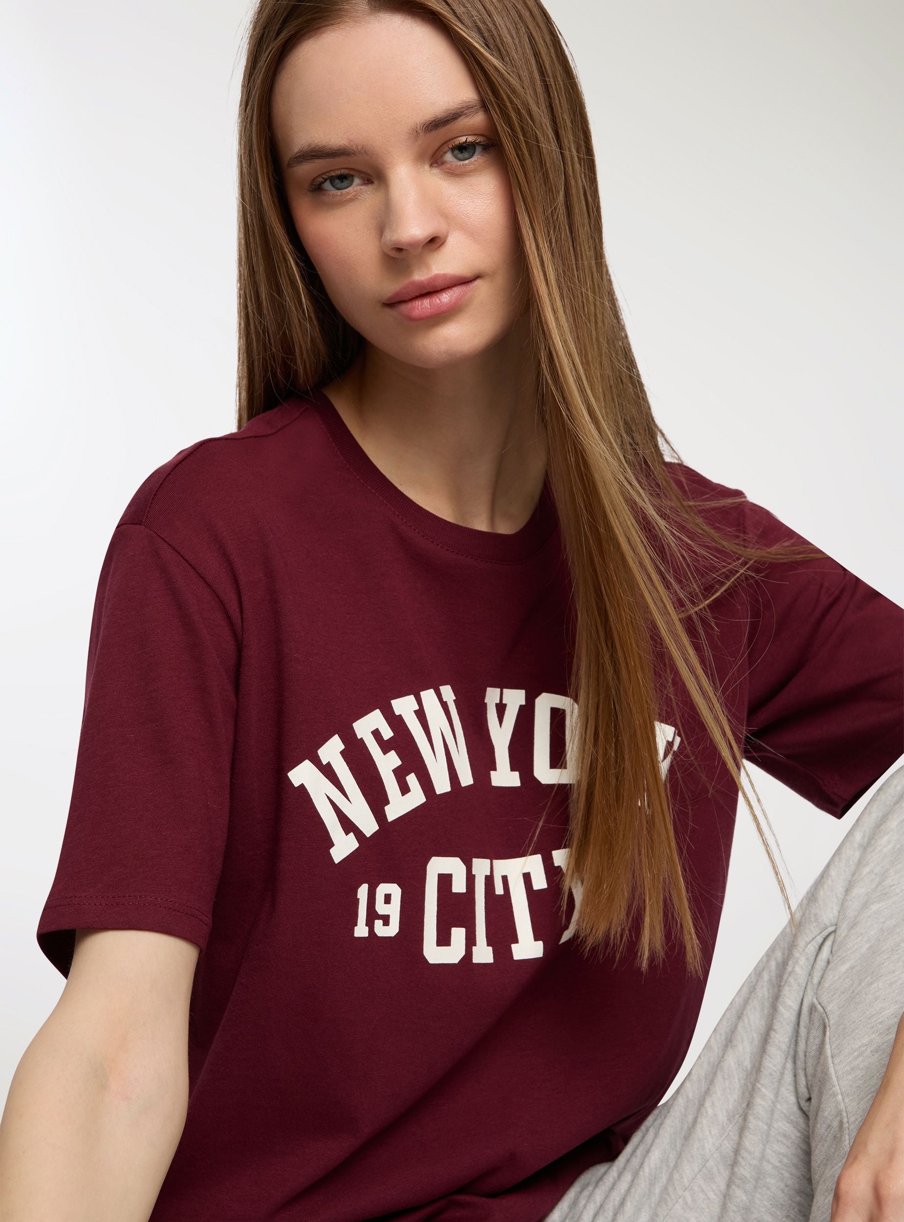 Maglietta da donna con vestibilità ampia, ideale per un look casual e rilassato. Perfetta per il tempo libero, si abbina facilmente a jeans o pantaloncini per un outfit comodo e alla moda. Il design con stampa college aggiunge un tocco di stile urbano, rendendola adatta a diverse occasioni informali.