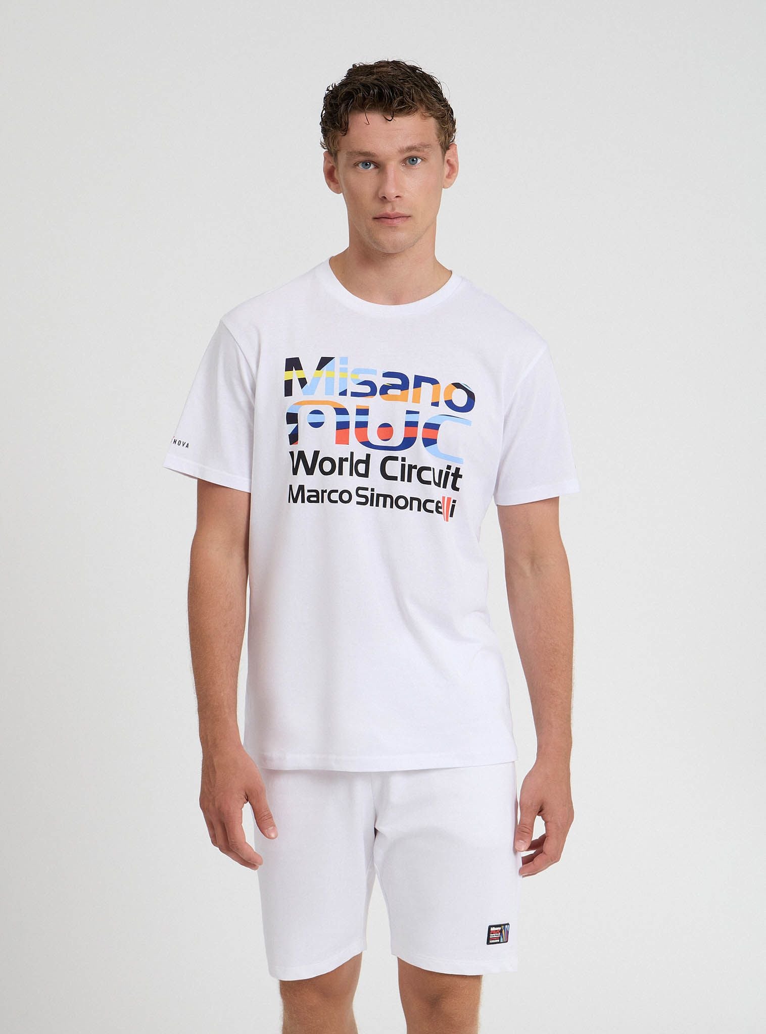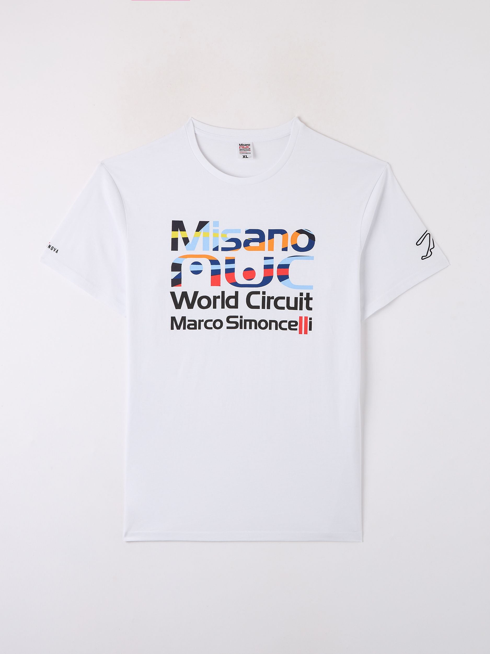 Maglietta da uomo con modello girocollo, caratterizzata da una stampa del logo Misano World Circuit. La vestibilità è regular, offrendo un comfort ideale per chi desidera uno stile casual con un tocco sportivo e distintivo. Perfetta per gli appassionati di motorsport o per chi ama capi dal design unico e moderno.