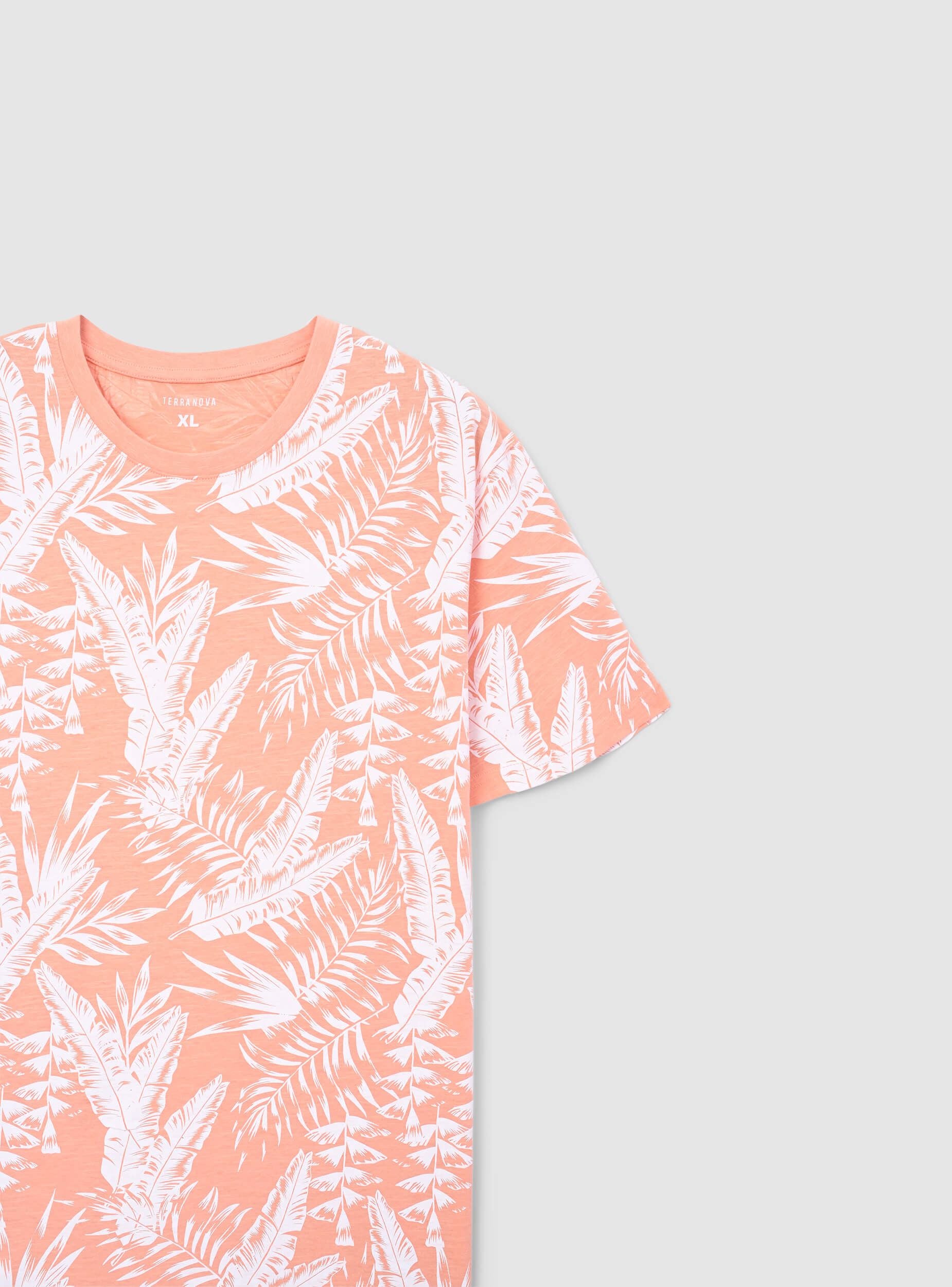 Maglietta da uomo dallo stile fresco e moderno, caratterizzata da una stampa allover a tema palme che richiama atmosfere tropicali. Con maniche corte e girocollo, garantisce comodità e versatilità. Perfetta per look casual estivi, si abbina facilmente a bermuda, jeans o pantaloni leggeri, ideale per giornate all’aperto, vacanze o momenti di relax con amici.