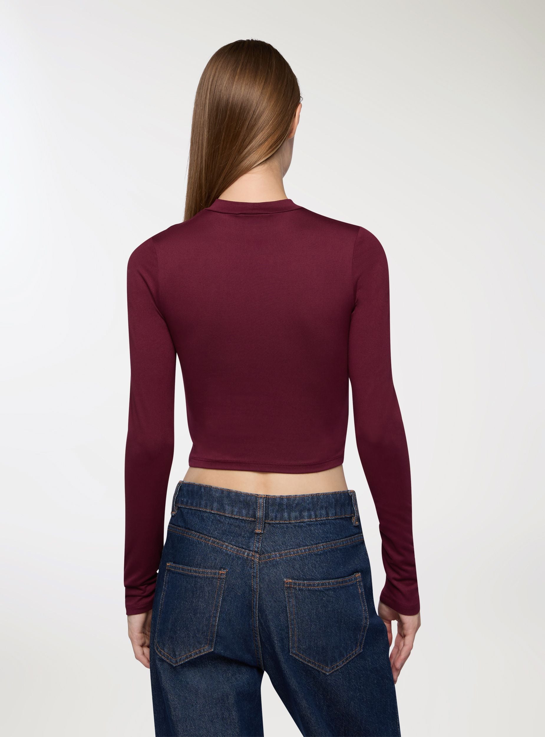 T-shirt crop a lupetto tessuto caldo