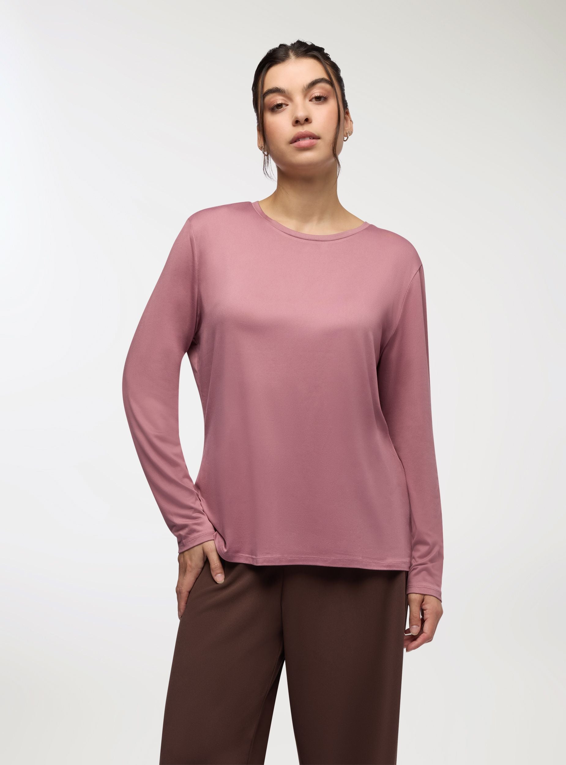 Tessuto extra caldo. Maglia da donna a maniche lunghe con taglio aderente e girocollo, ideale per i mesi più freschi. Realizzata in tessuto morbido ed elasticizzato avvolge la silhouette con comfort e leggerezza. Perfetta come sottogiacca o da indossare da sola, è un capo versatile per look casual o più femminili. Un basico intramontabile da avere sempre nel guardaroba.