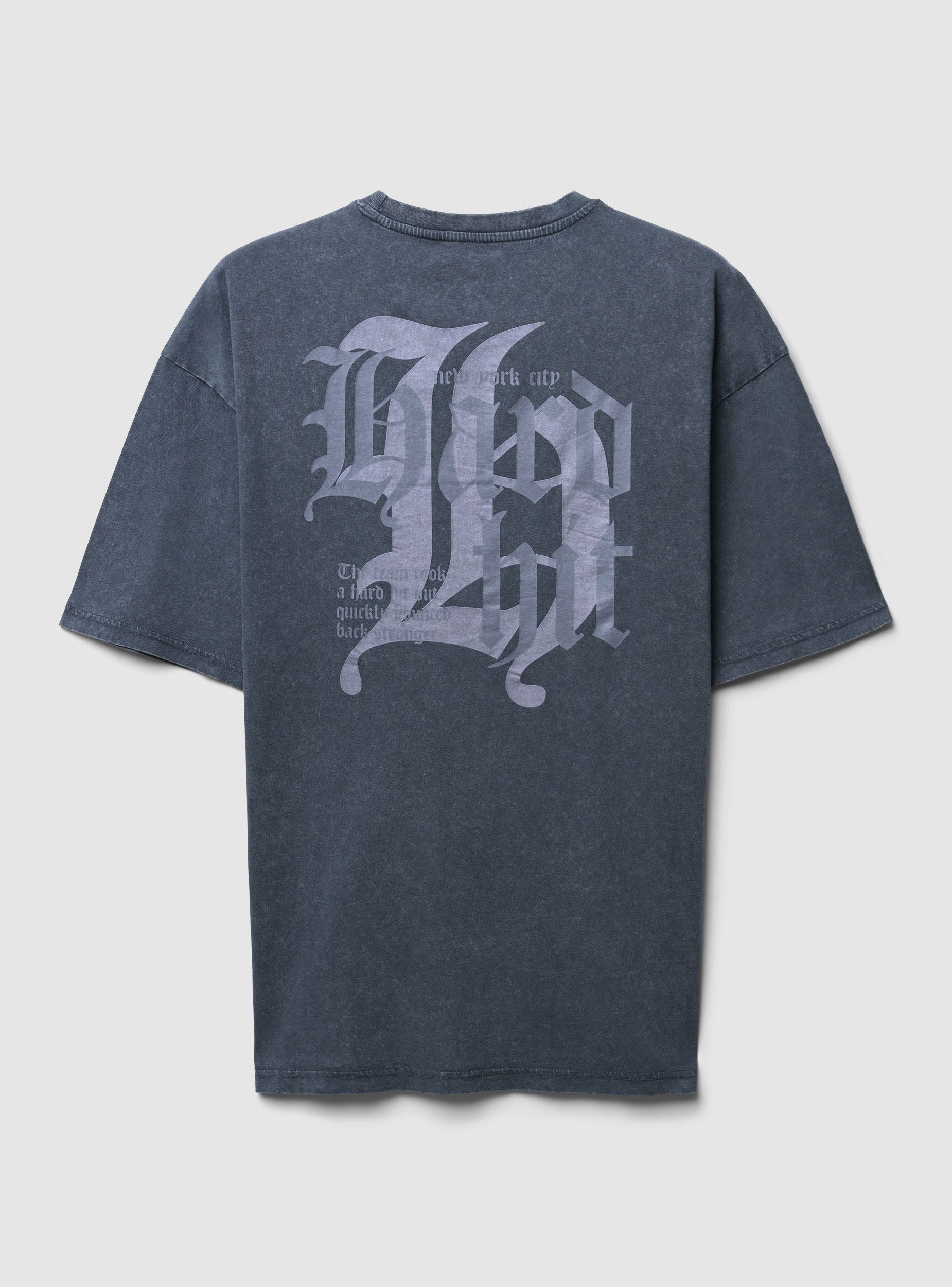 Maglietta da uomo acid wash con vestibilità oversize, perfetta per un look urbano e casual. Presenta una scritta gotica di grande impatto sul retro e un piccolo dettaglio grafico sul davanti, che conferiscono un tocco distintivo al design. Ideale da abbinare a jeans o pantaloni sportivi per un outfit moderno e confortevole. Il girocollo e le maniche corte la rendono versatile per diverse stagioni e occasioni.