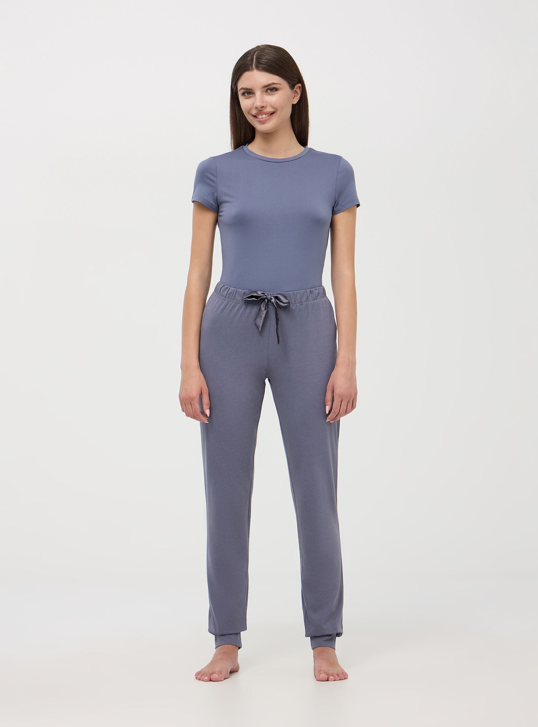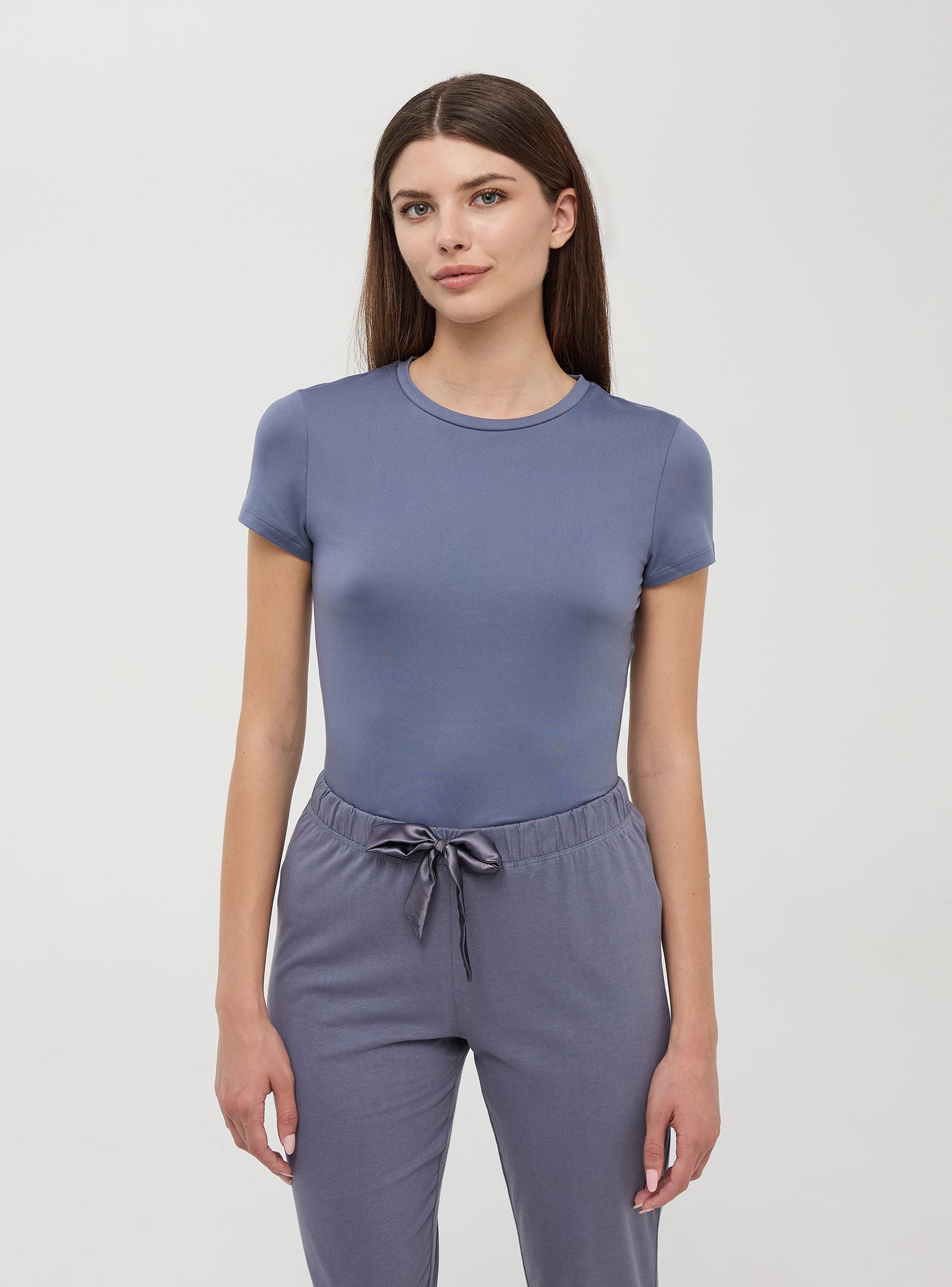 Maglietta da donna thermal a tinta unita. Modello girocollo con maniche corte. Vestibilità aderente. Pigiama.