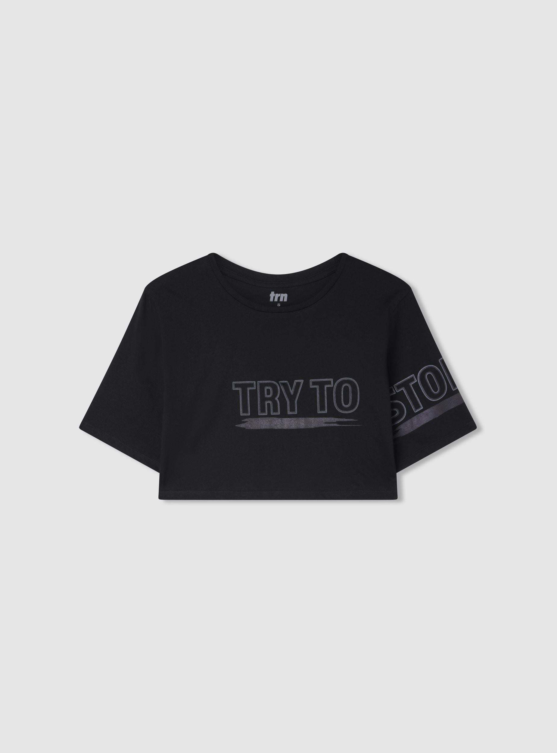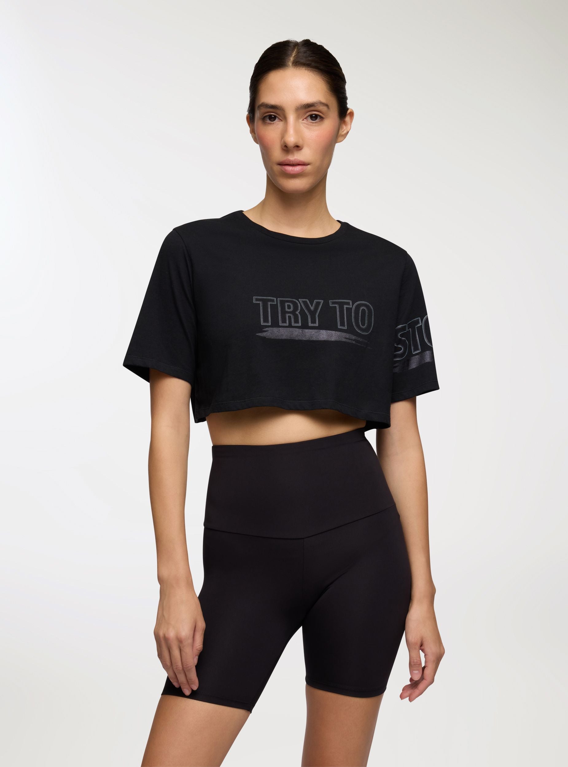 Maglietta sportiva da donna dallo stile deciso, con vestibilità over e taglio crop che valorizza la silhouette con grinta. Il design è arricchito da una stampa con scritta motivazionale, perfetta per un look active e dinamico. Ideale per l’allenamento o per completare outfit streetwear contemporanei, si abbina facilmente a leggings o pantaloni jogger per un risultato comodo e di tendenza. Linea Active.
