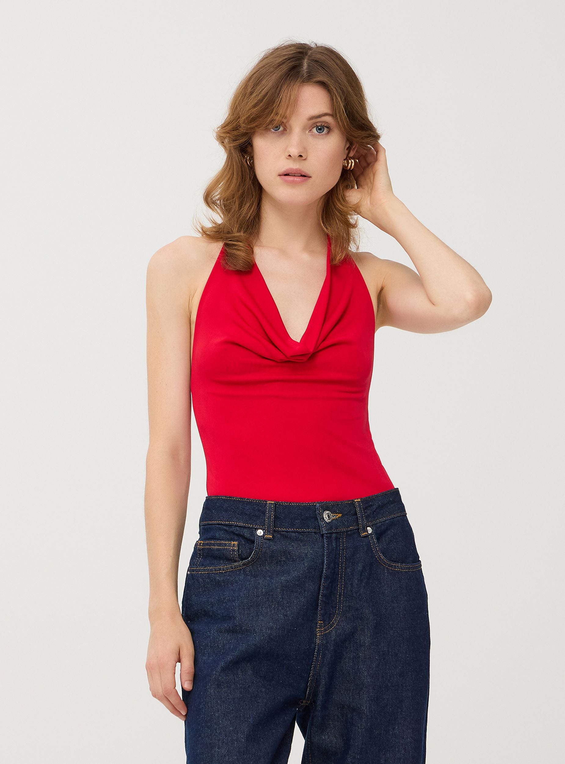 Body da donna con collo sciallato. Realizzato in tessuto a tinta unita elasticizzato. Perfetto per occasioni speciali e party.Dettagli