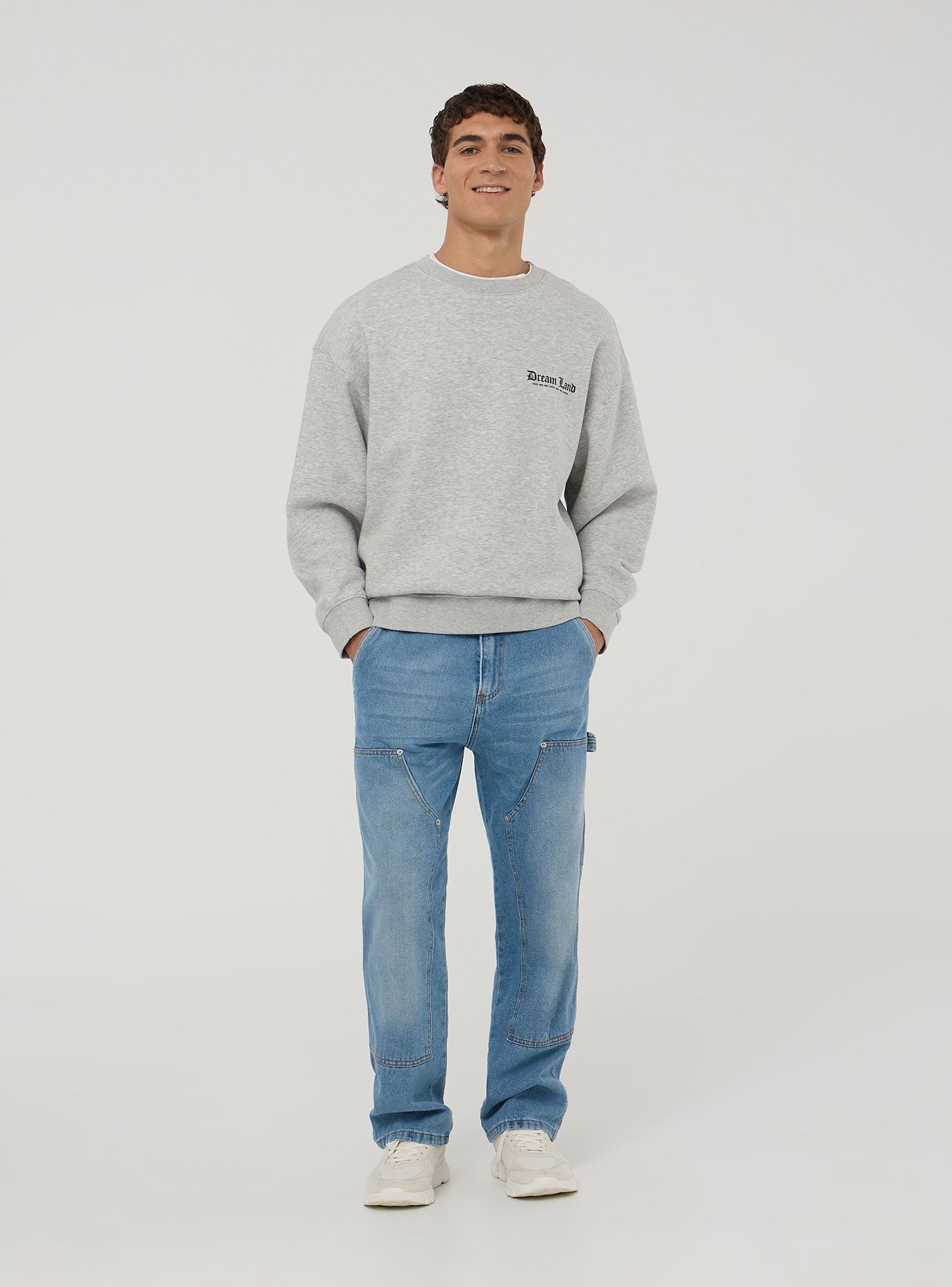 Felpa da uomo senza cappuccio, modello chiuso, in tessuto pesante. Presenta una stampa artistica sia sul davanti che sul retro, con dettagli grafici che rendono il capo unico e moderno. Il girocollo, i polsini e l'orlo a costine garantiscono una vestibilità comoda al capo. Ideale per occasioni casual, come uscite con gli amici, passeggiate in città o momenti di relax. Perfetta da abbinare a jeans o pantaloni sportivi per un look urban. Vestibilità oversize.