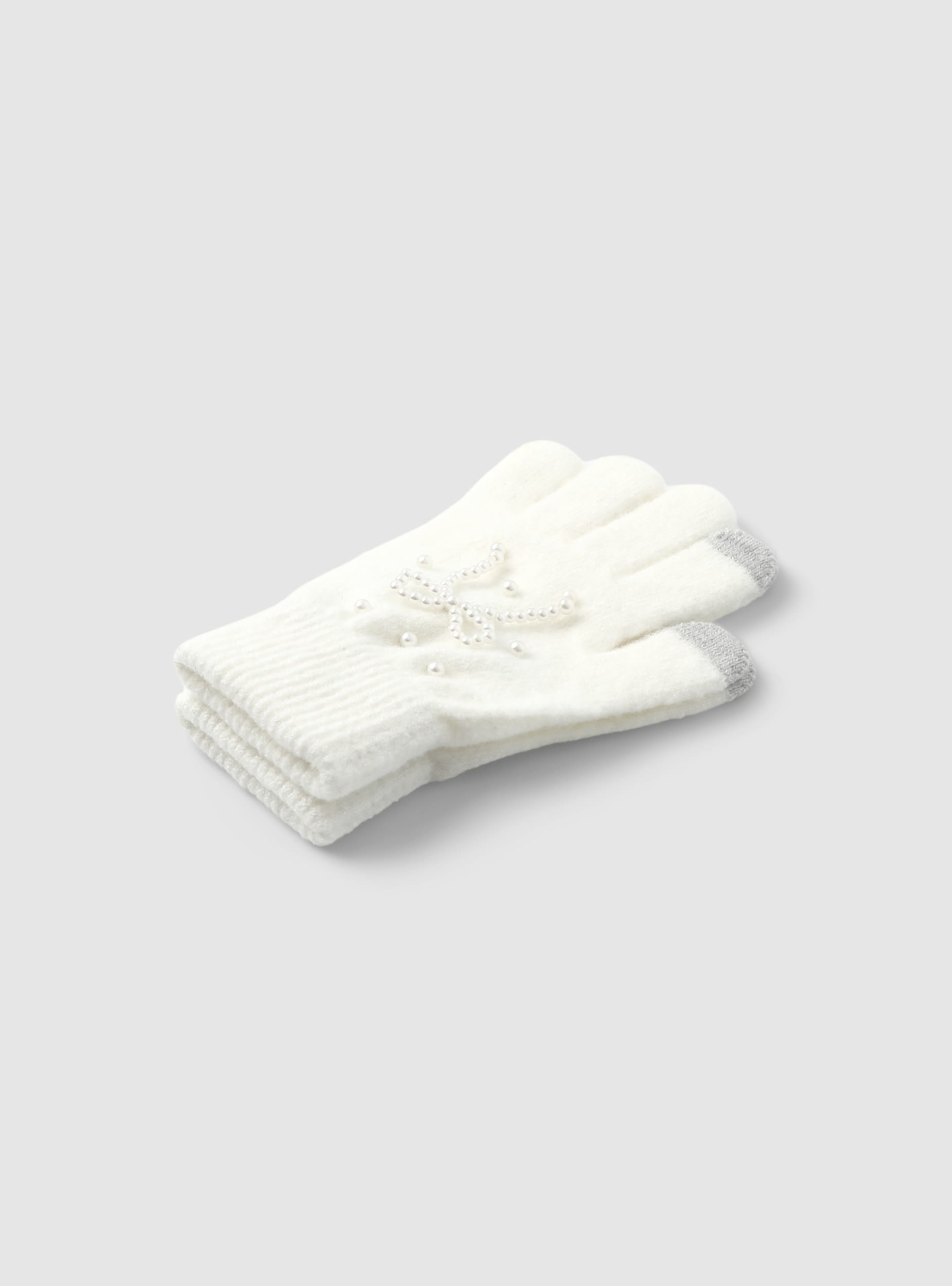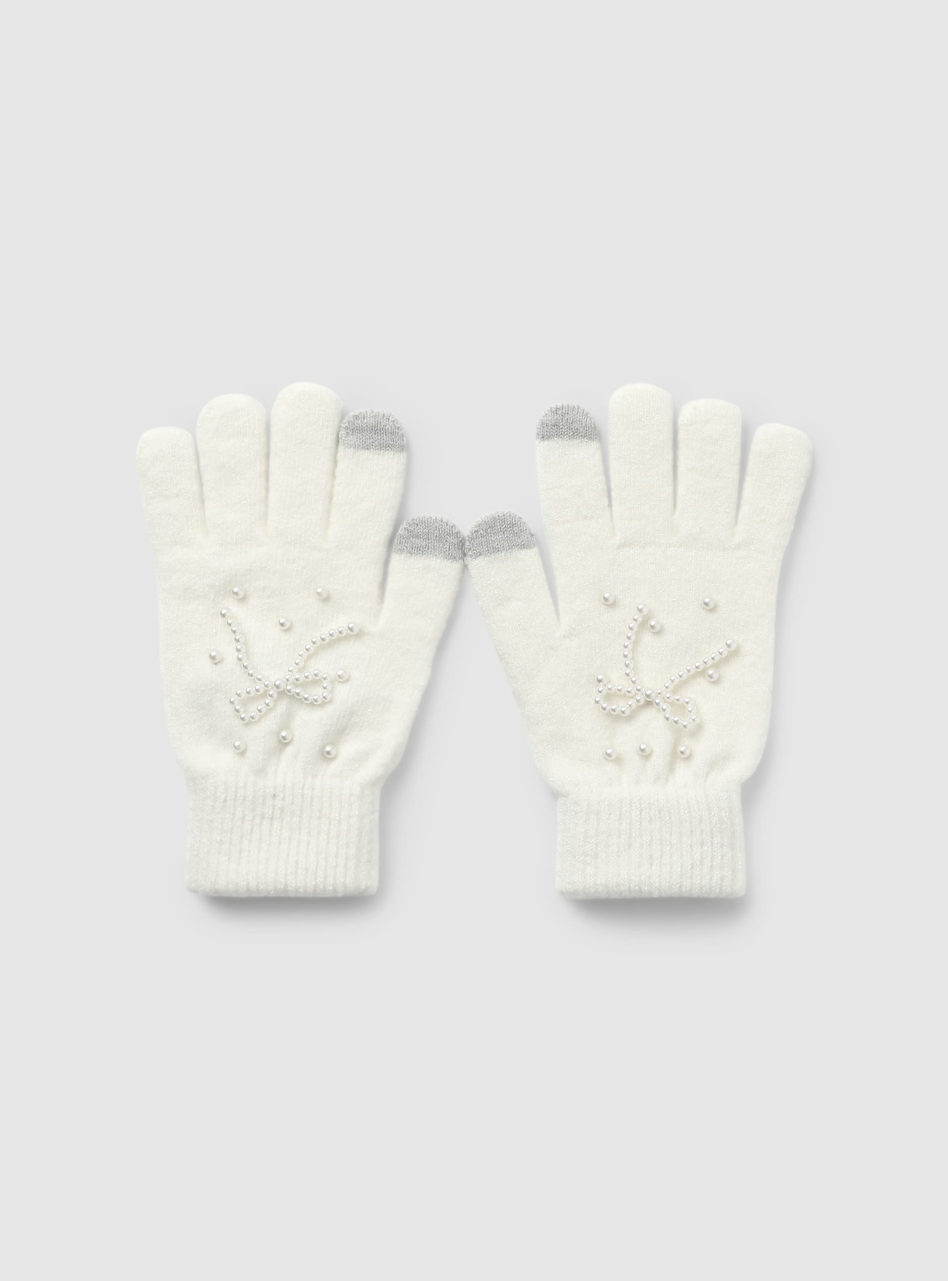 Guanti touchscreen da donna a cinque dita, ideali per completare outfit casual e per proteggere le mani dal freddo. Presentano una decorazione elegante con perline e un design tinta unita. Perfetti per l'uso quotidiano e per aggiungere un tocco di stile ai look invernali.
