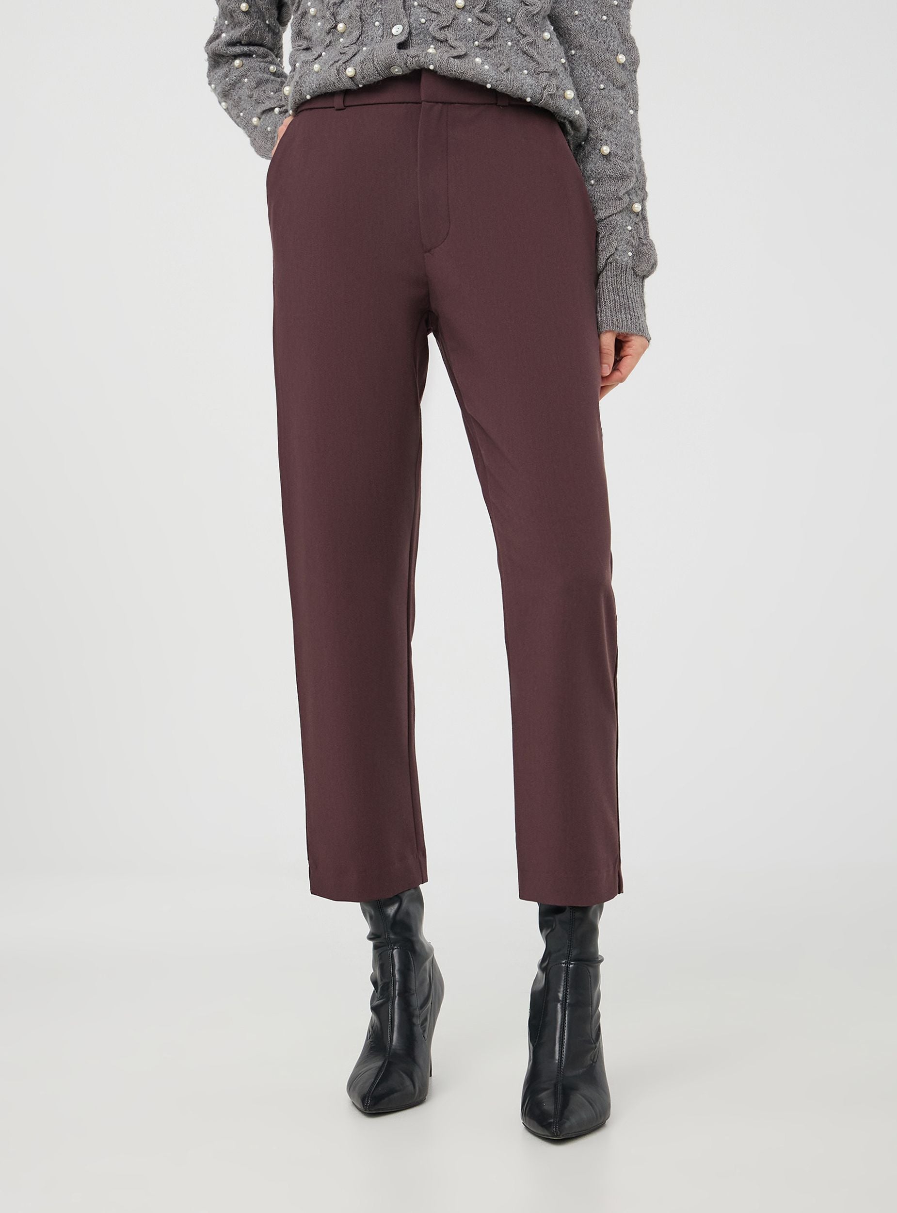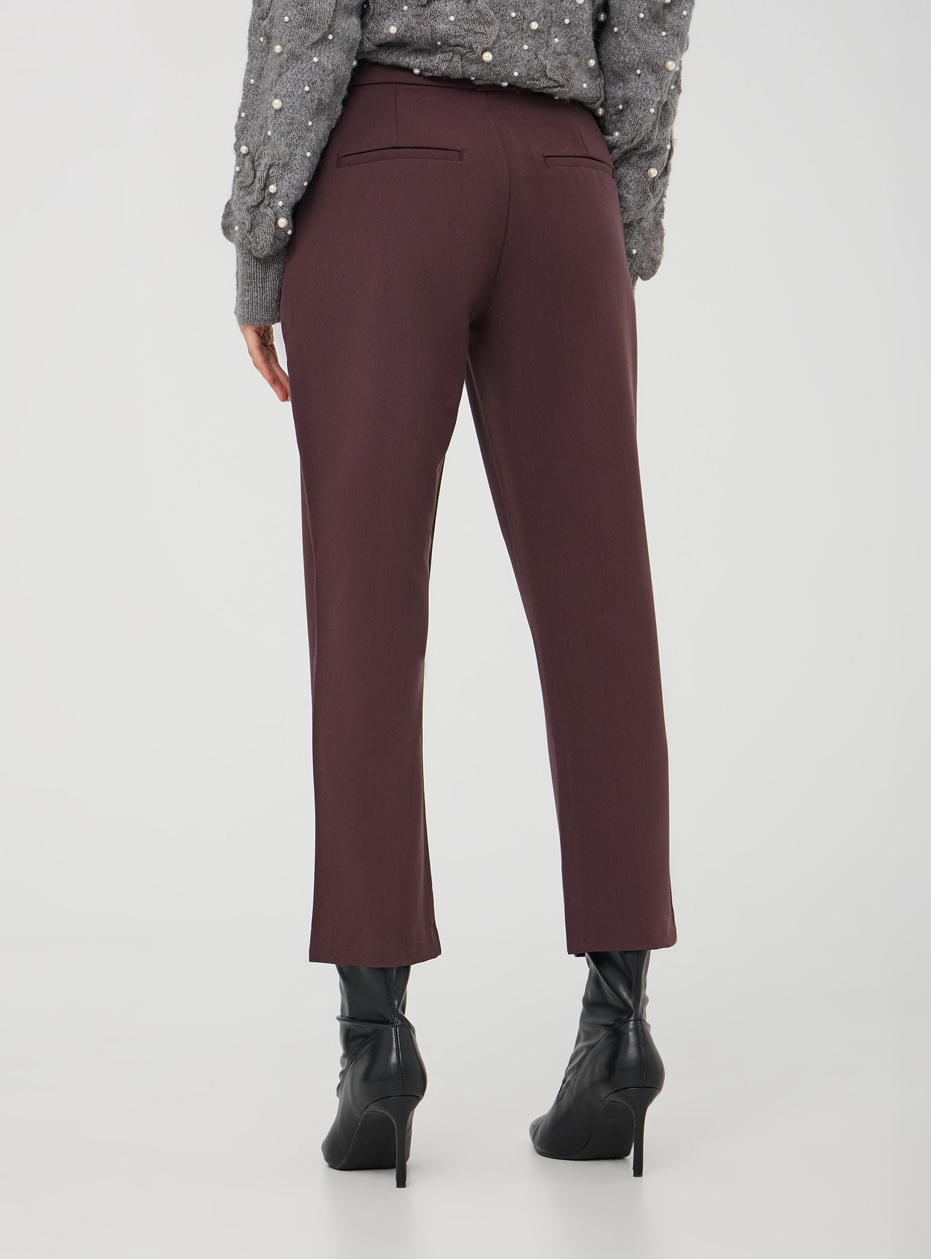 Pantaloni chino da donna con taglio dritto. Realizzati in tessuto poliviscosa a tinta unita. Dotati di passanti in vita e chiusura con zip, bottone e gancio nascosti. Presentano tasche alla francese laterali e finte tasche posteriori a filetto per un look raffinato con finiture eleganti. Ideali per un look professionale ed elegante, questi pantaloni sono perfetti per l'ufficio, riunioni di lavoro e eventi formali. La loro versatilità li rende adatti anche per occasioni casual chic, offrendo uno stile sofisticato e curato in ogni situazione. Abbinali a una giacca per un look ancora più sofisticato.Dettagli