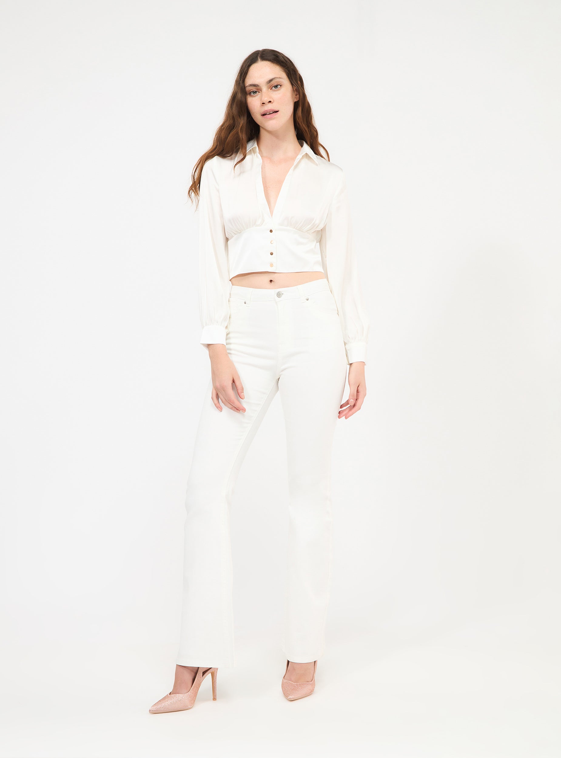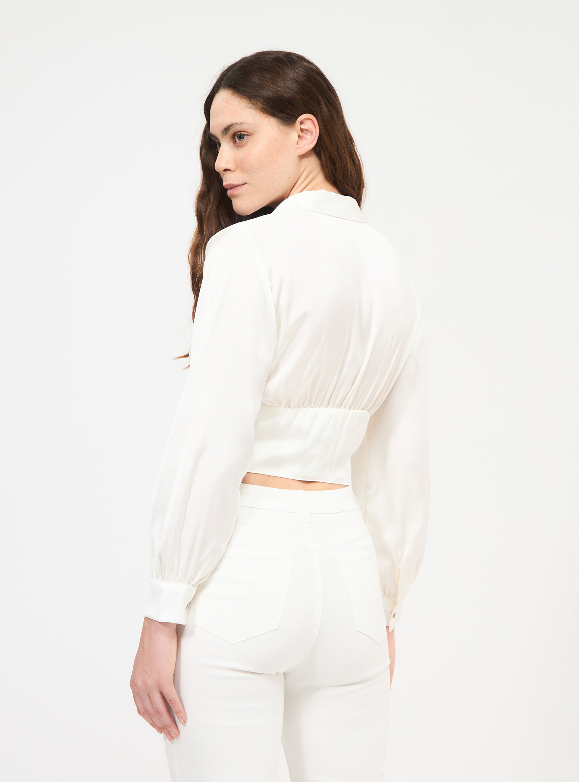Blusa da donna con corsetto, scollo a V. Tessuto tinta unita.
