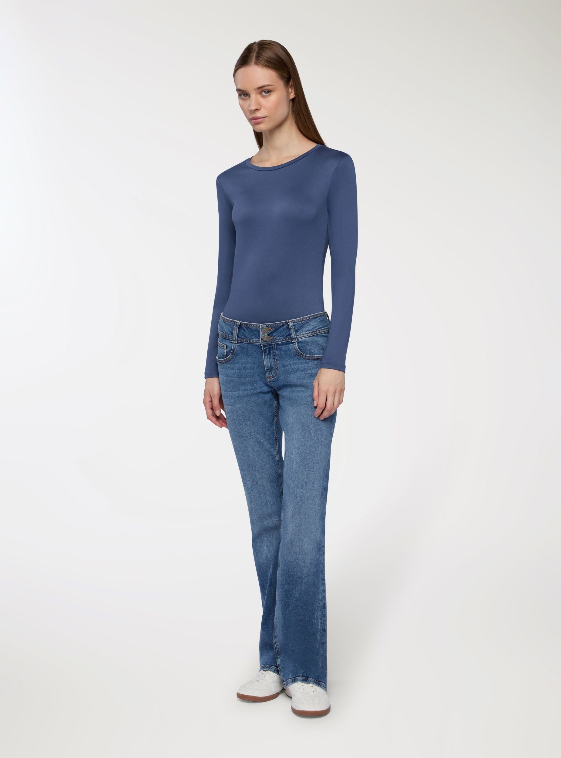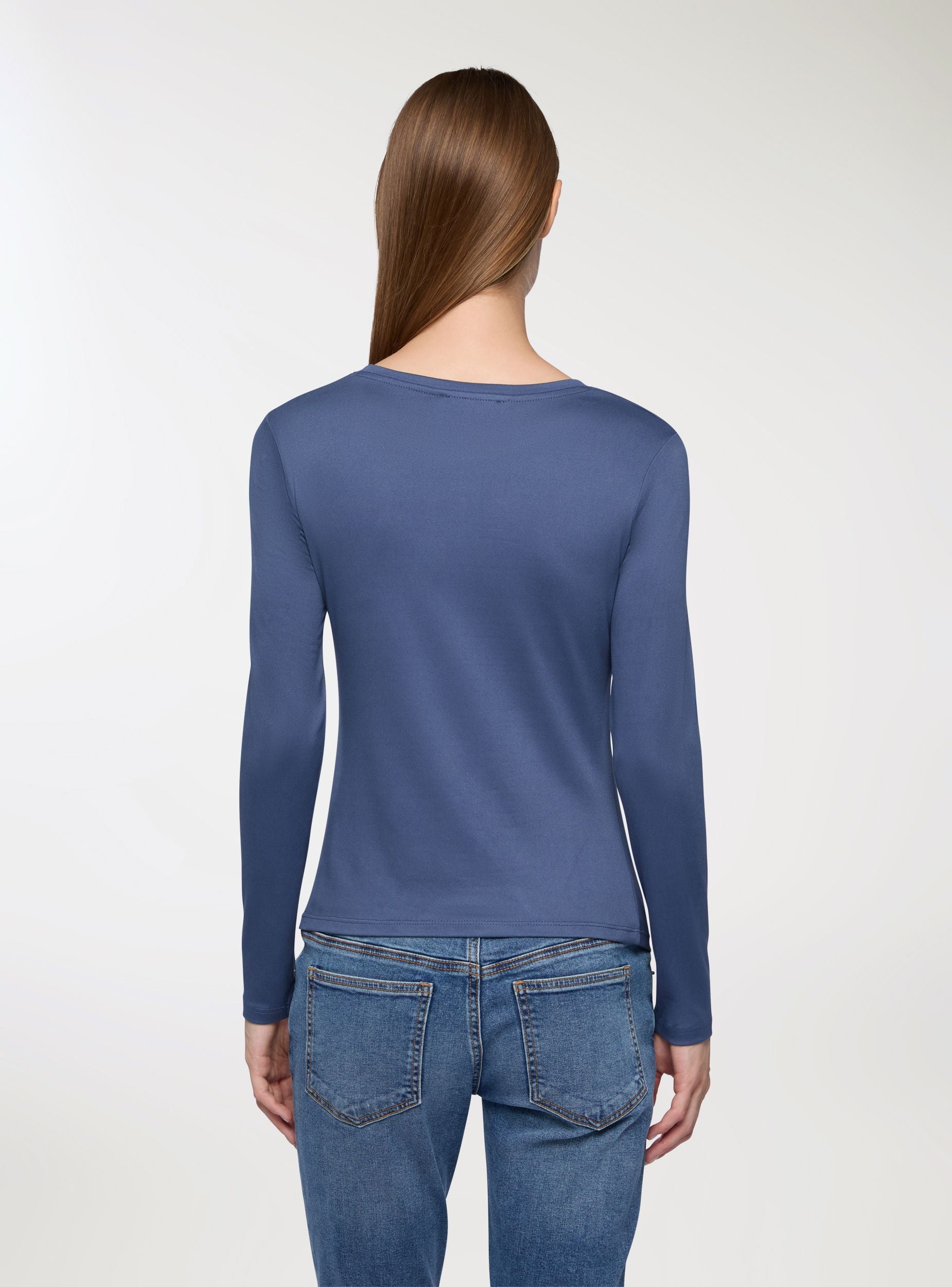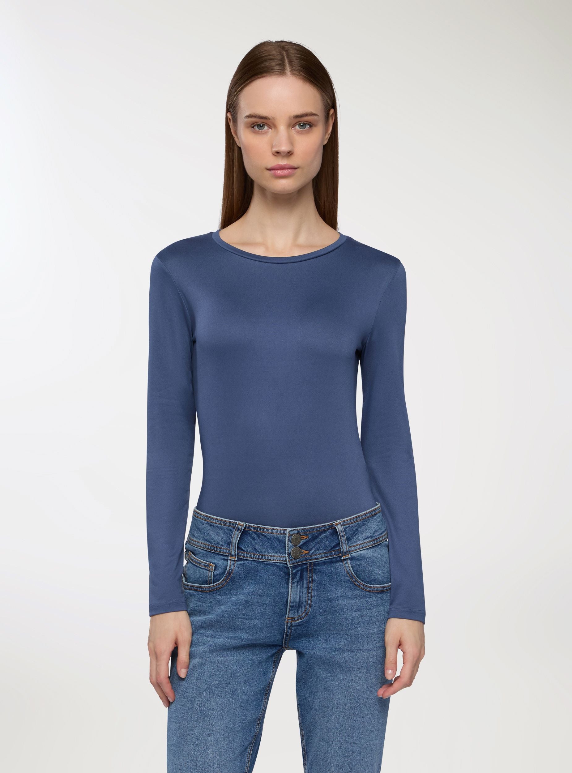 Tessuto extra caldo. Maglia basica da donna a maniche lunghe in tessuto elasticizzato. Perfetta per ogni stagione, questa maglia è un must-have del guardaroba. Caratterizzata da un design minimalista e tinta unita, è dotata di maniche lunghe e di un comodo girocollo. Il tessuto elasticizzato garantisce una vestibilità aderente e confortevole, seguendo con naturalezza le linee del corpo. Ideale da indossare da sola nei look casual oppure come strato sotto giacche, blazer o cardigan durante i mesi più freddi, si adatta con facilità a ogni occasione, dall’ufficio al tempo libero. Un capo versatile che unisce semplicità e praticità per uno stile sempre curato.