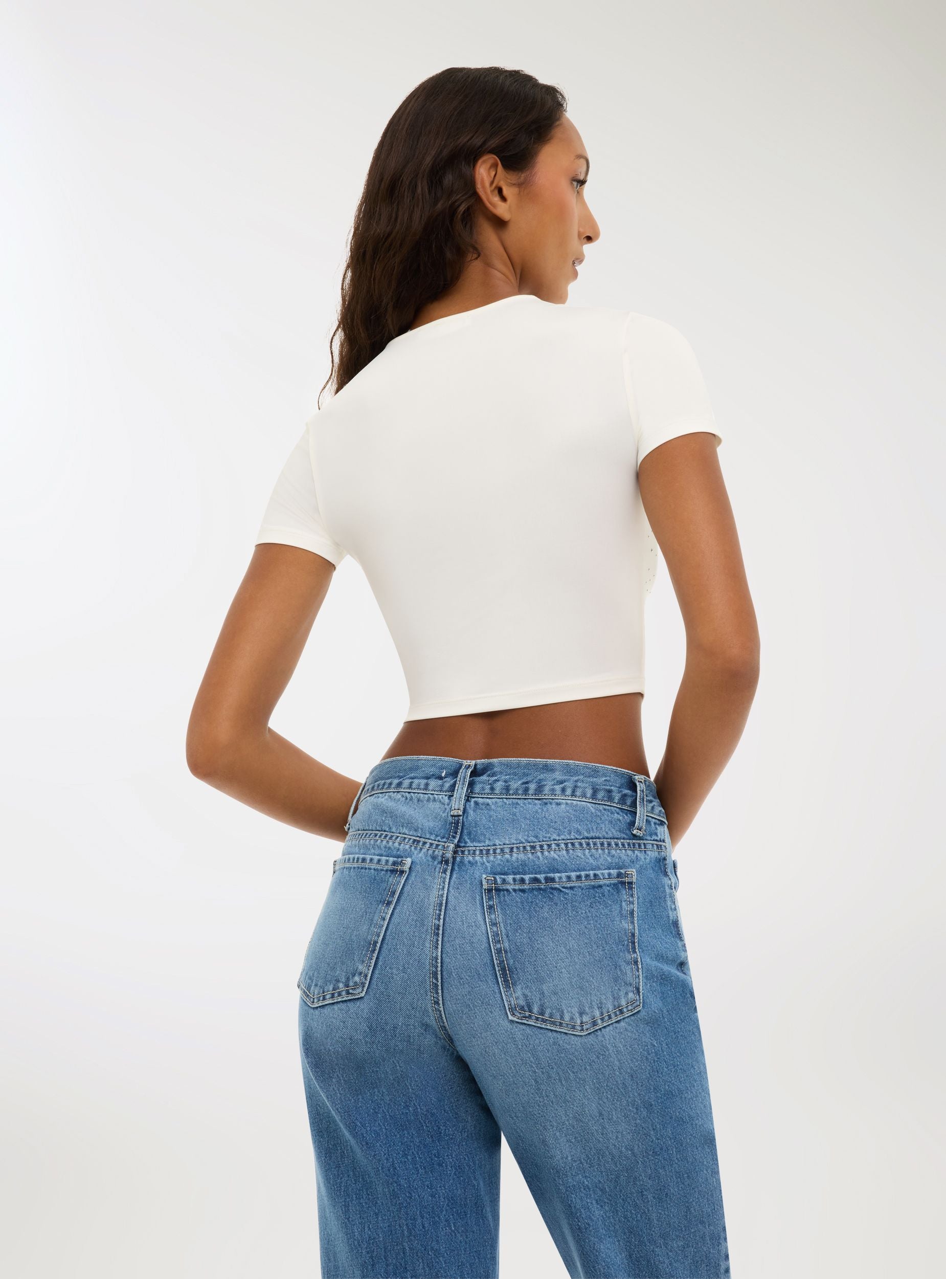 T-shirt crop con strass
