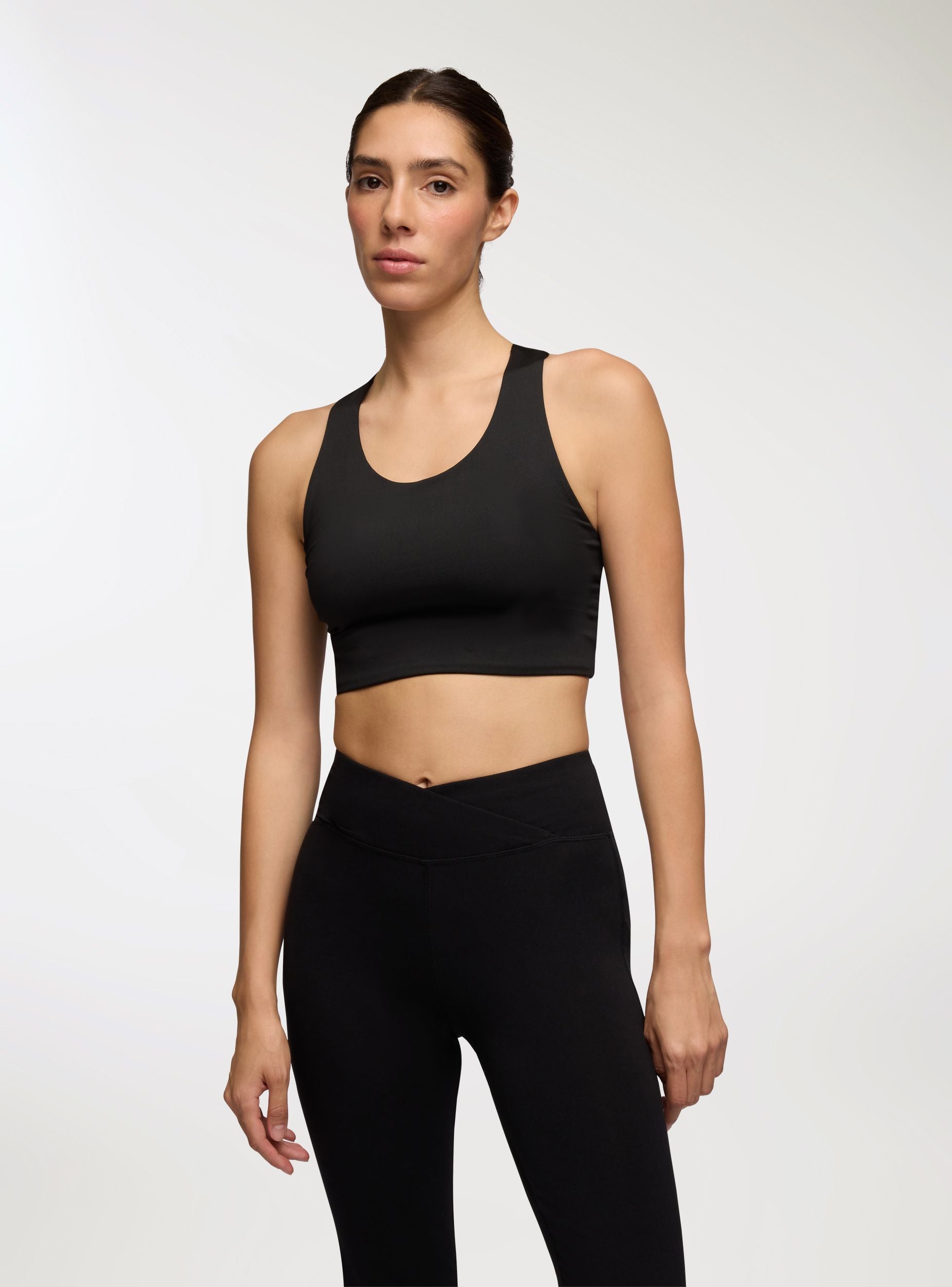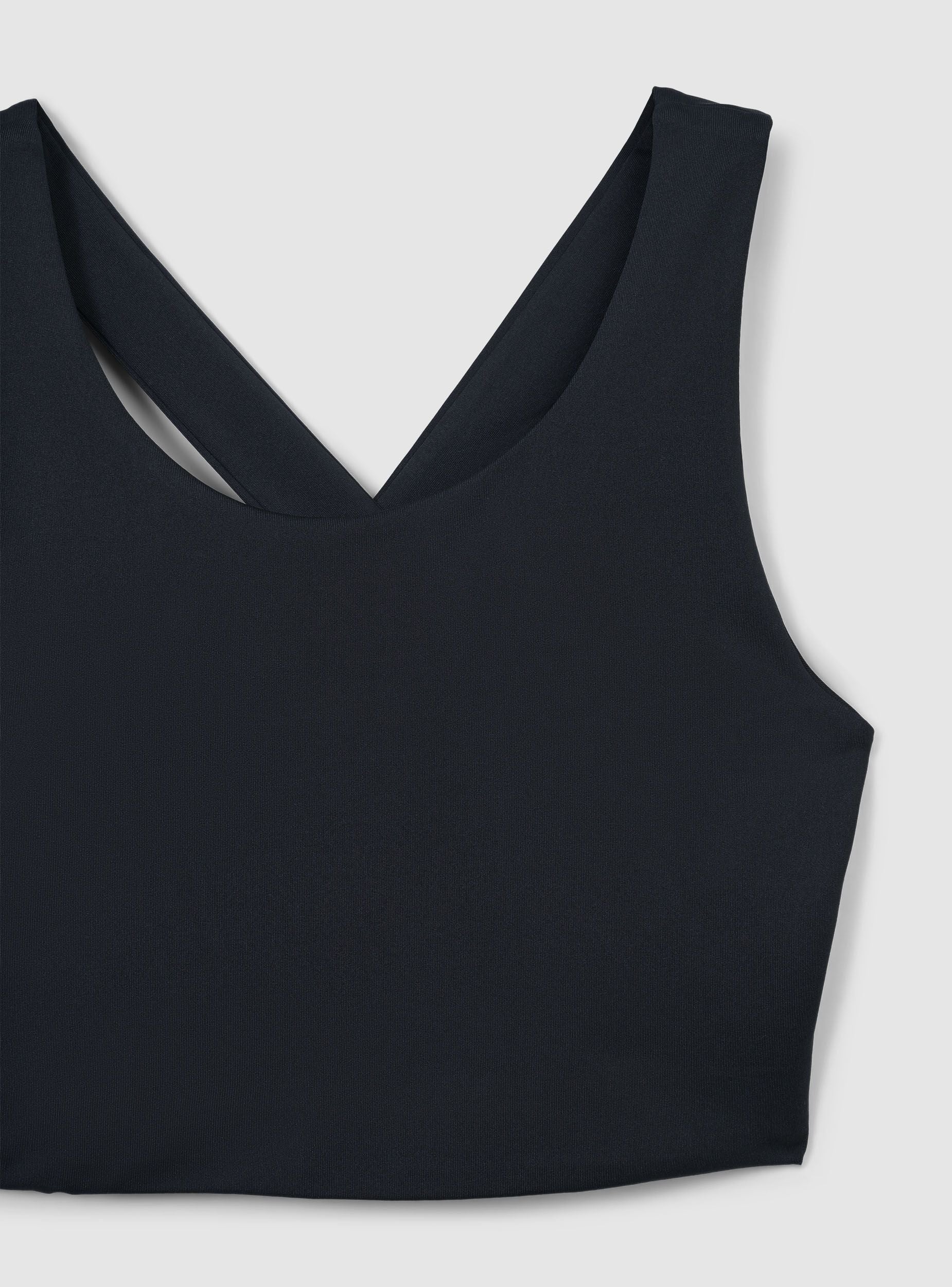 Top da donna ideale per attività sportive. Design con incrocio sulla schiena per un tocco moderno e funzionale. Vestibilità aderente che garantisce comfort e libertà di movimento. Perfetto per abbinamenti con leggings o pantaloncini per un look dinamico e pratico. Adatto per allenamenti, yoga o passeggiate. Linea Active.