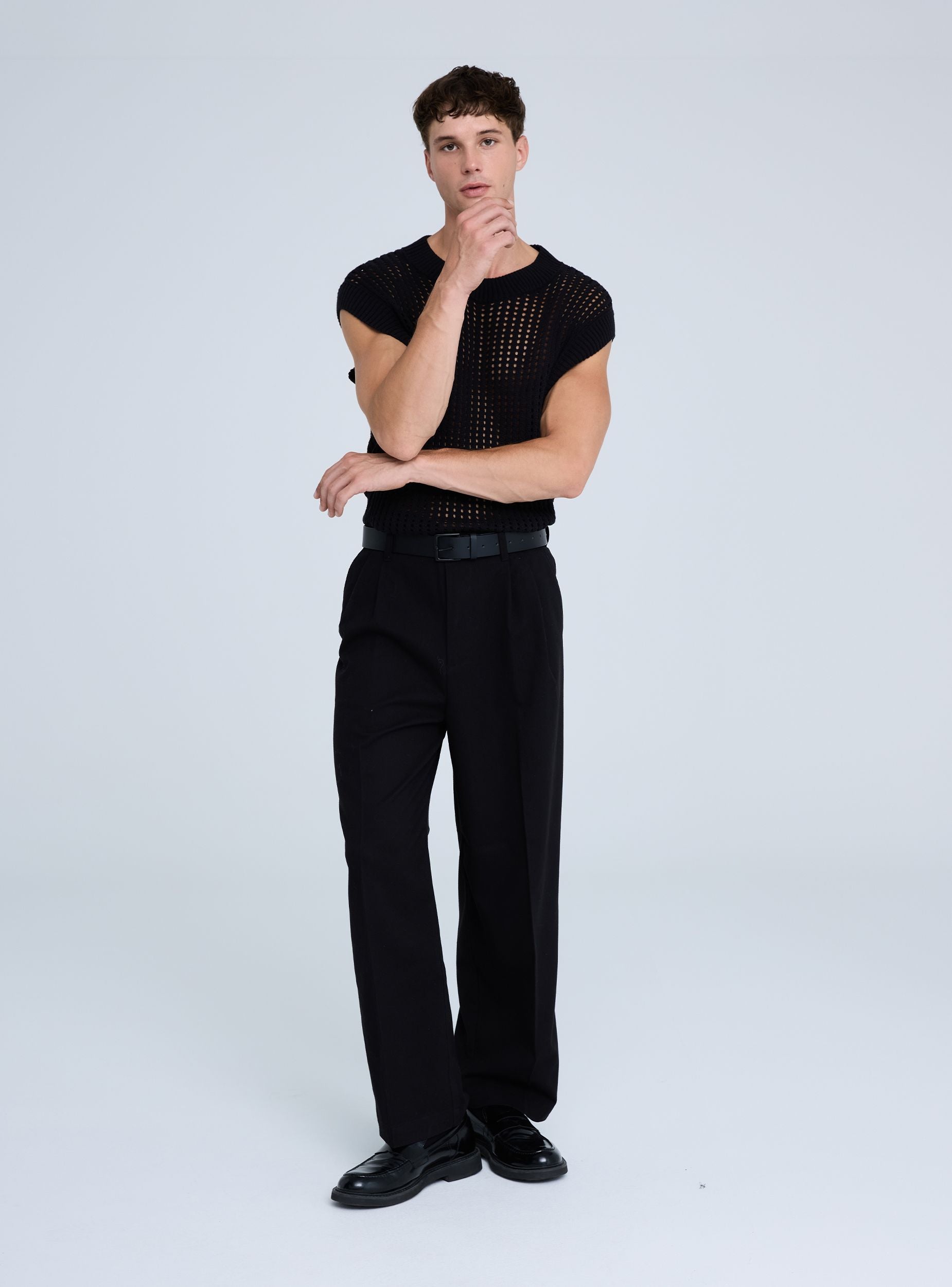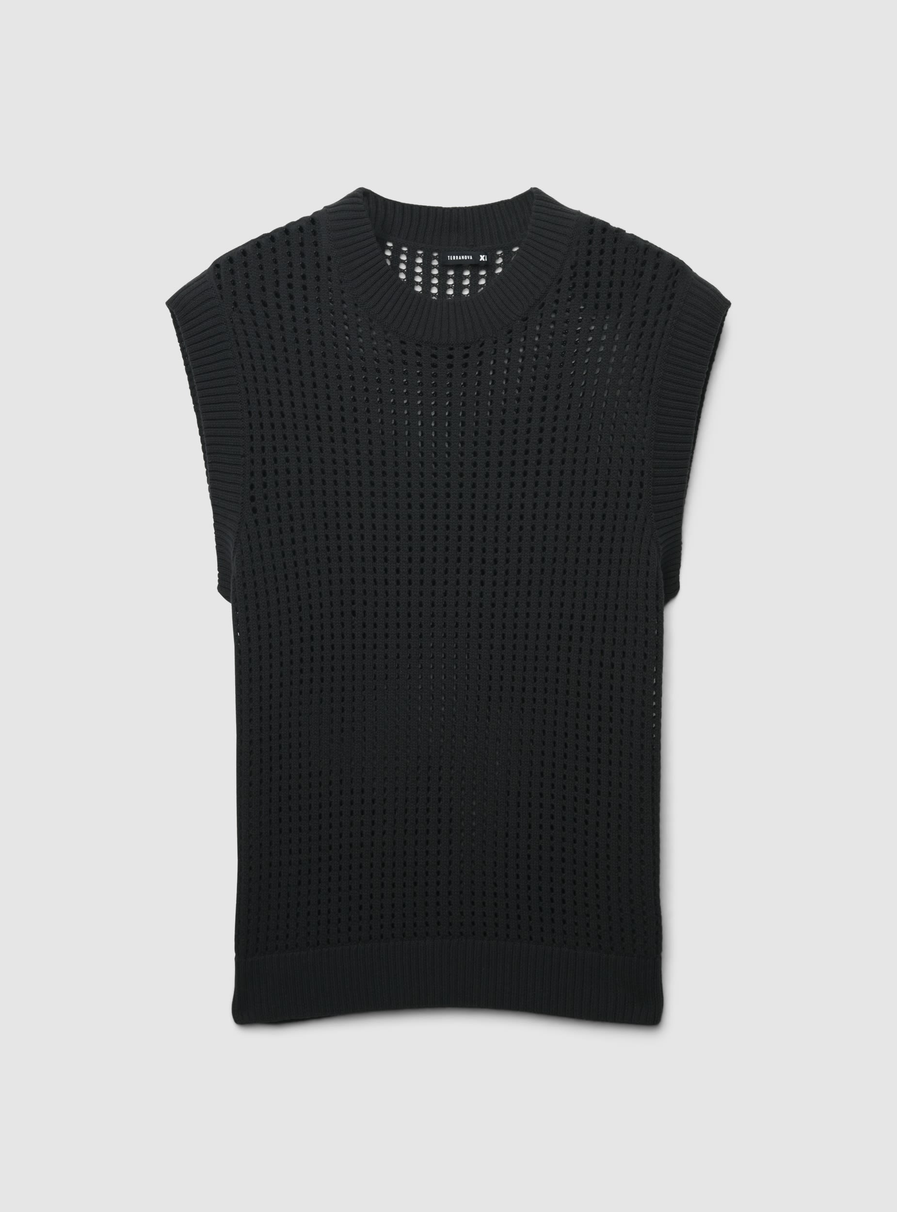 Gilet da uomo dal design traforato, ideale per look a strati nelle mezze stagioni. Collo rotondo a coste e bordi rifiniti a coste per maggiore struttura. Vestibilità regular e trama traforata che aggiunge carattere. Perfetta sopra una camicia o una maglietta per outfit casual o urban, facile da abbinare a jeans o pantaloni chino.
