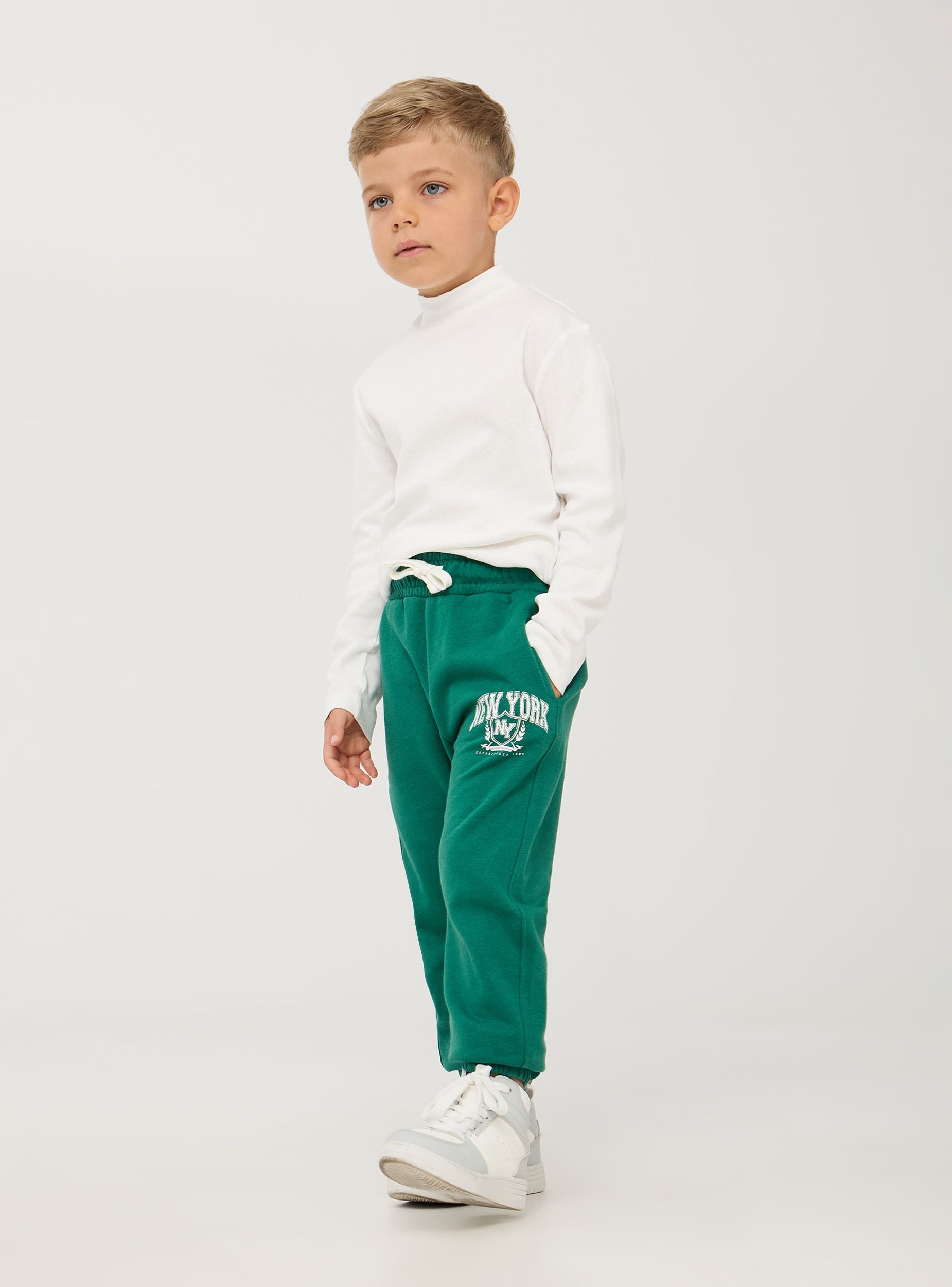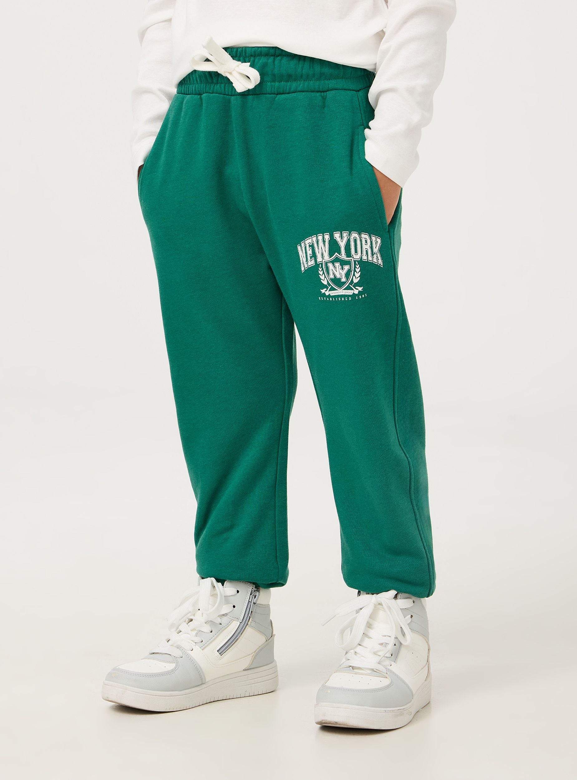 Confezione composta da 3 pantaloni della tuta leggeri da bimbo. Pantaloni a tinta unita con stampa "New York". Dotati di pratica coulisse in vita per una vestibilità regolabile e tasche laterali funzionali, presentano polsini elasticizzati alle caviglie per un comfort ottimale. Lo stile casual li rende ideali per attività sportive, giornate rilassate o momenti di svago.