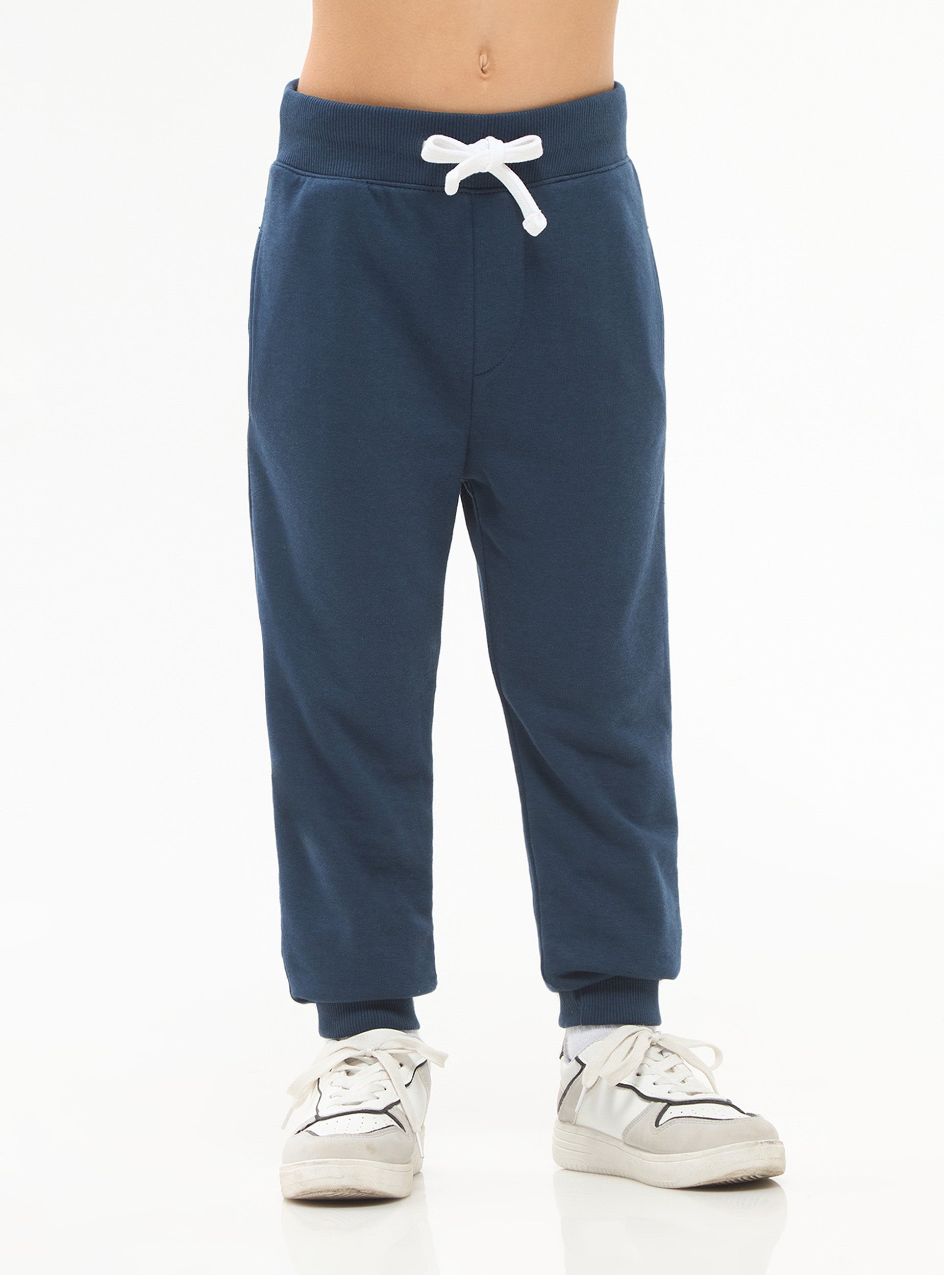 Pantaloni tuta da bambino, modello basic con coulisse in vita. Tessuto leggero a tinta unita.Dettagli
