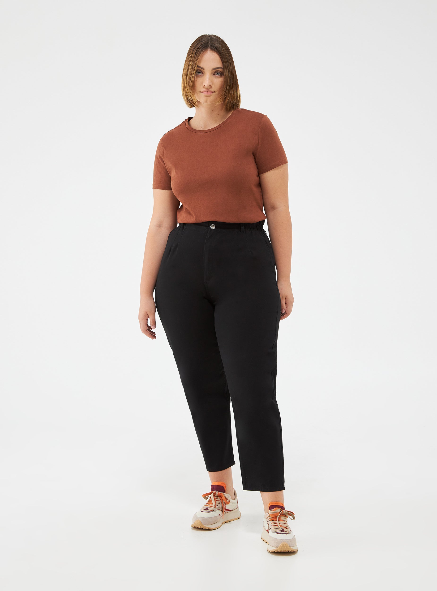 T-shirt da donna, modello girocollo con maniche corte. Realizzata in tessuto jersey. Vestibilità regular. Linea curvy.Dettagli