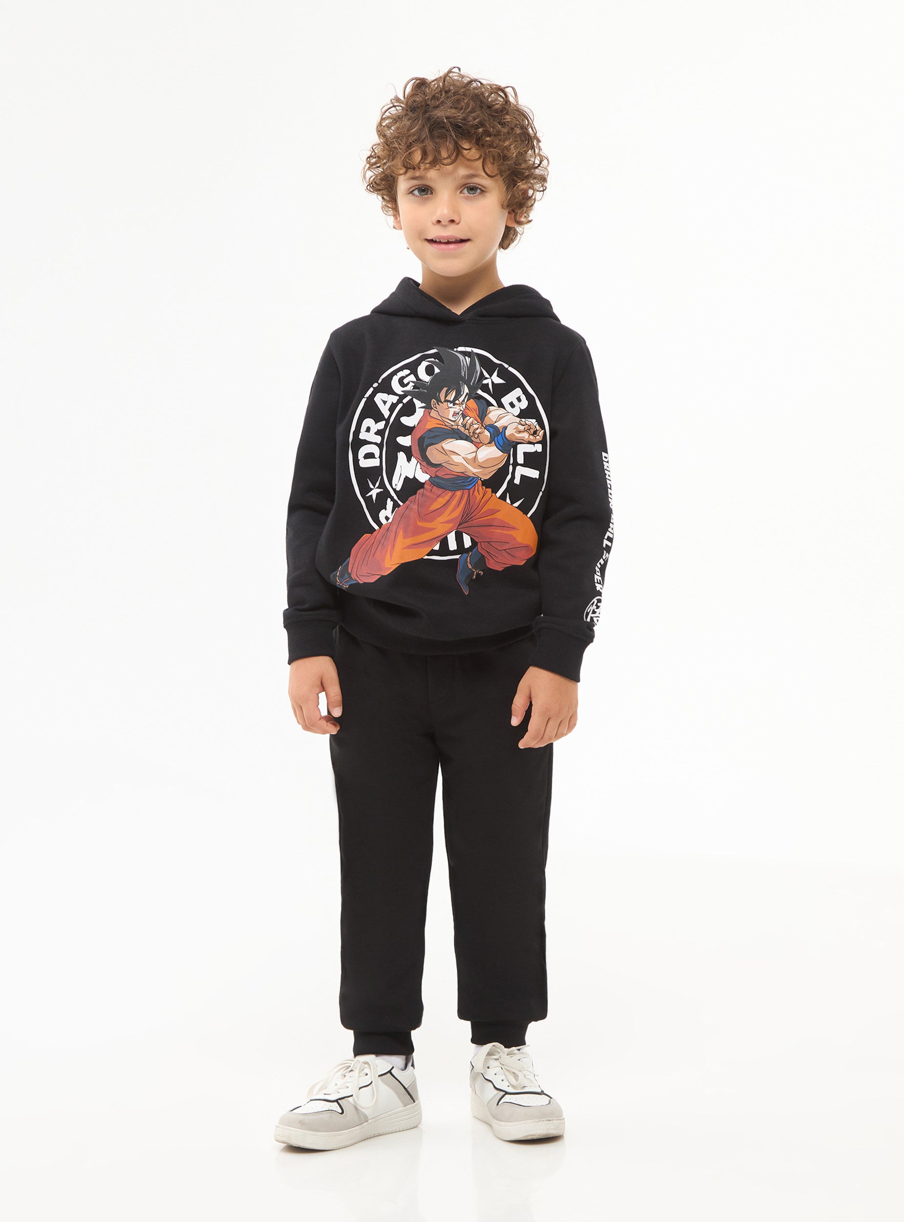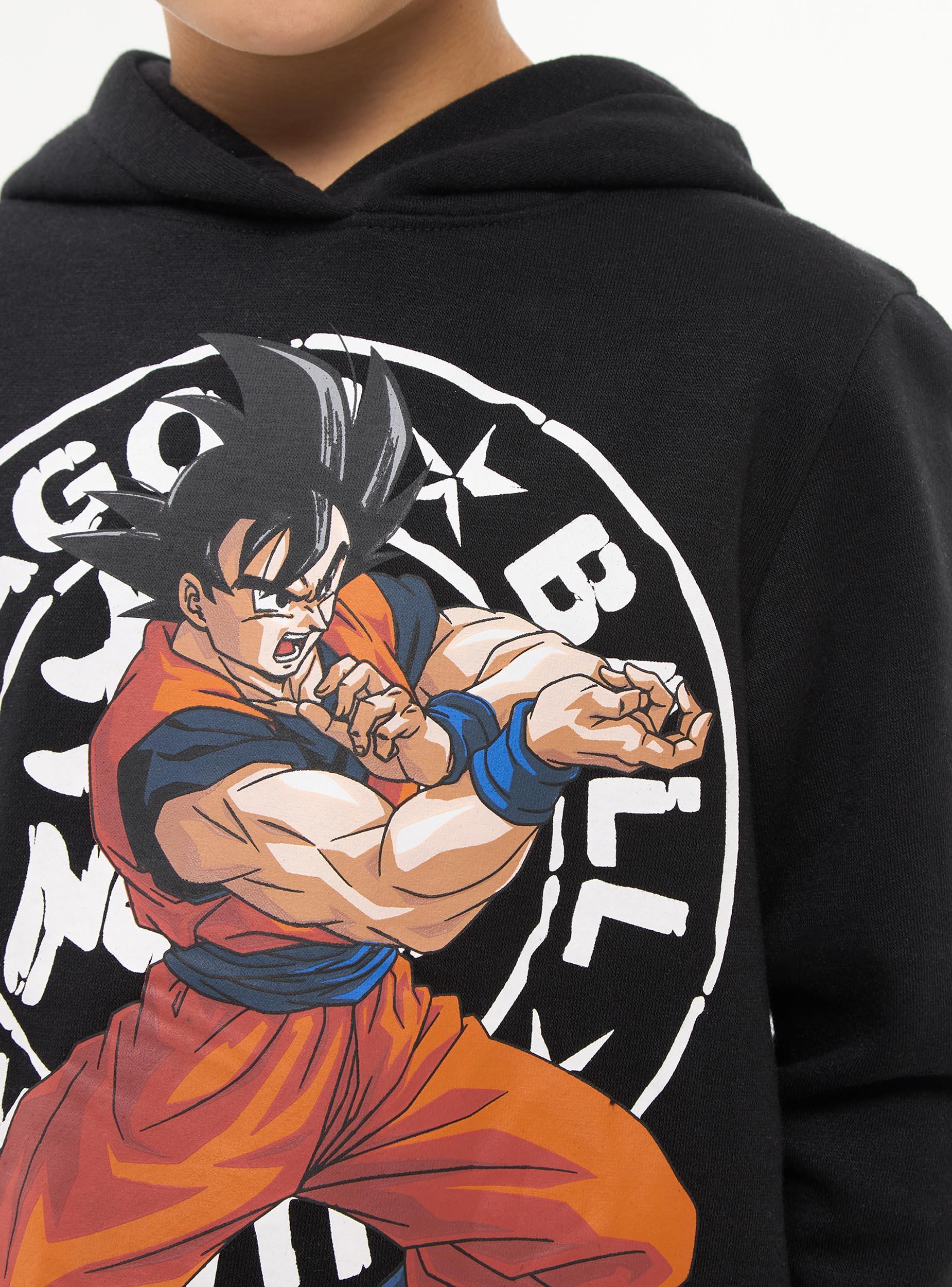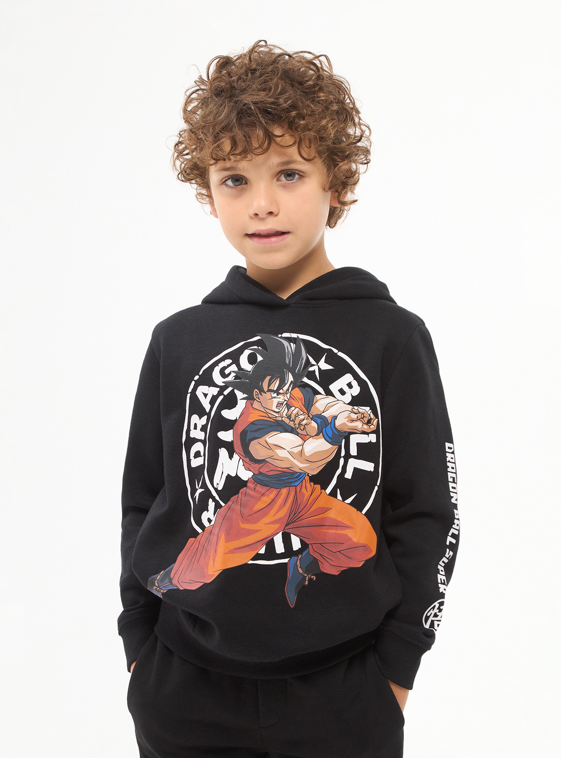 Felpa da bambino con cappuccio e stampa Dragon Ball. Tessuto pesante. Il modello è alto 1,24 e indossa la taglia 6-7 anni.