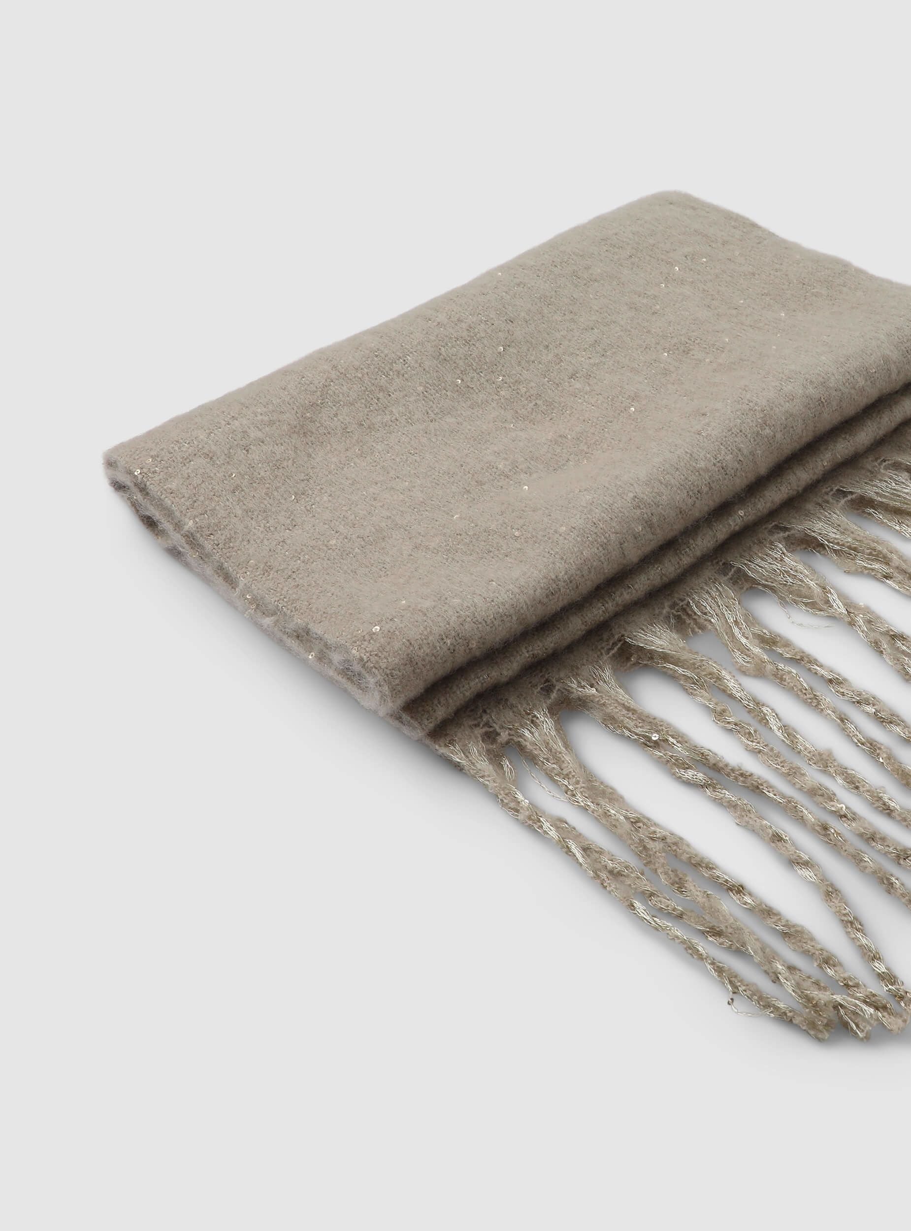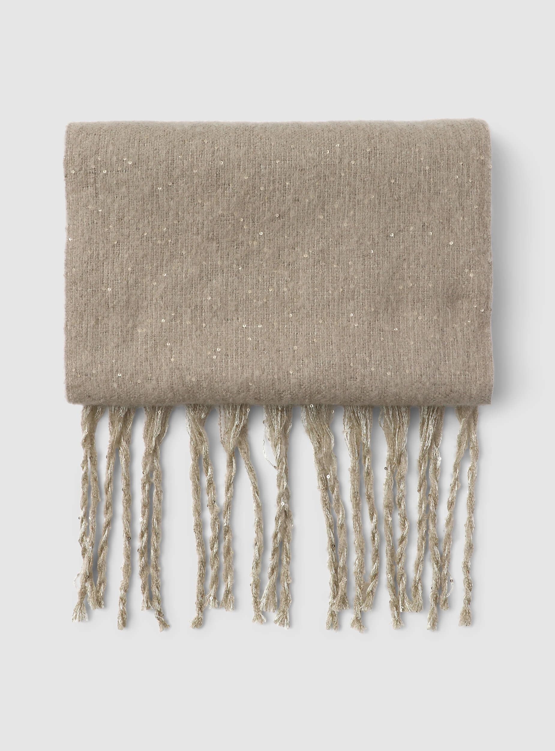 Sciarpone da donna perfetto per aggiungere un tocco di luce ai tuoi outfit quotidiani. Il design semplice e versatile si adatta facilmente sia a look eleganti che informali. Le frange alle estremità donano movimento e carattere, mentre l'effetto luccicante la rende ideale per valorizzare ogni occasione, dall'ufficio al tempo libero.Dettagli