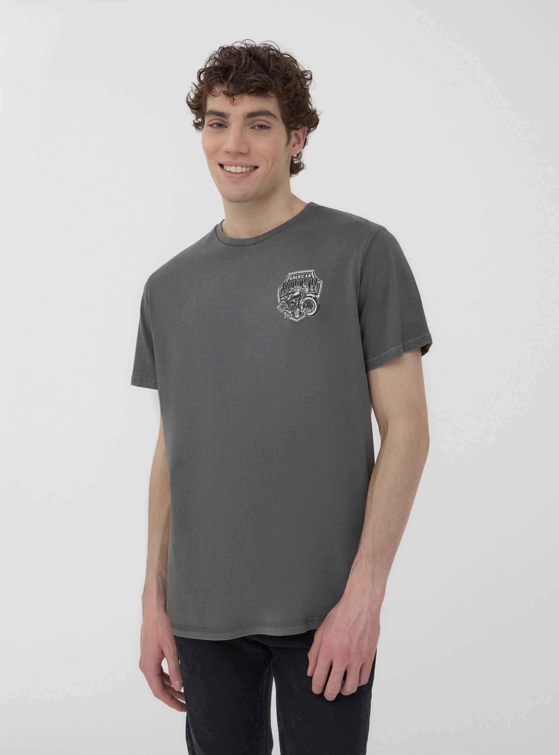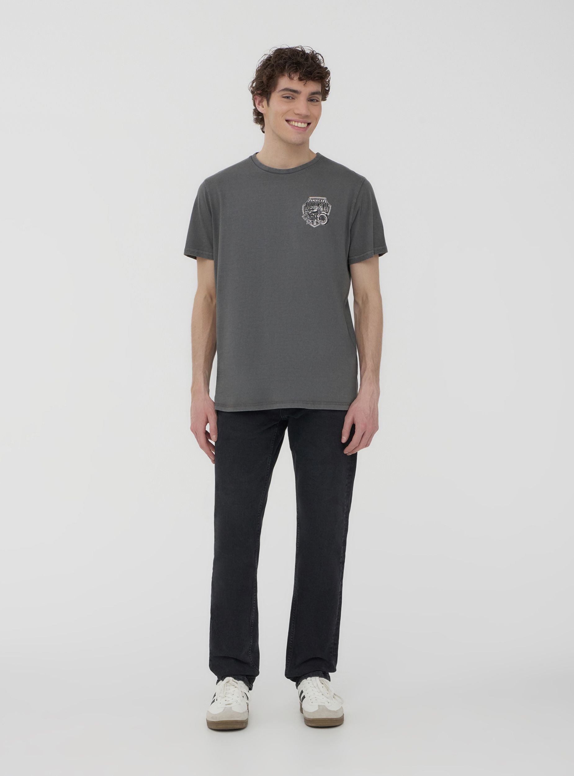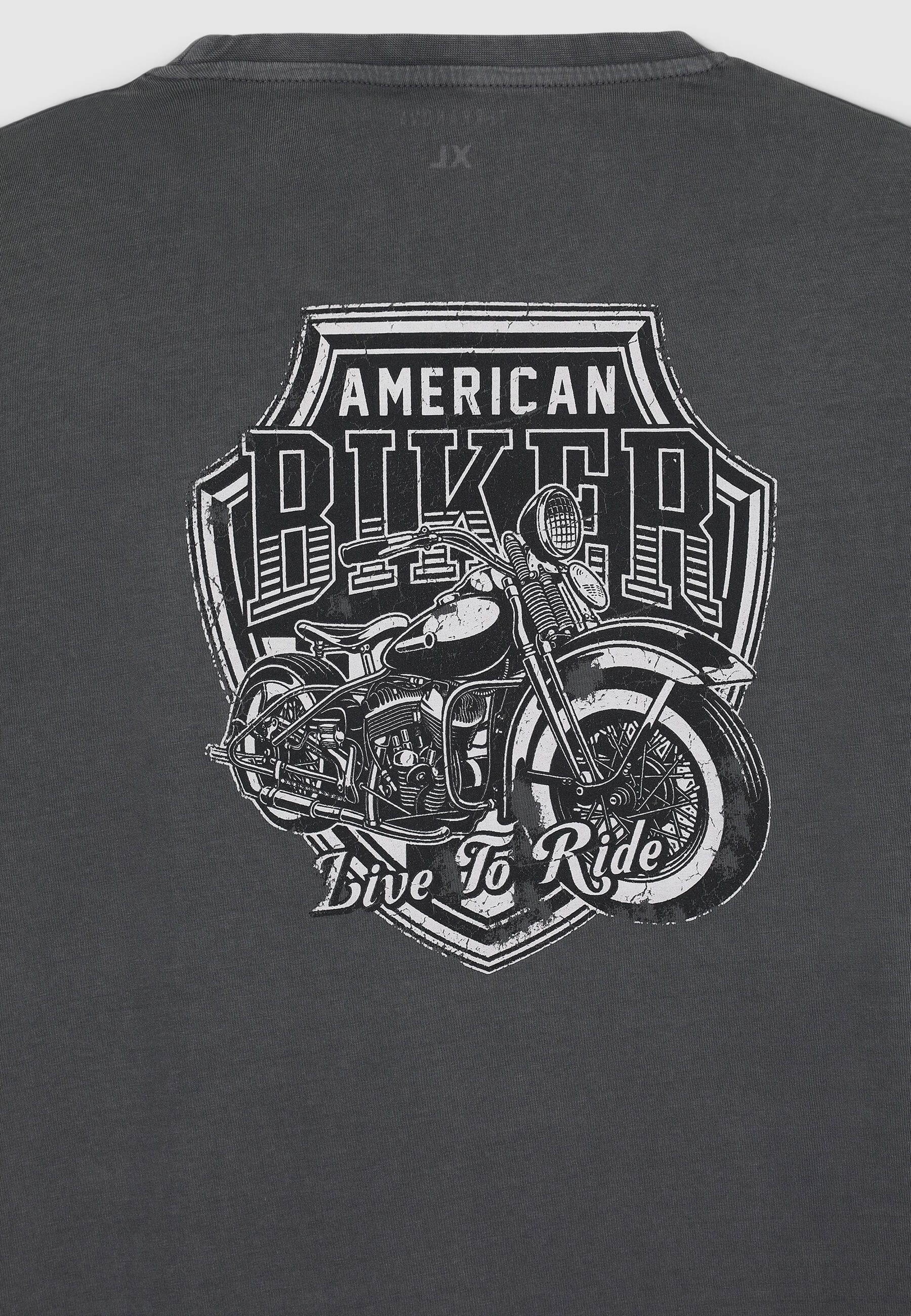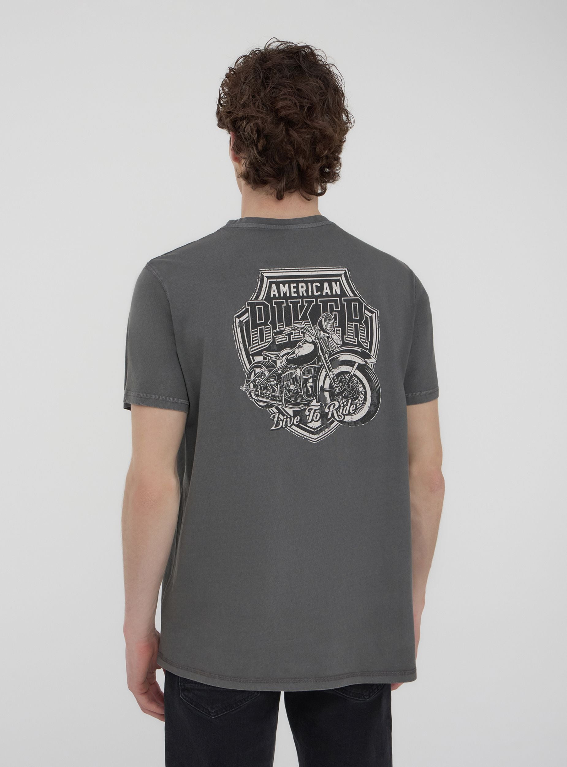 Maglietta da uomo con maniche corte e girocollo, dal look deciso grazie al trattamento acid-wash che dona un effetto vissuto. La stampa biker con scudo e motore è discreta sul davanti e d'impatto sul retro, perfetta per chi ama lo stile urban con un richiamo al mondo delle due ruote. Ideale con jeans e giacca in pelle per un outfit grintoso, adatta al tempo libero e agli appassionati di motociclismo.Dettagli