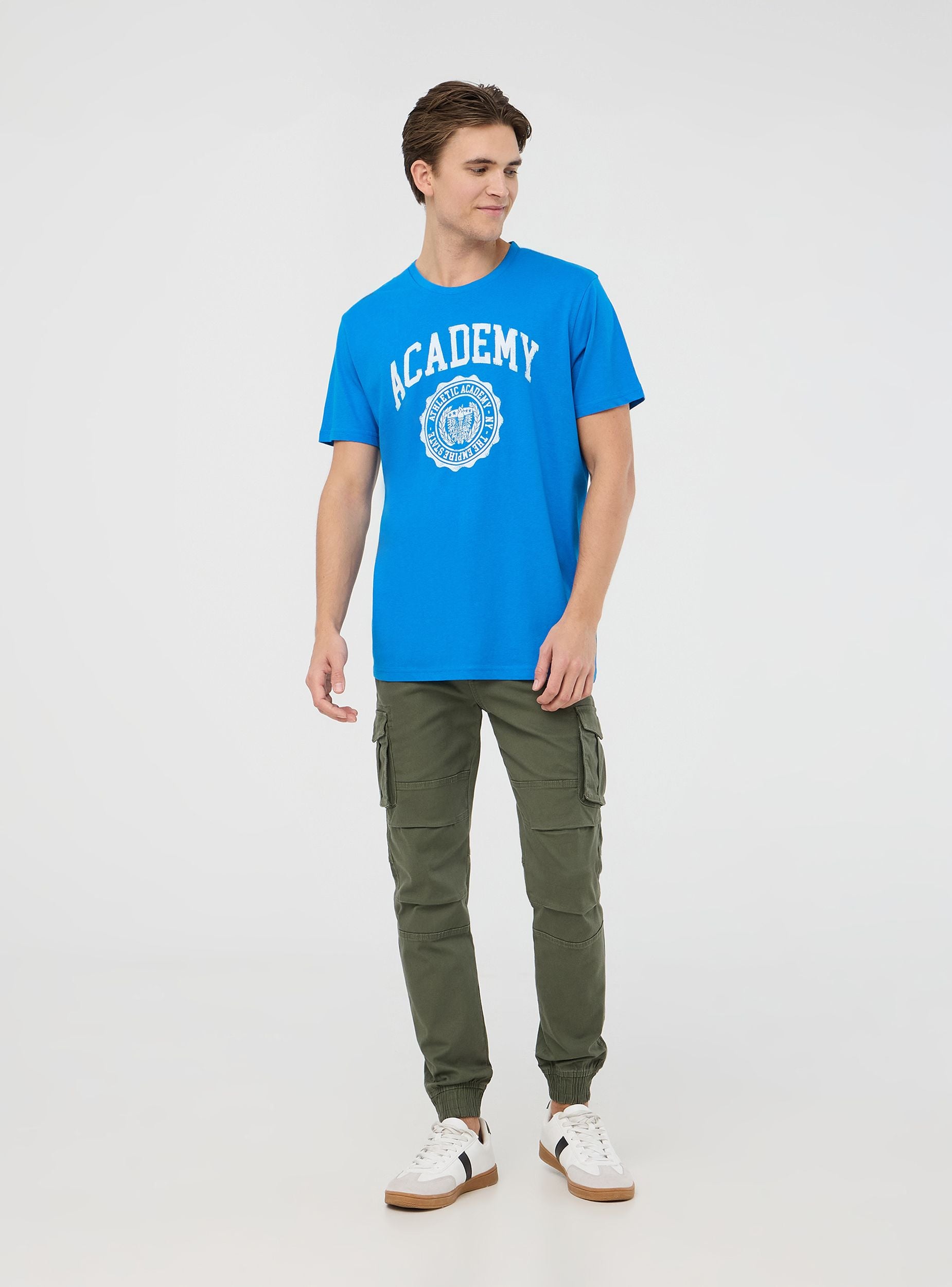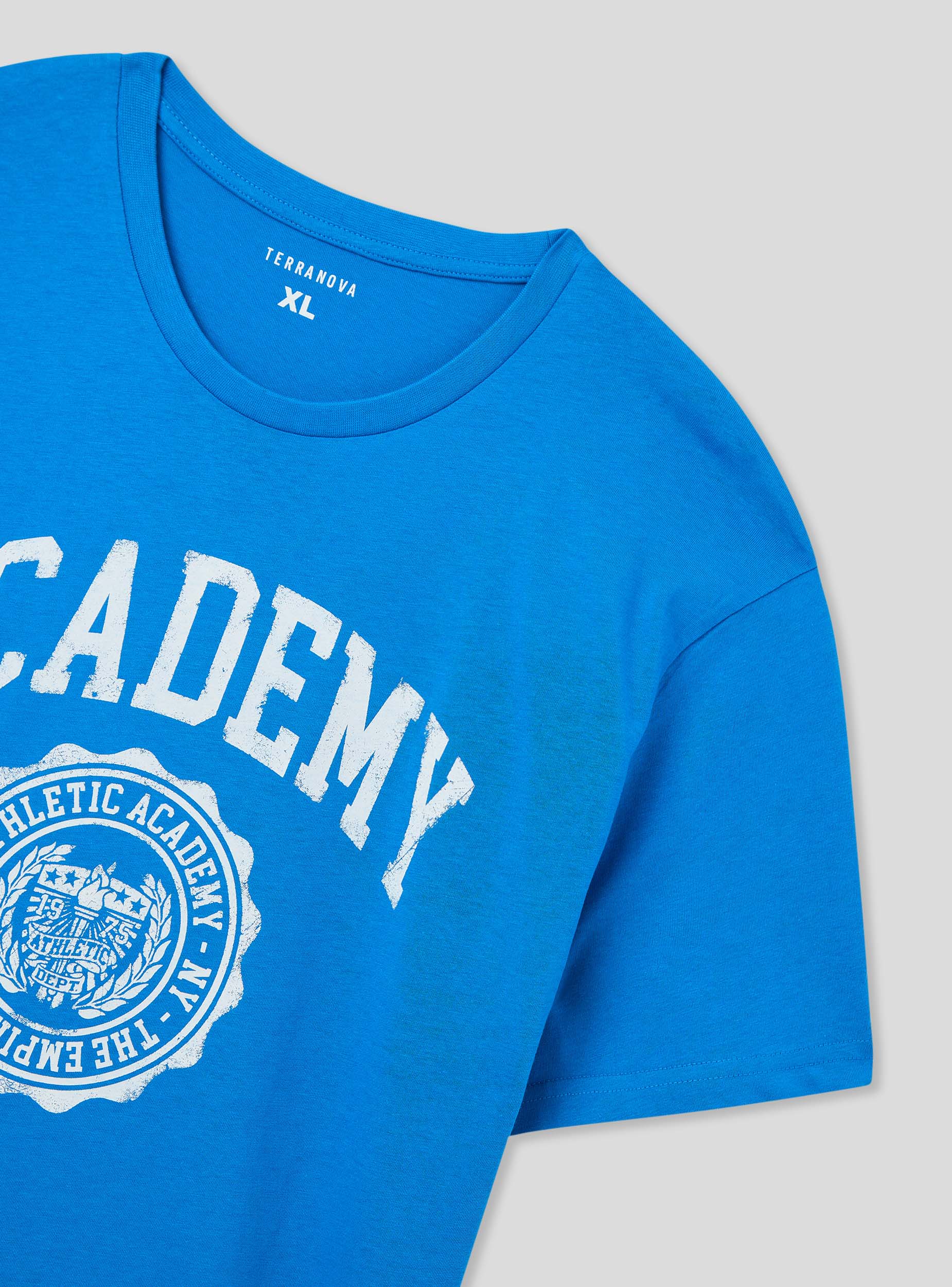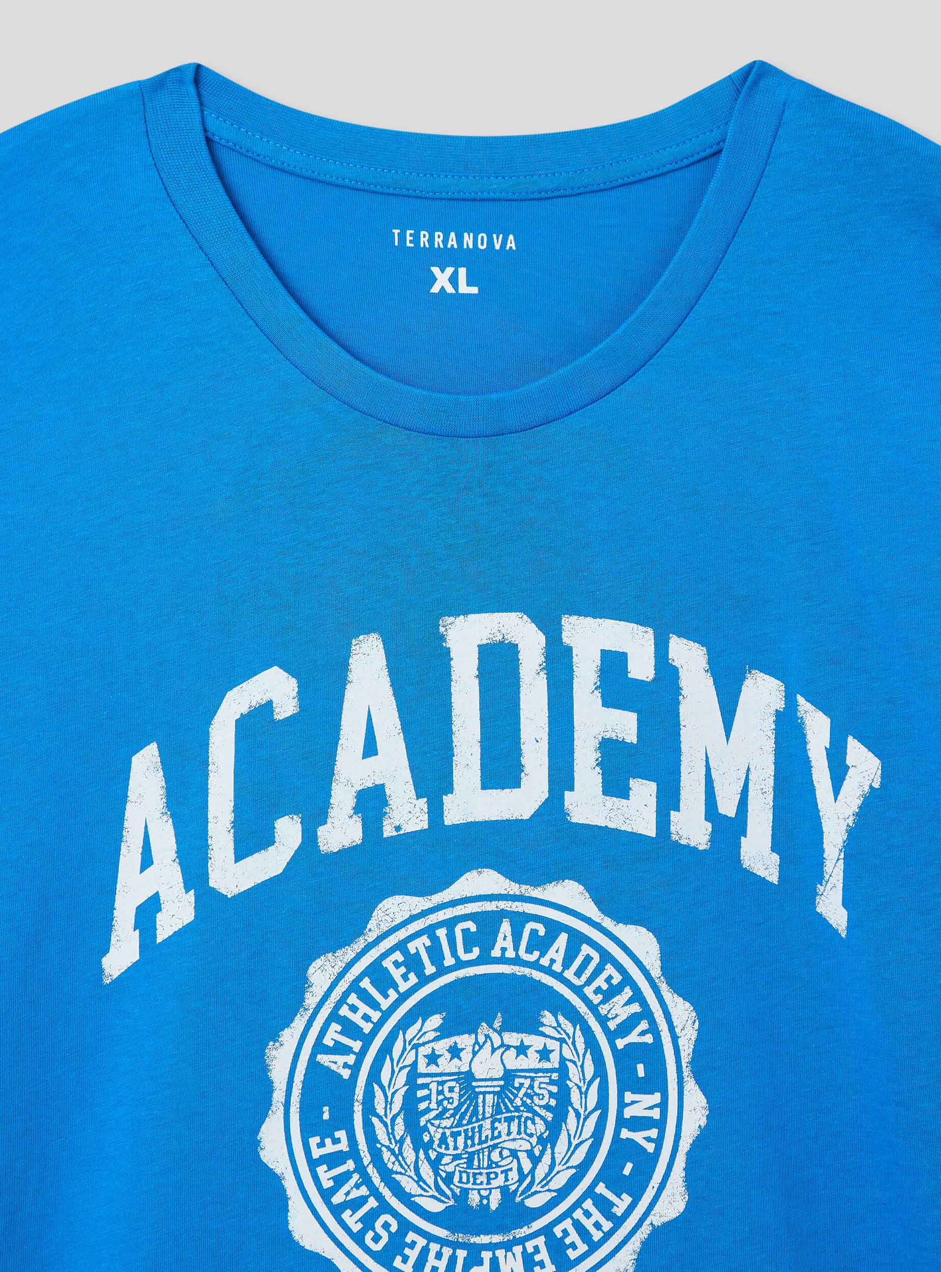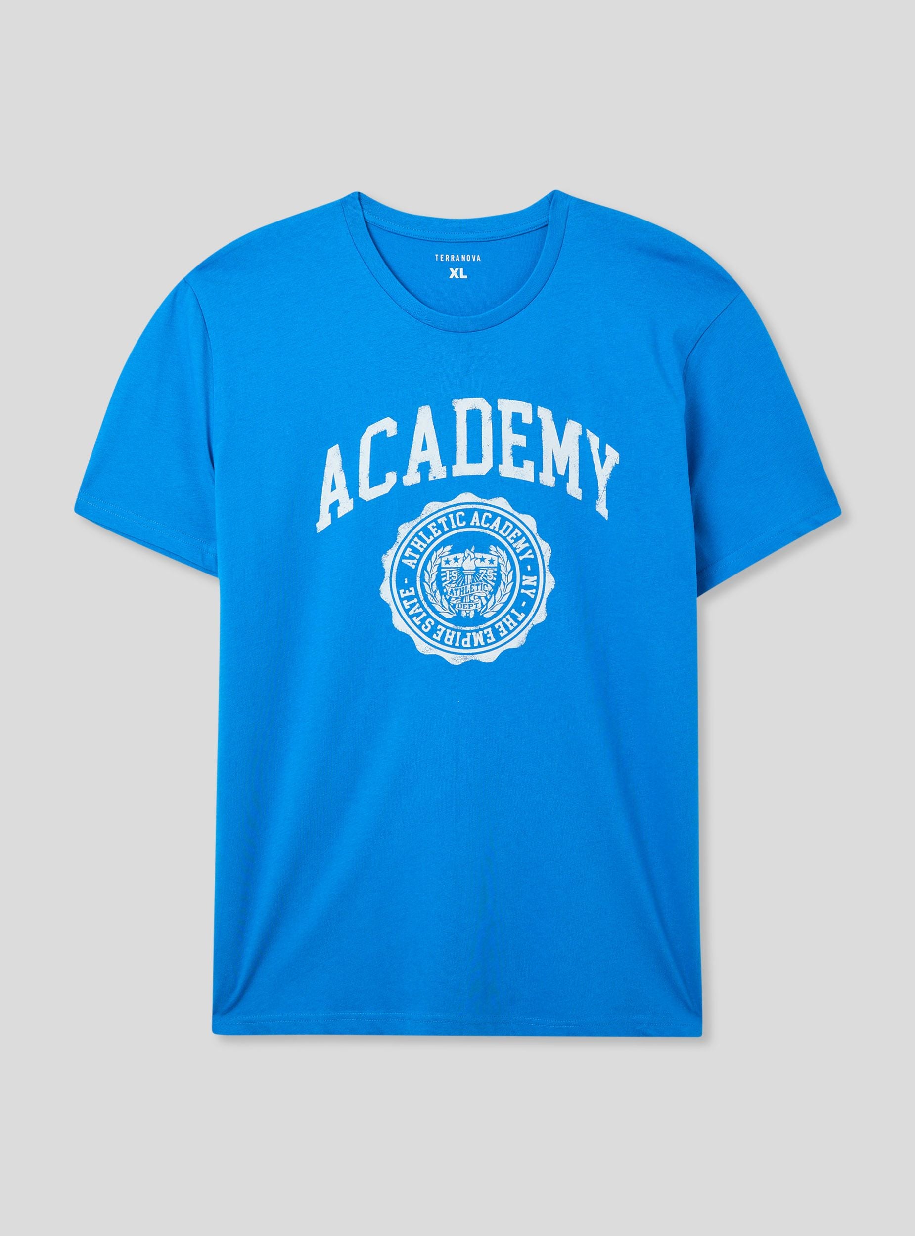 Maglietta da uomo perfetta per uno stile casual e sportivo. Caratterizzata da una stampa in stile college americano che richiama un look giovane e dinamico. Dotata di maniche corte e girocollo, assicura comfort e versatilità, rendendola un capo adatto a ogni occasione.