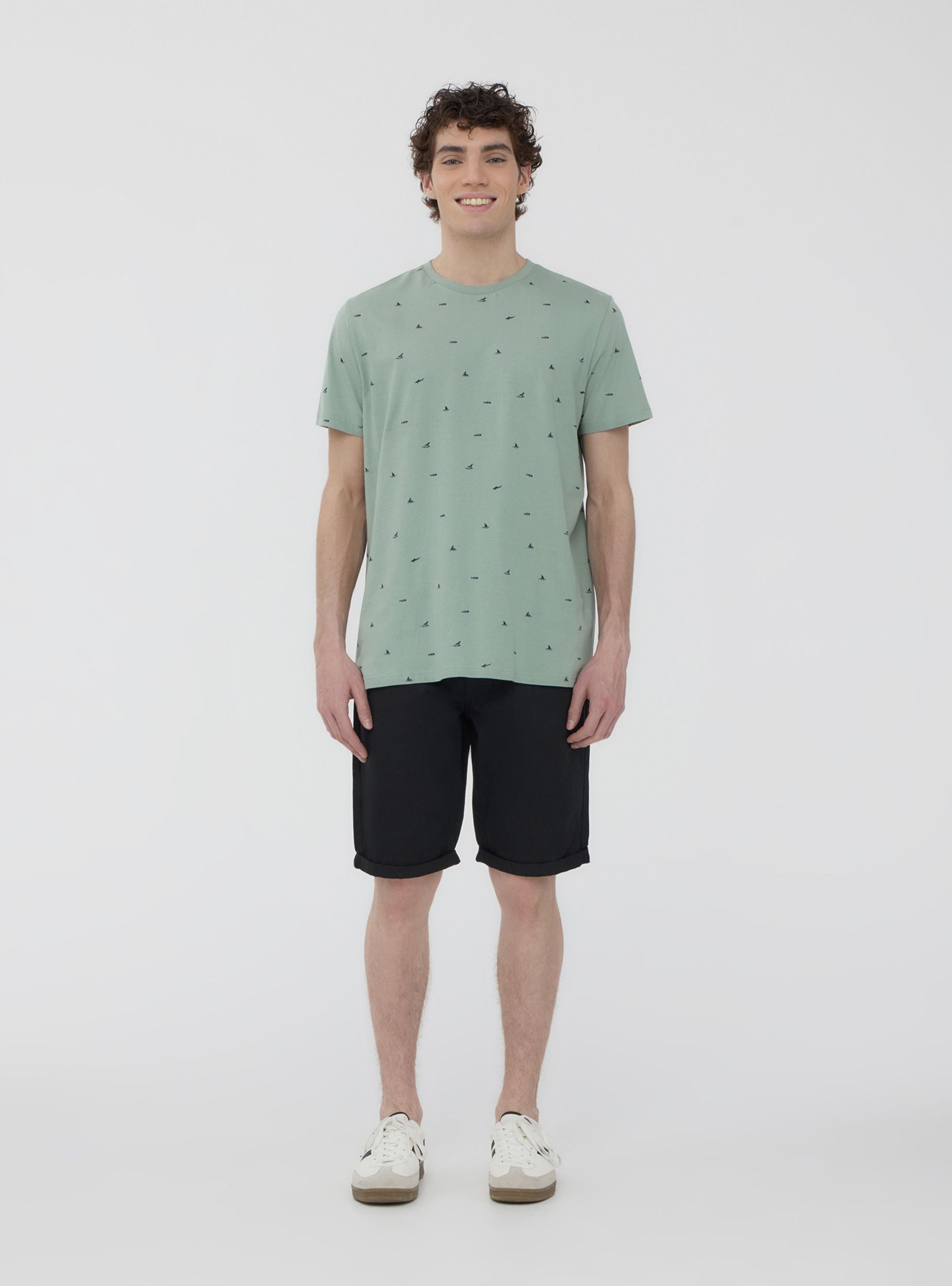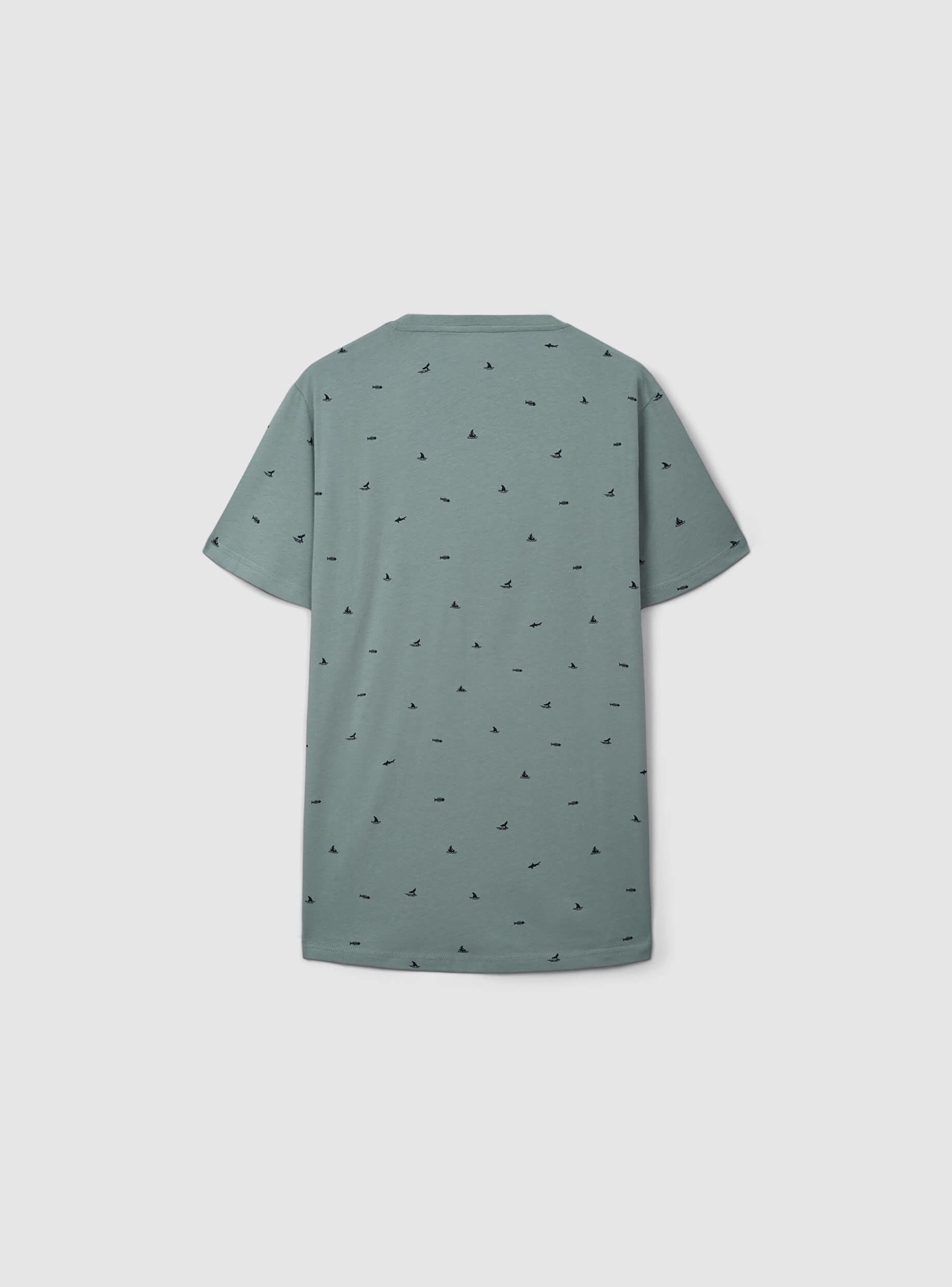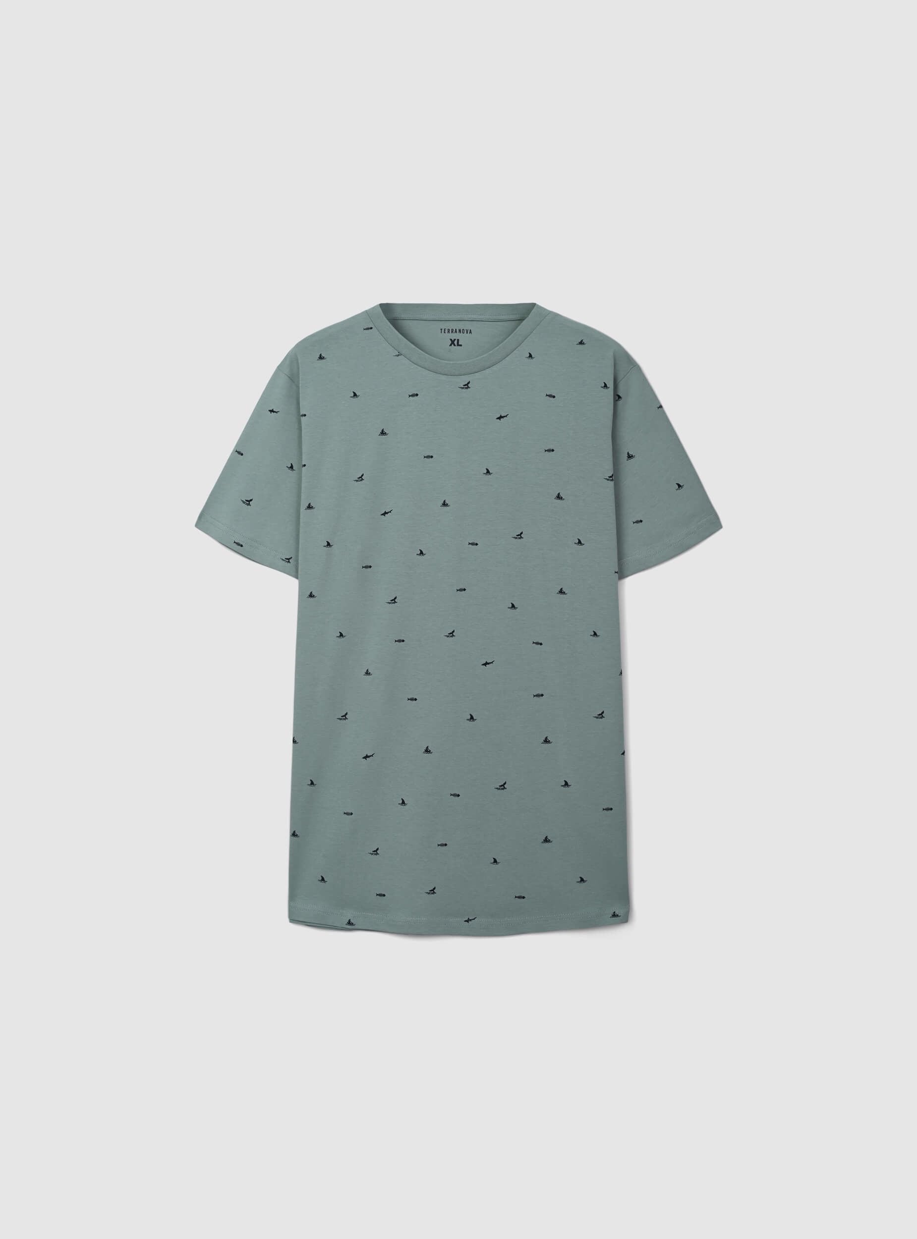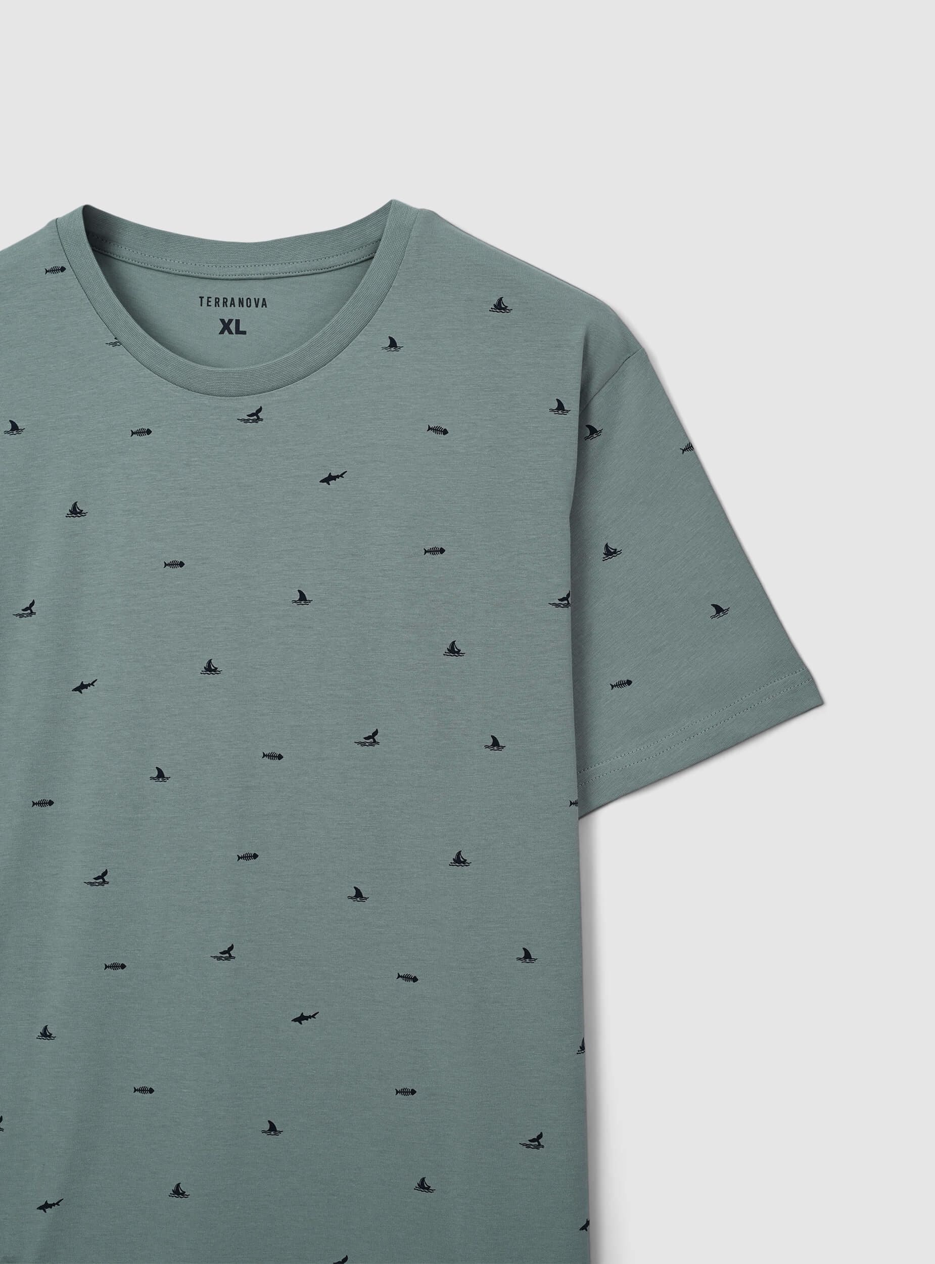 Maglietta da uomo con maniche corte e girocollo, impreziosita da una microfantasia a tema mare che richiama l’atmosfera delle vacanze e il fascino della costa. Piccoli dettagli ispirati al mondo marino, come barche a vela, squali o code di balena, conferiscono un tocco dinamico e sofisticato. Perfetta per chi ama uno stile fresco e rilassato, si abbina con shorts e sandali per un look estivo, oppure con jeans e sneakers per un outfit casual da città. Ideale per passeggiate in riva al mare, serate all’aperto o momenti di relax, aggiunge un tocco originale e disinvolto al guardaroba.