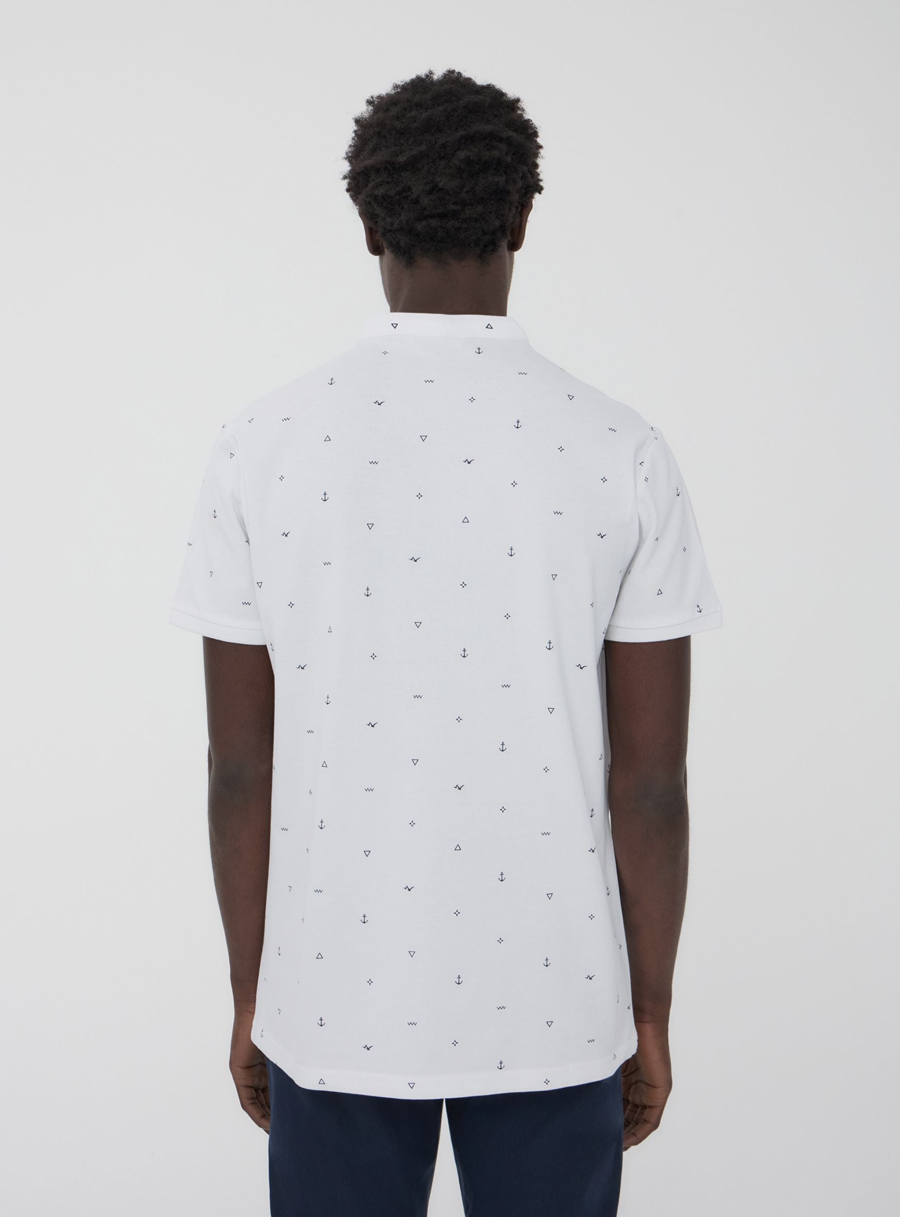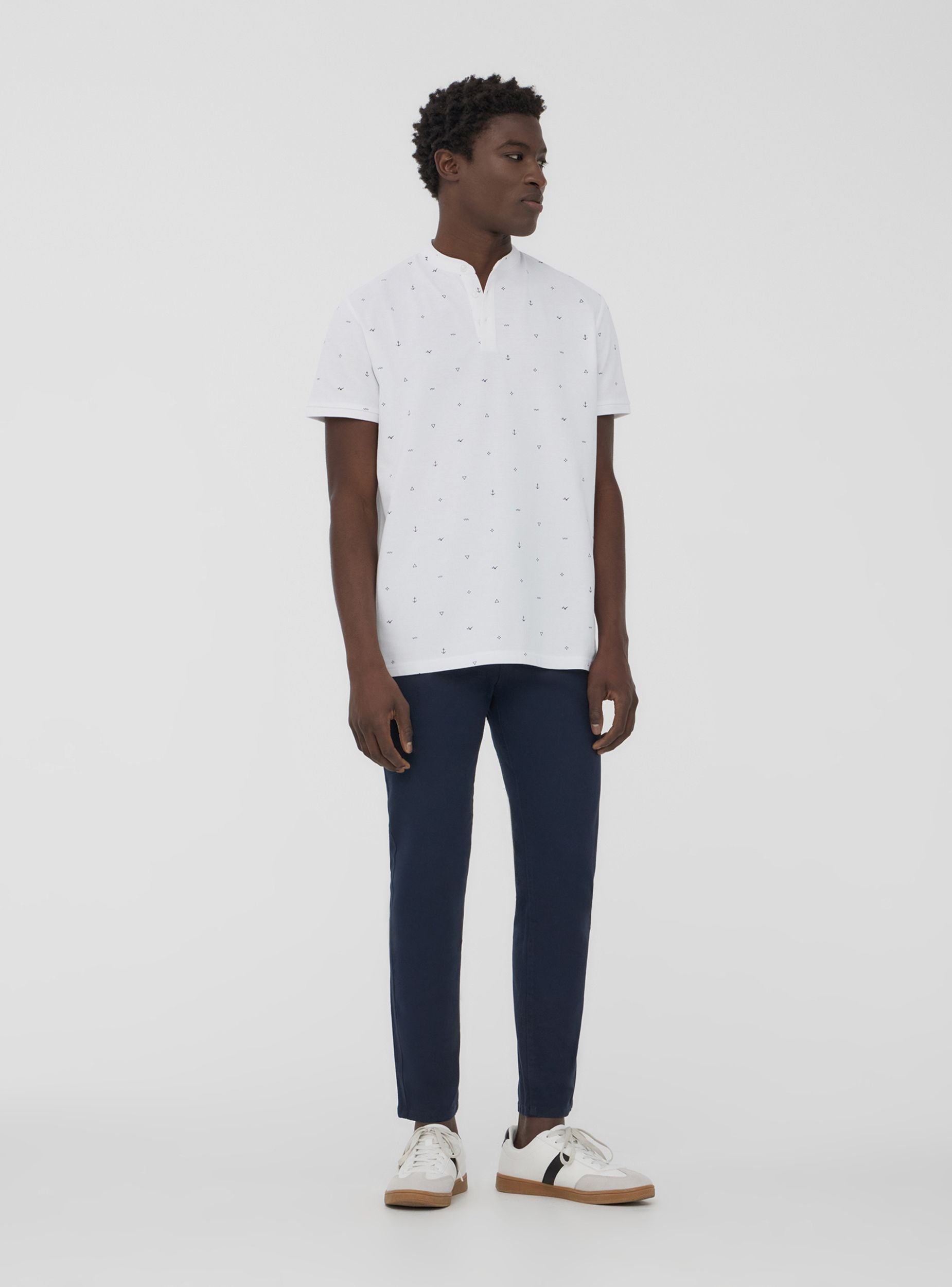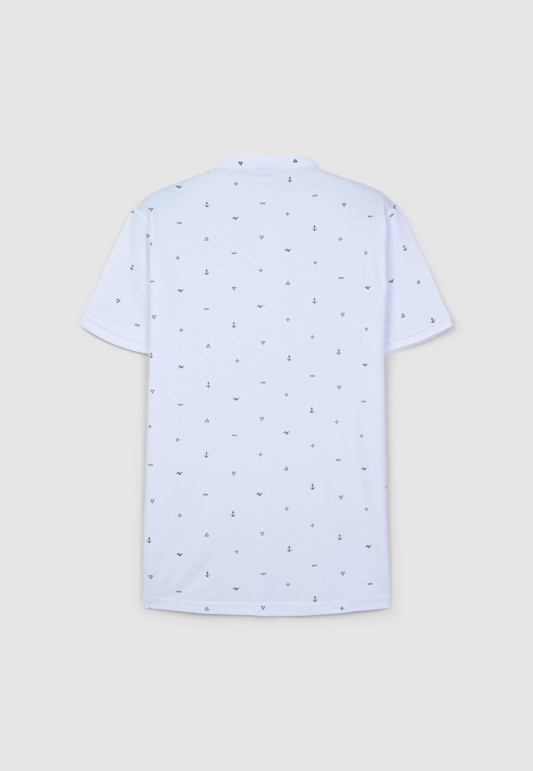 Maglietta da uomo dallo stile raffinato e contemporaneo, con colletto alla coreana e chiusura serafino che aggiungono un tocco di eleganza casual. Le maniche corte assicurano freschezza, mentre il tessuto piquet dona un aspetto strutturato. La microfantasia discreta la rende versatile, perfetta da abbinare a jeans o pantaloni chino per look da giorno o serate informali.