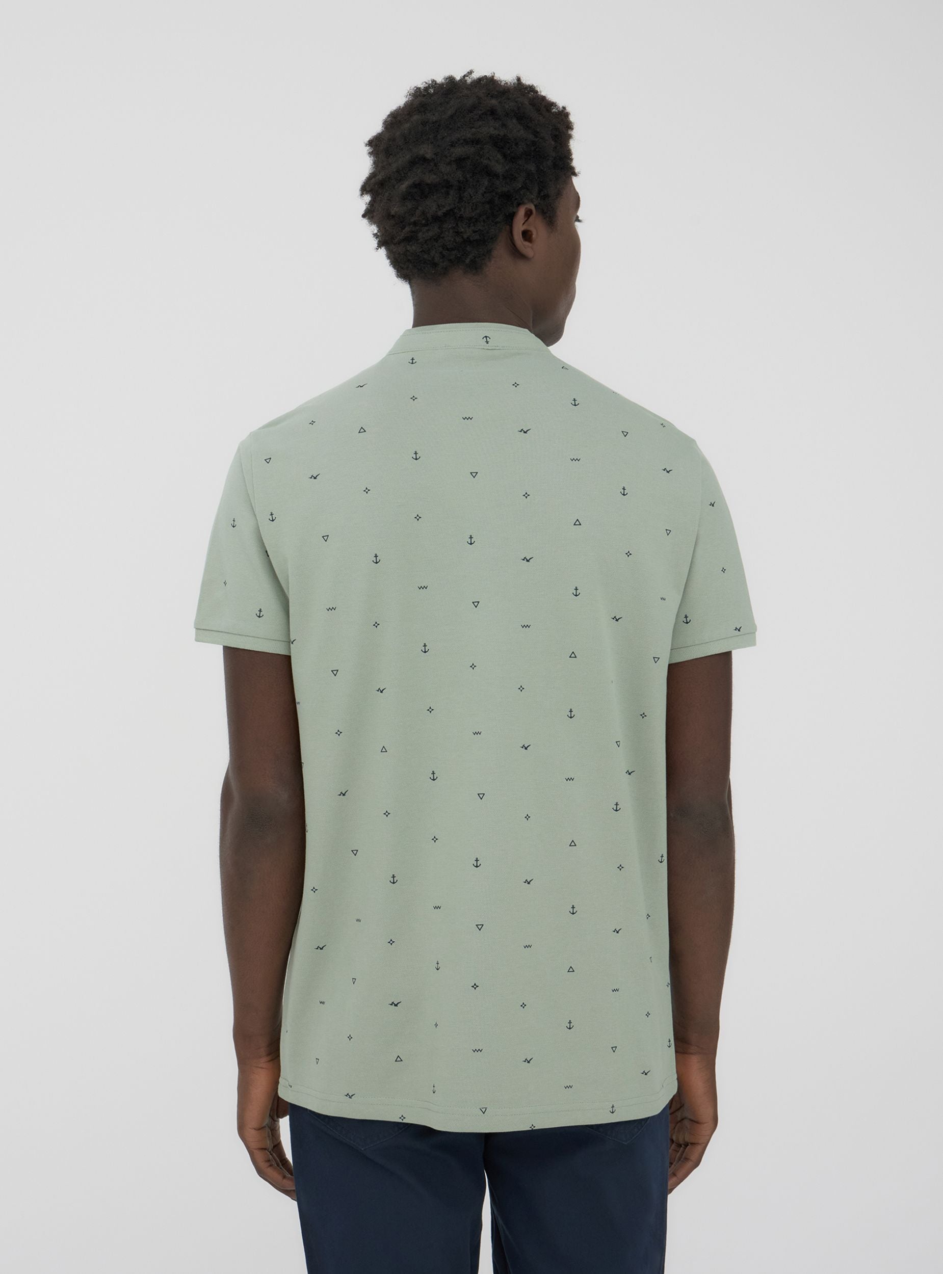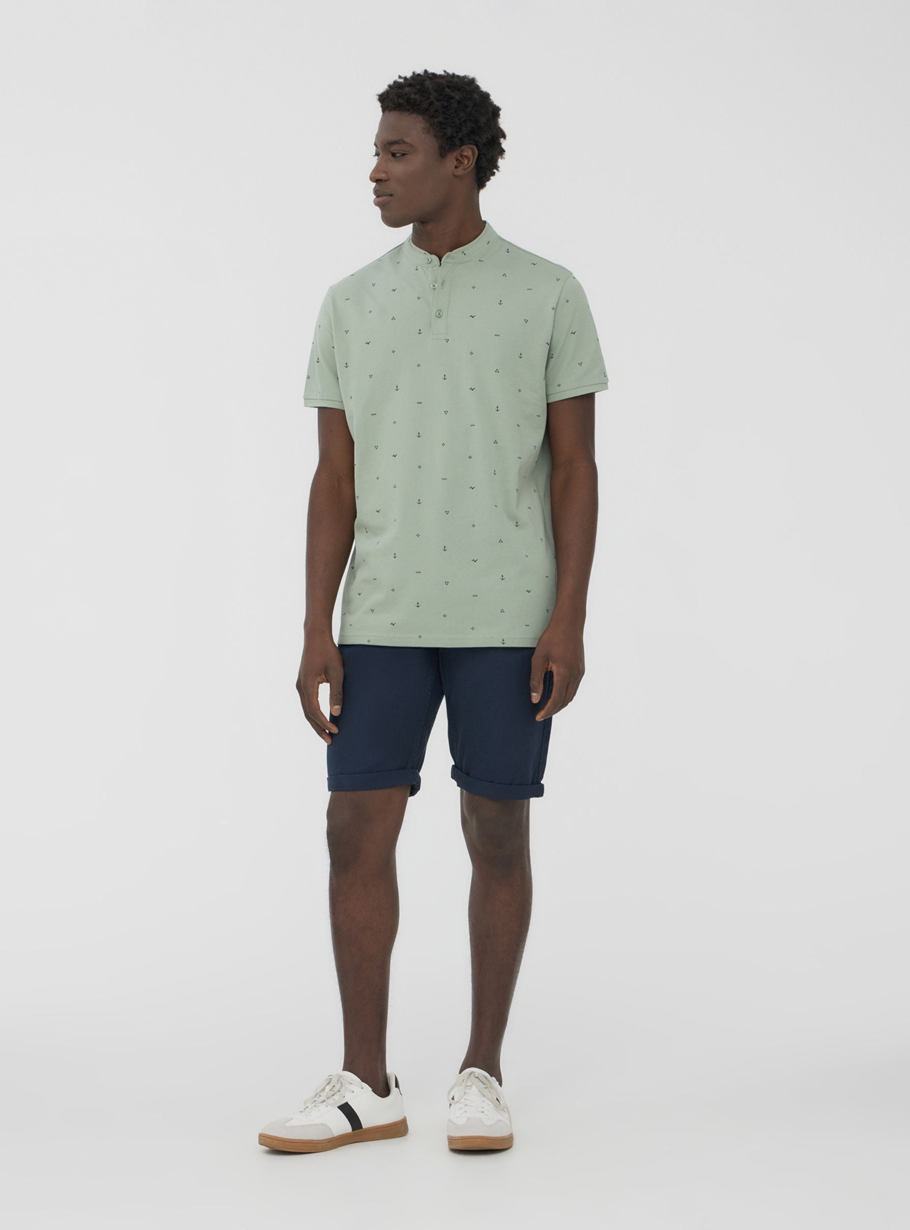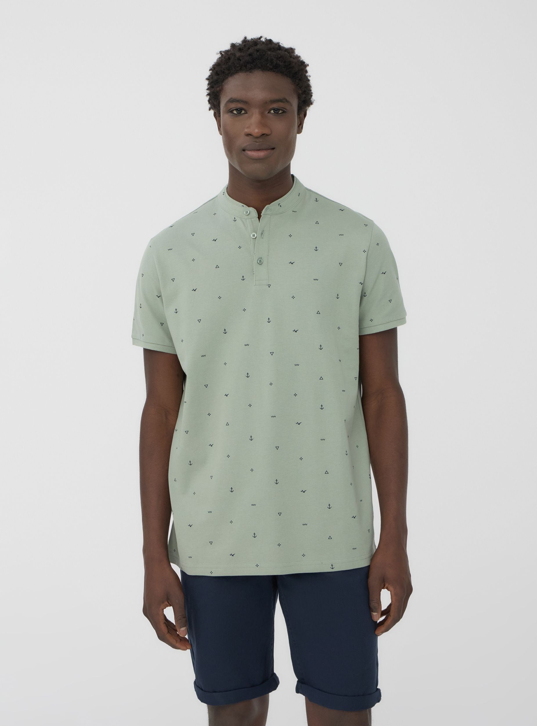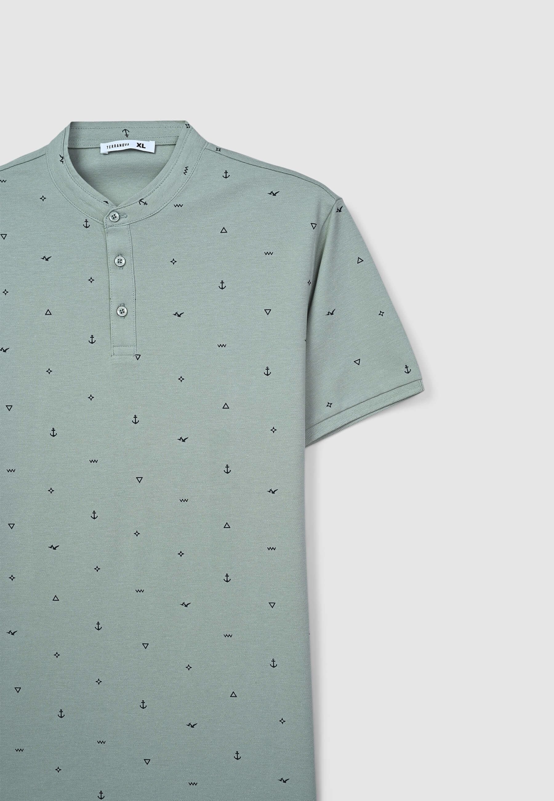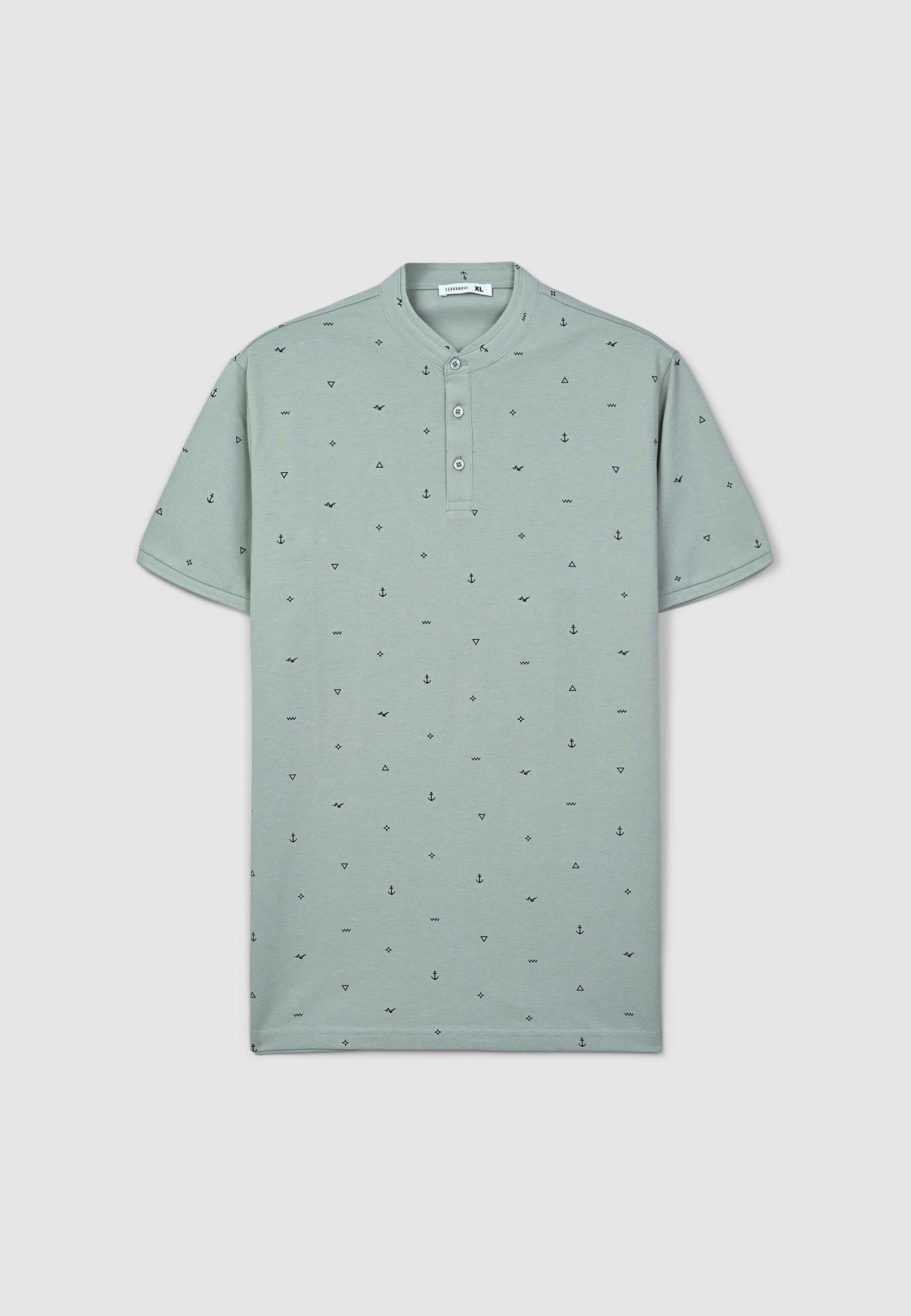 Maglietta da uomo dallo stile raffinato e contemporaneo, con colletto alla coreana e chiusura serafino che aggiungono un tocco di eleganza casual. Le maniche corte assicurano freschezza, mentre il tessuto piquet dona un aspetto strutturato. La microfantasia discreta la rende versatile, perfetta da abbinare a jeans o pantaloni chino per look da giorno o serate informali.Dettagli