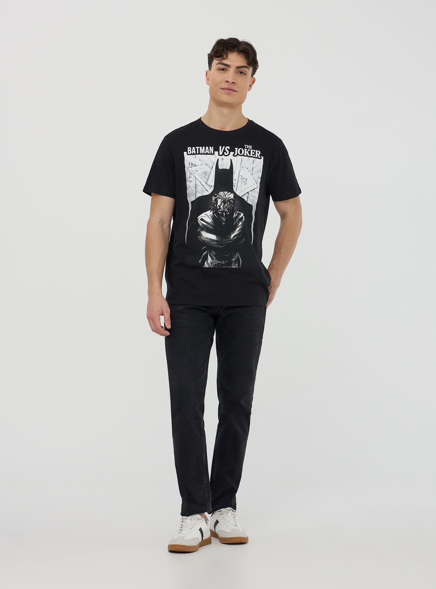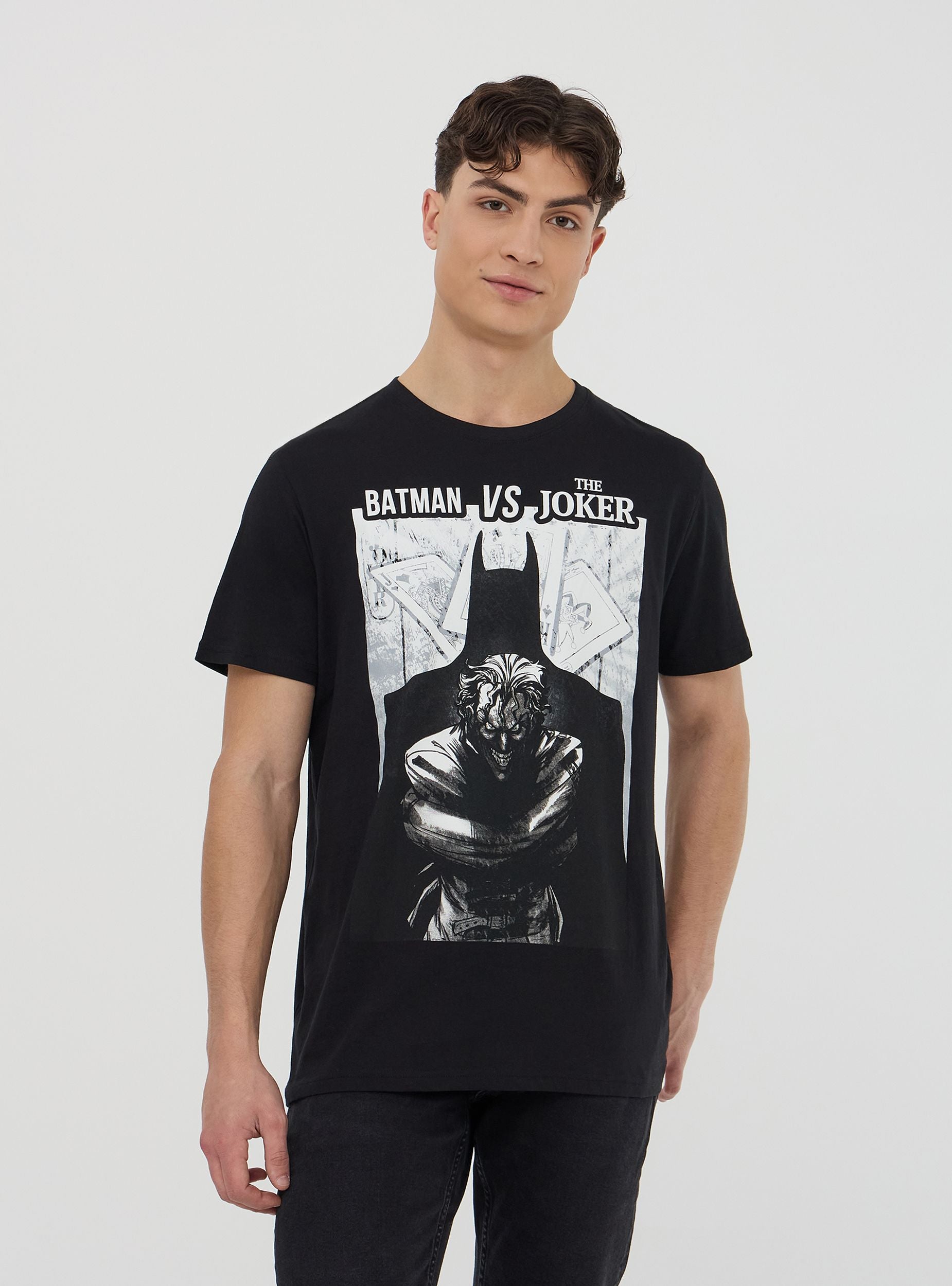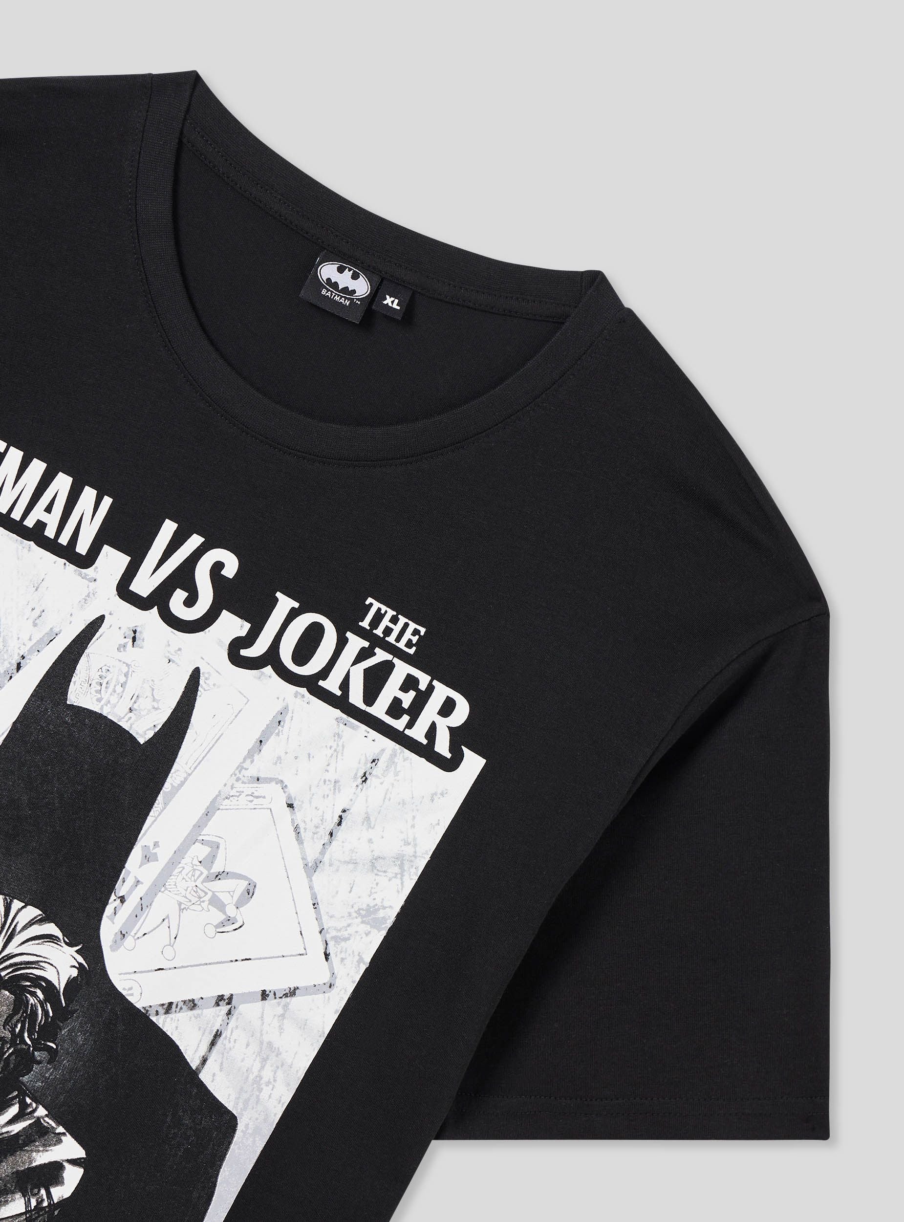 Maglietta da uomo perfetta per il tempo libero o un look casual originale. Modello con maniche corte e girocollo, presenta una stampa dedicata a Batman® e The Joker, aggiungendo un tocco unico al tuo outfit. Un capo dal design accattivante per esprimere la tua passione per i supereroi.Dettagli