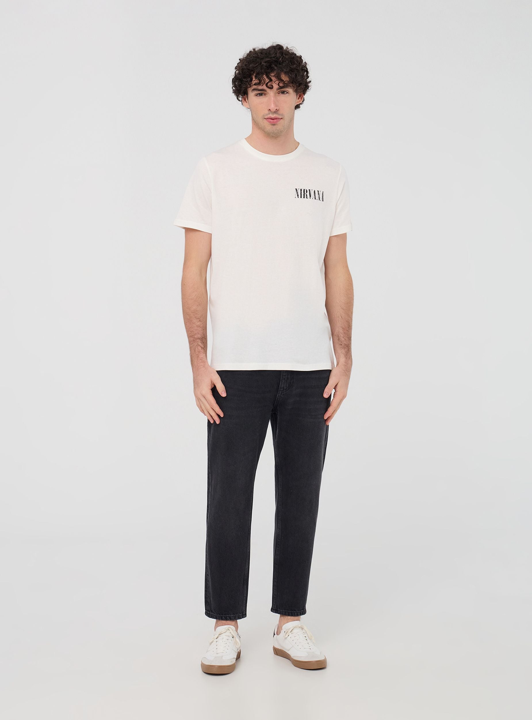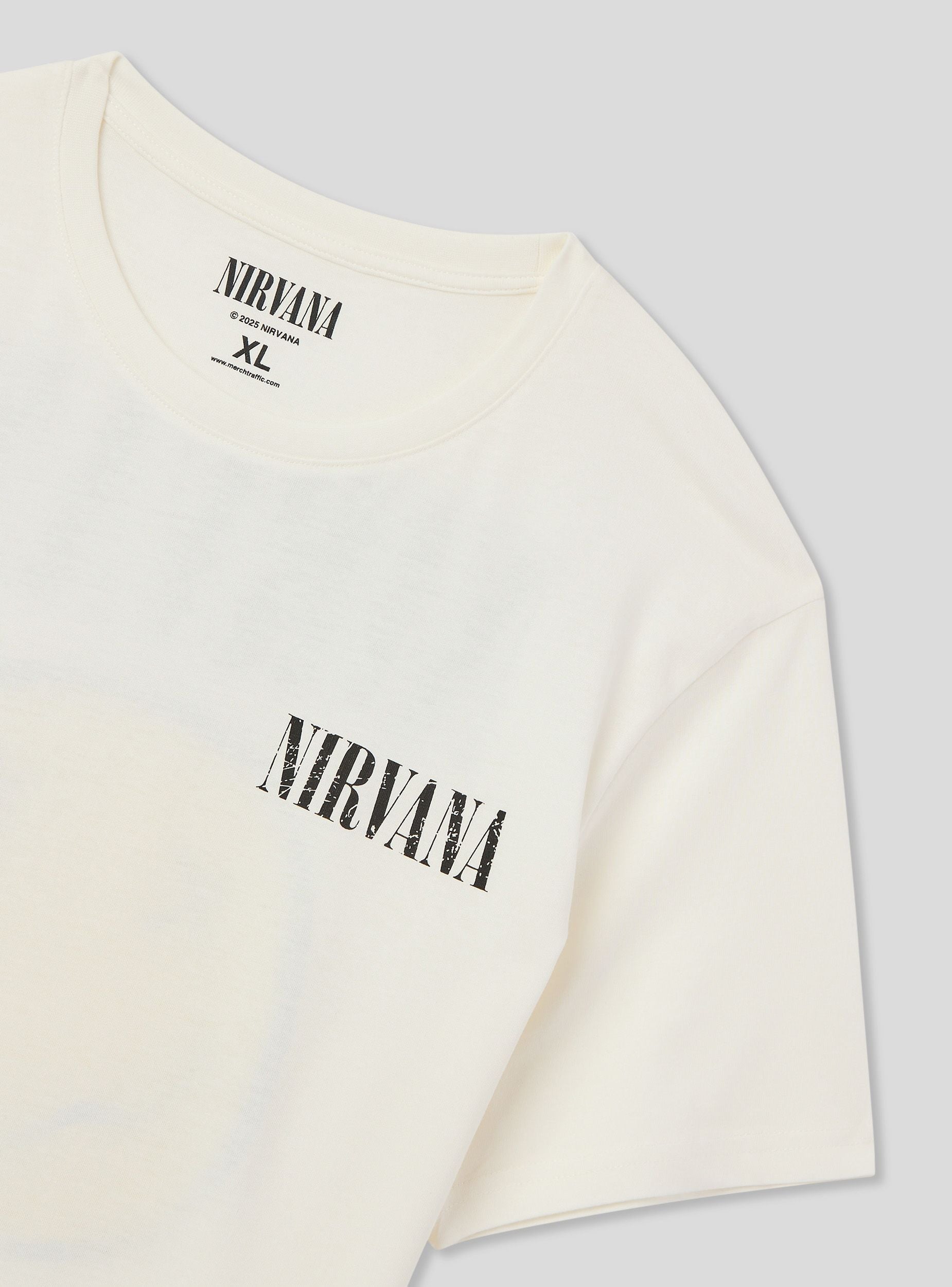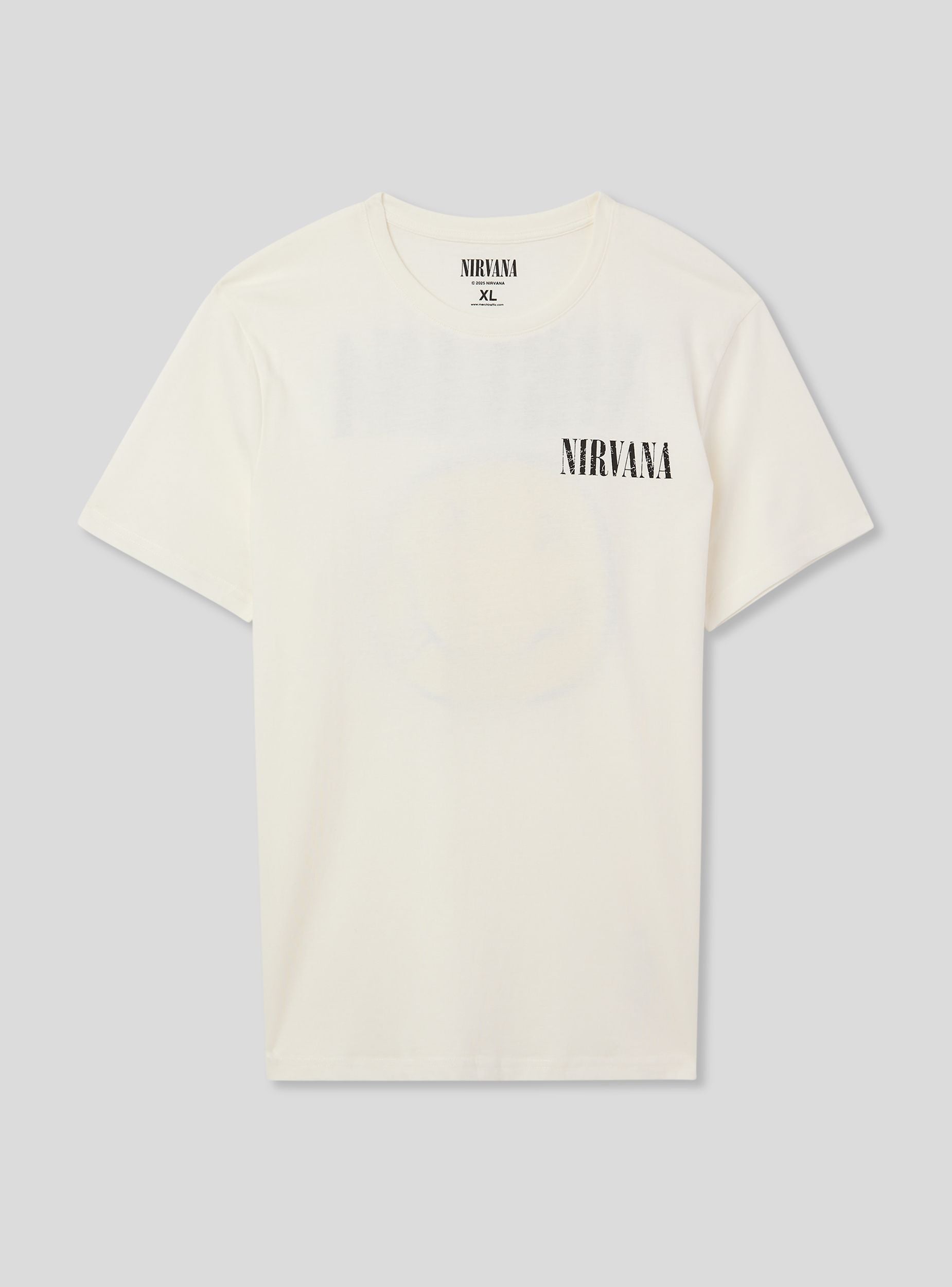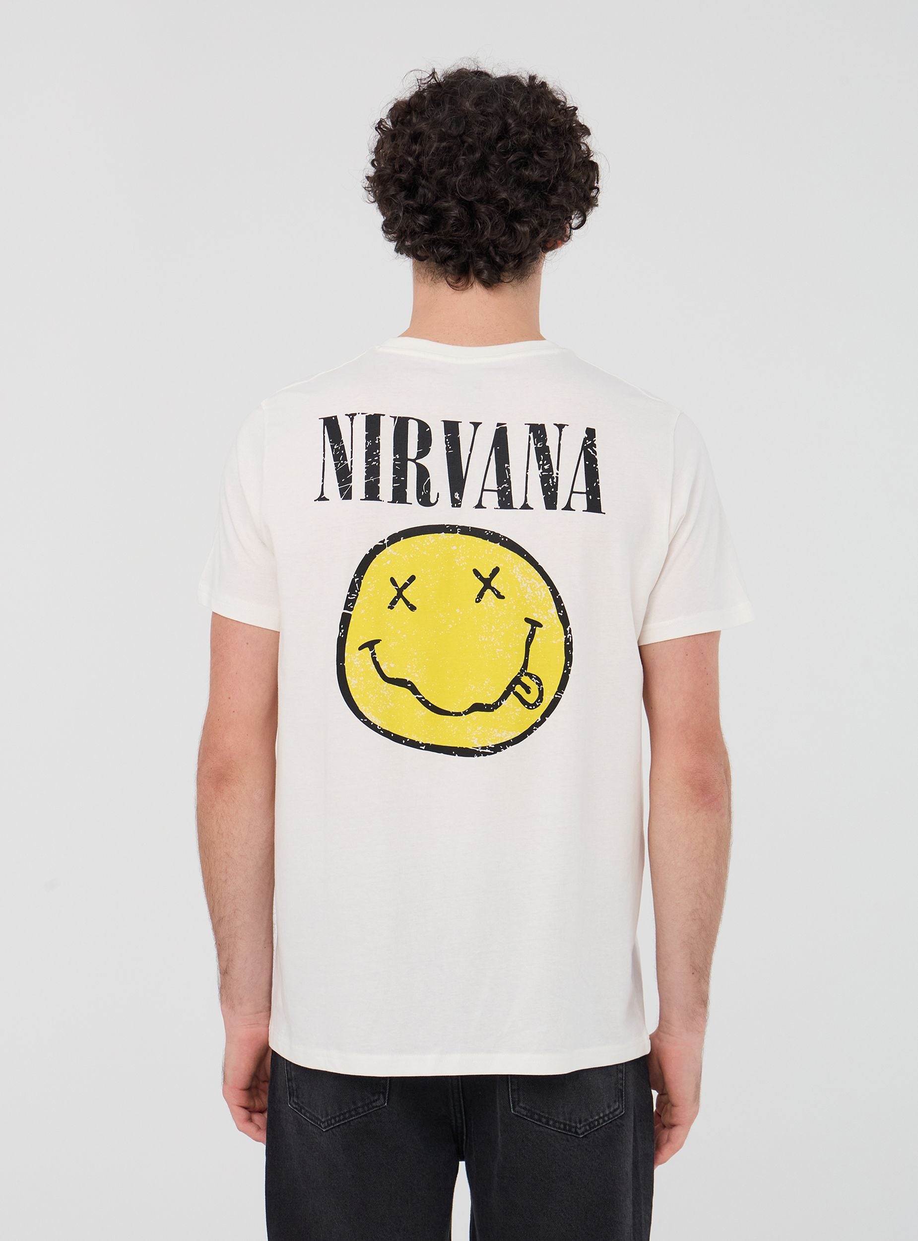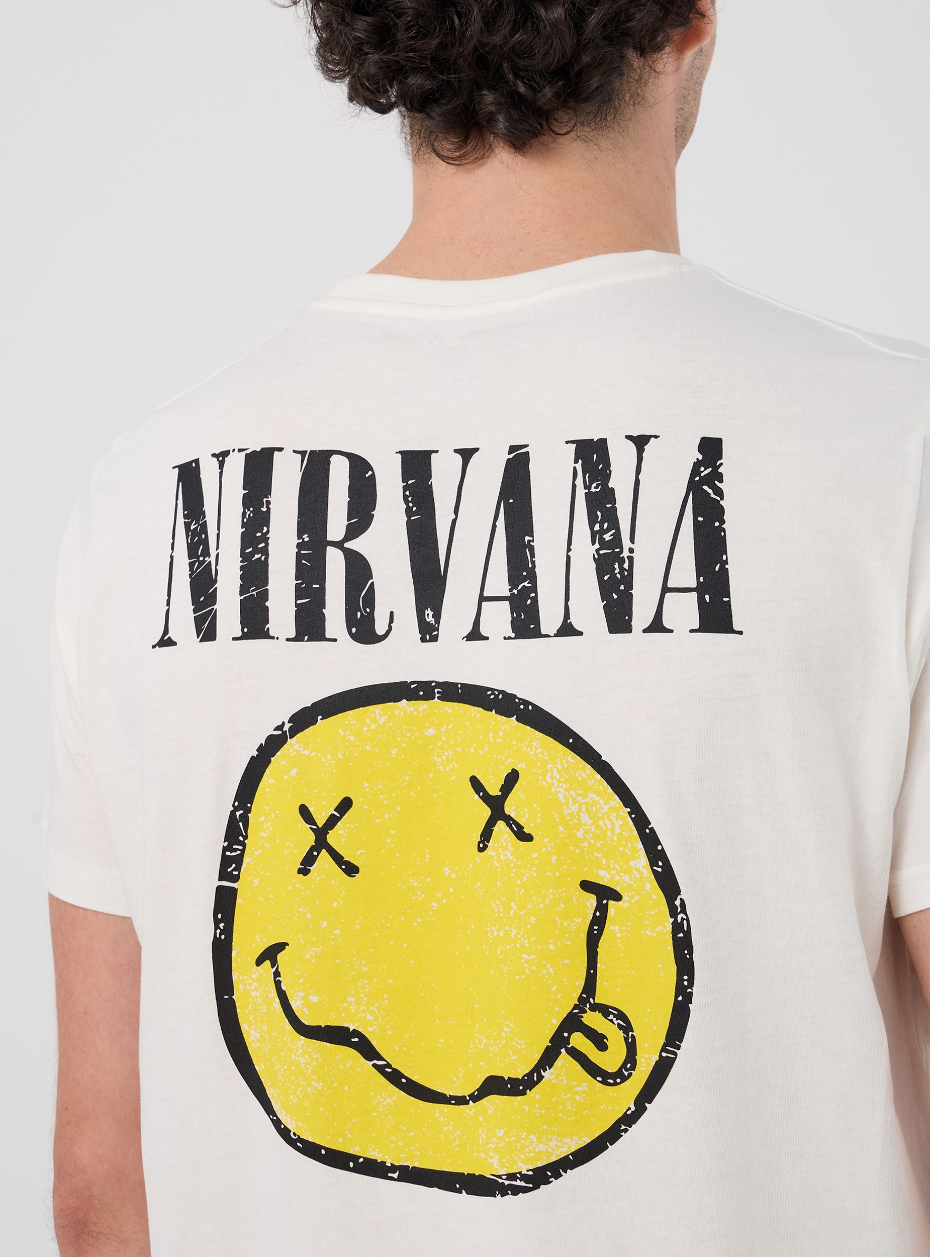Maglietta da uomo ideale per un look casual e informale, perfetta per esprimere la tua passione per la musica. Questo modello presenta maniche corte e girocollo, con la scritta Nirvana® sul davanti e una grande stampa sul retro che celebra lo stile iconico della band. Un capo unico per outfit dal carattere deciso.