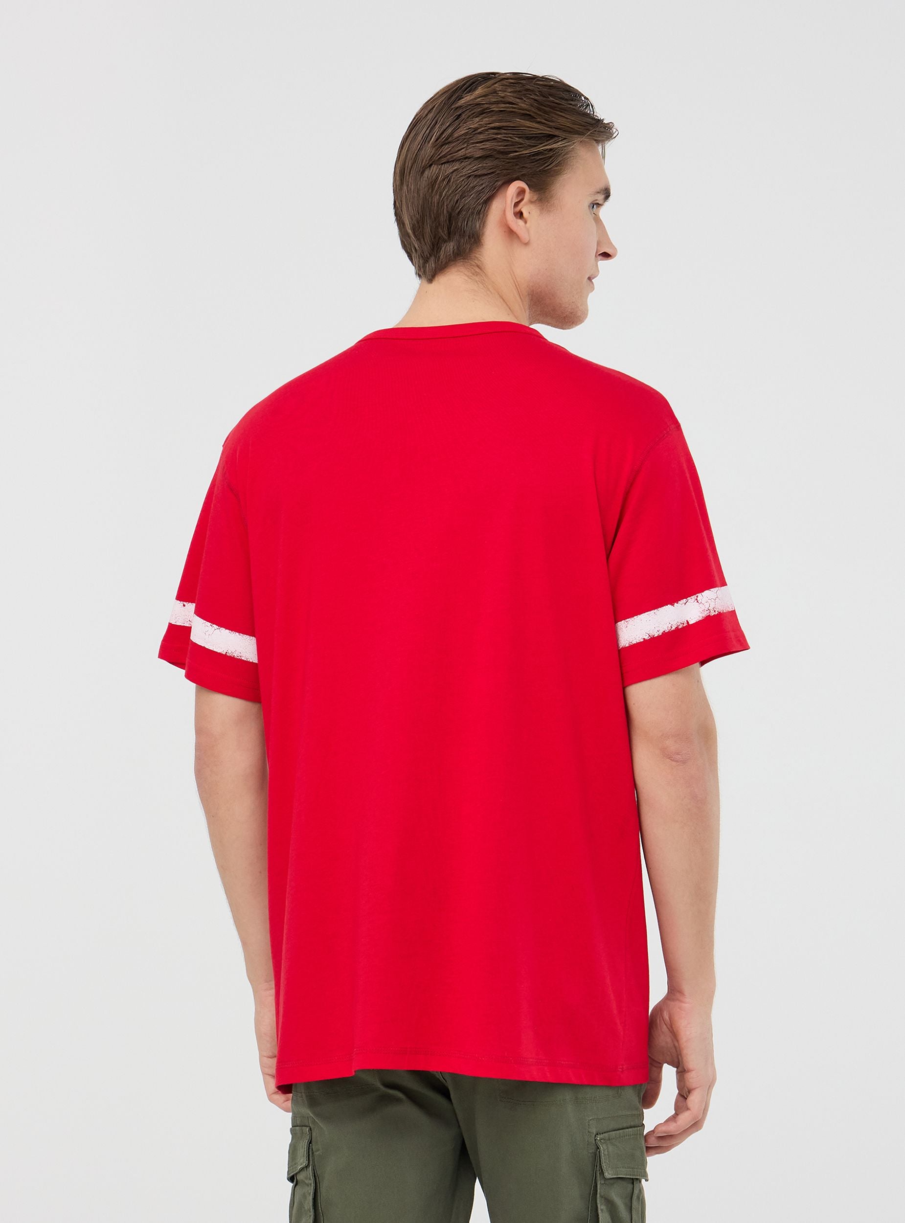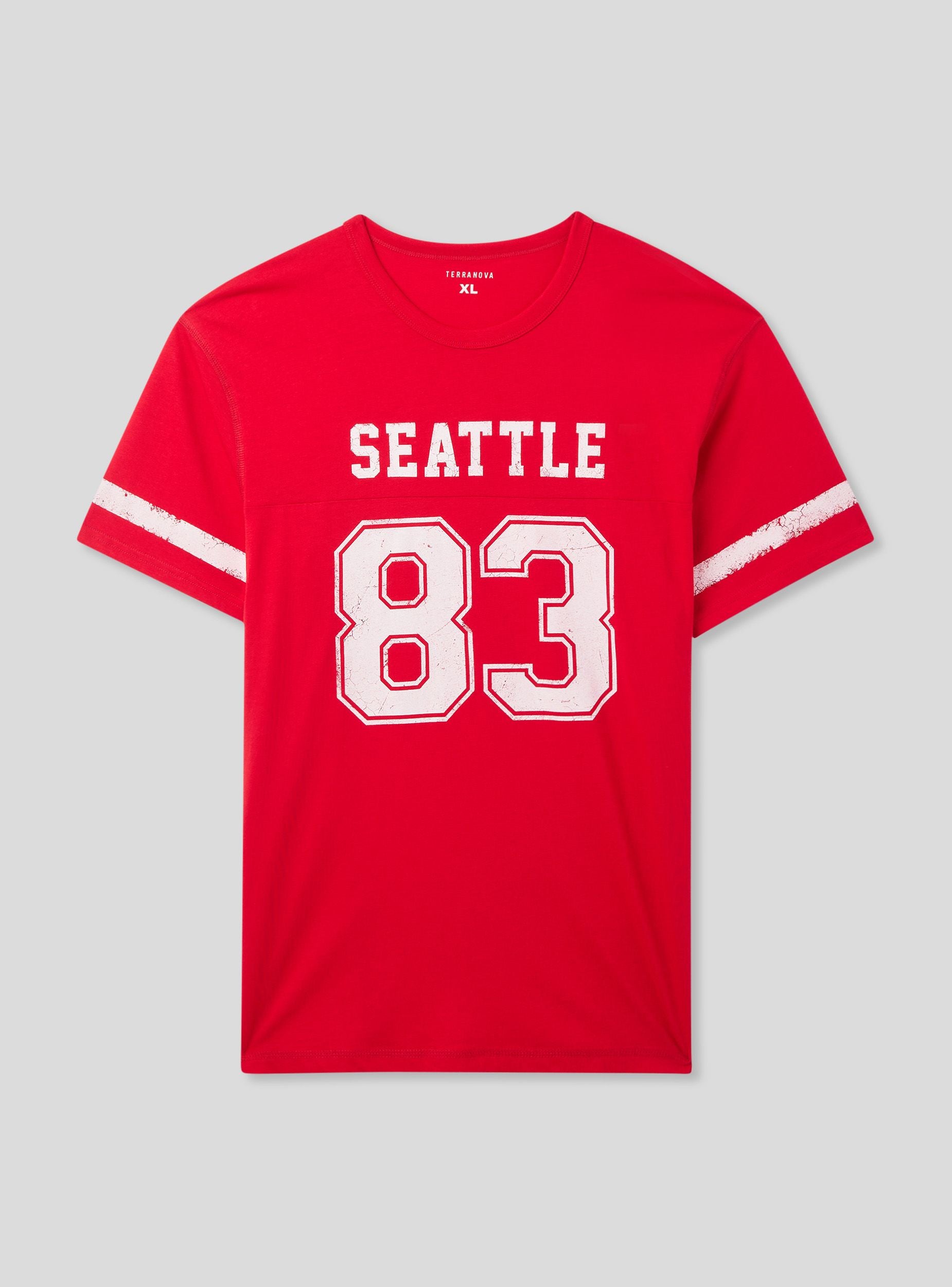 T-shirt stampa numero, scritta e bande