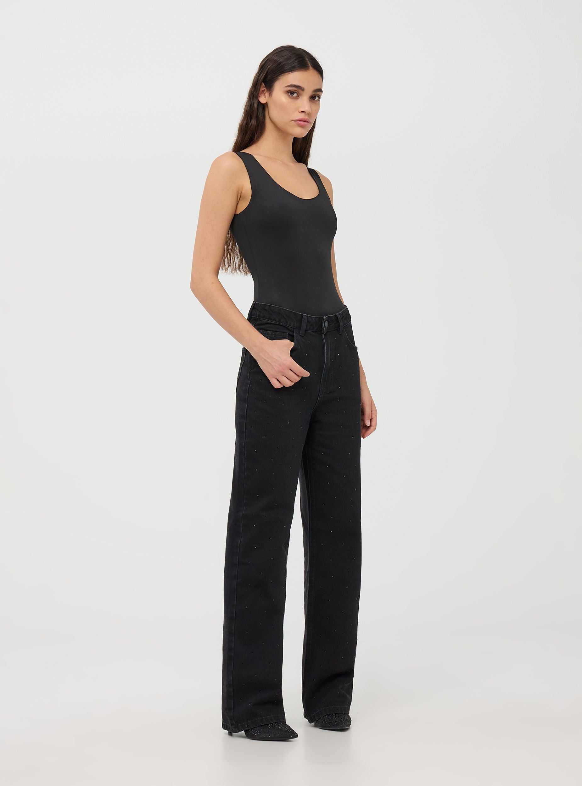 Body da donna elasticizzato a tinta unita, garantisce comfort e una vestibilità aderente. Presenta un design essenziale con spalline larghe e uno scollo rotondo. La chiusura con bottoni a pressione sul cavallo assicura praticità. Capo versatile e indispensabile nel guardaroba.Dettagli