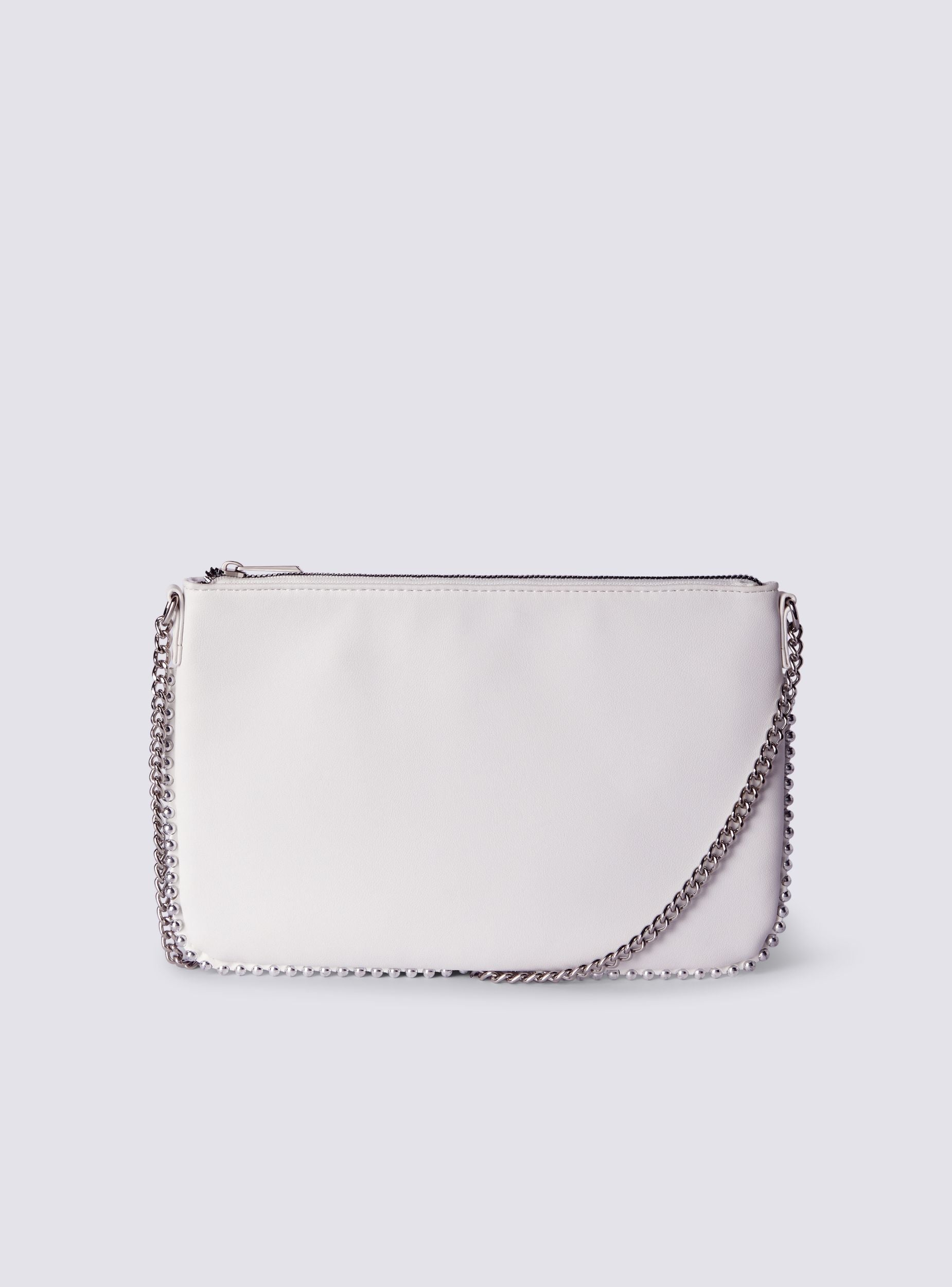 Borsa da donna dal design essenziale e moderno, perfetta per completare ogni look. La tracolla aggiunge praticità e stile, mentre le borchiette decorative lungo i bordi conferiscono un tocco ricercato. Dotata di una chiusura con zip per mantenere il contenuto al sicuro, include anche una tasca interna con zip per organizzare al meglio gli oggetti personali. Il modello presenta una finitura tinta unita, ideale per abbinarsi facilmente a qualsiasi outfit. Dimensioni: Altezza 17,5cm, Lunghezza 27,5cm.
